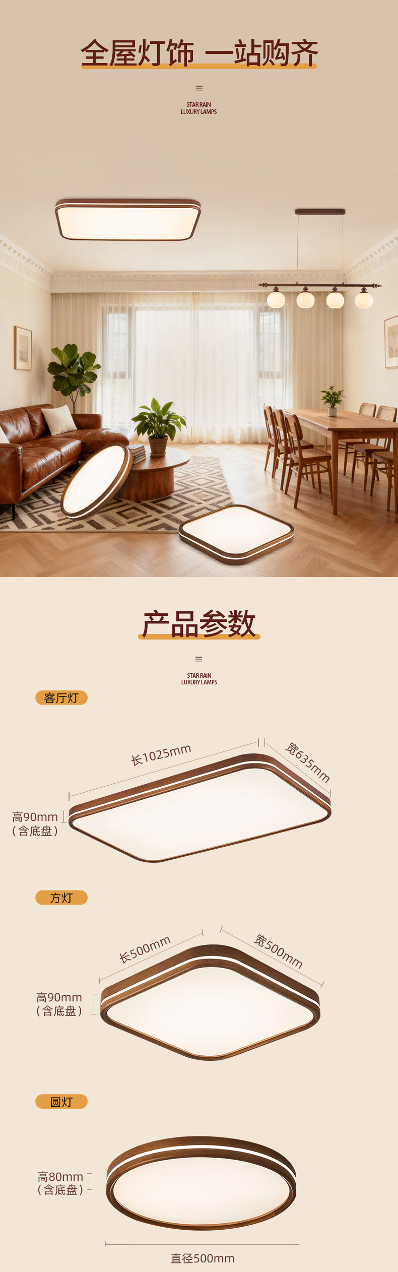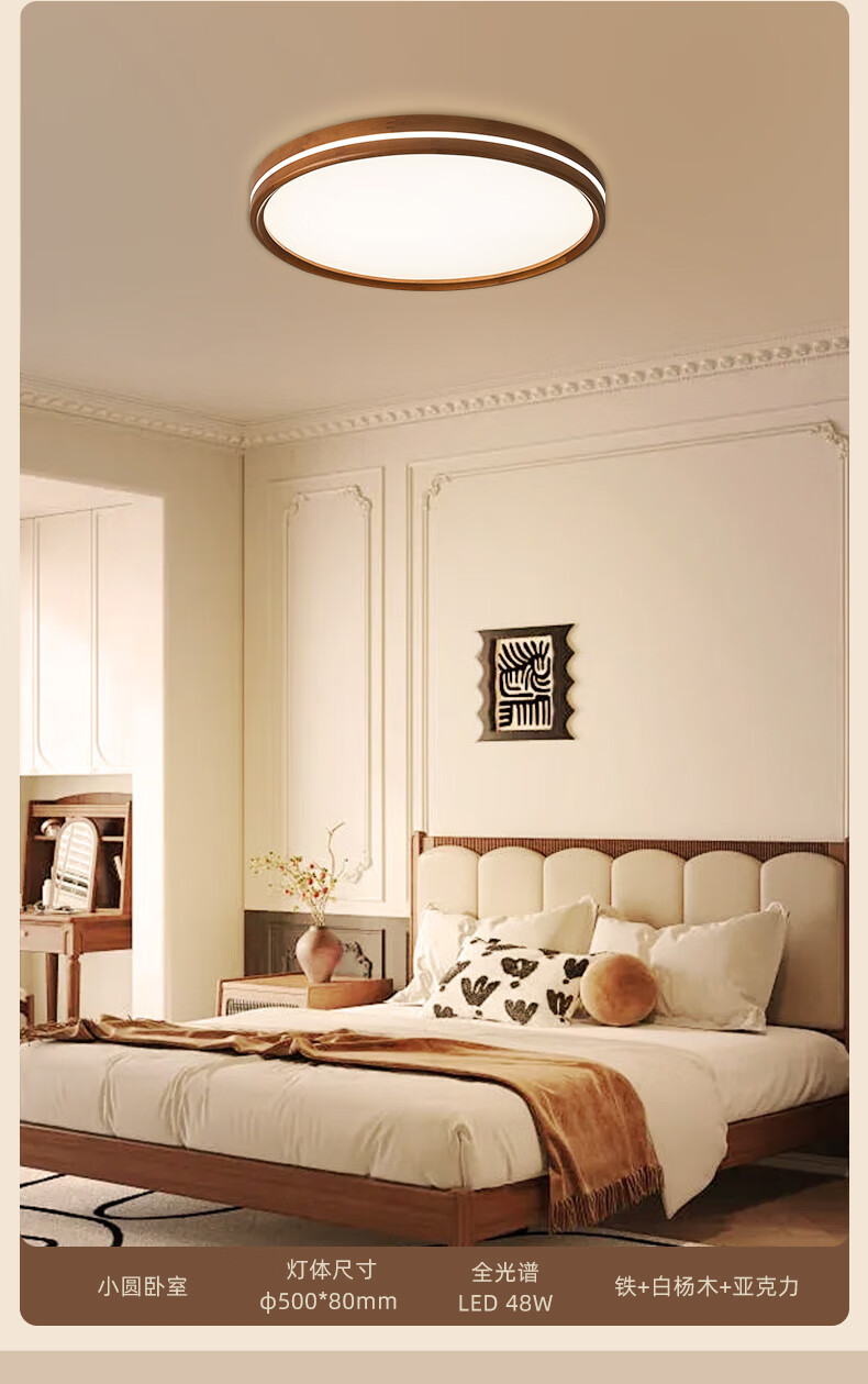 雷士(NVC)中古风全光谱客厅吸顶灯简约卧室灯led护眼高亮新款书房灯灯具 【三段调光】侧透光95高显48W圆灯