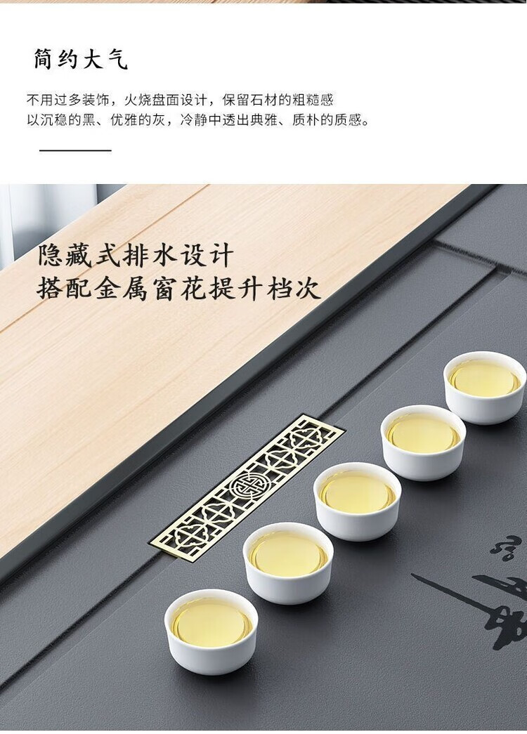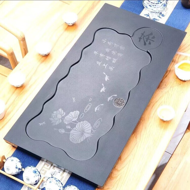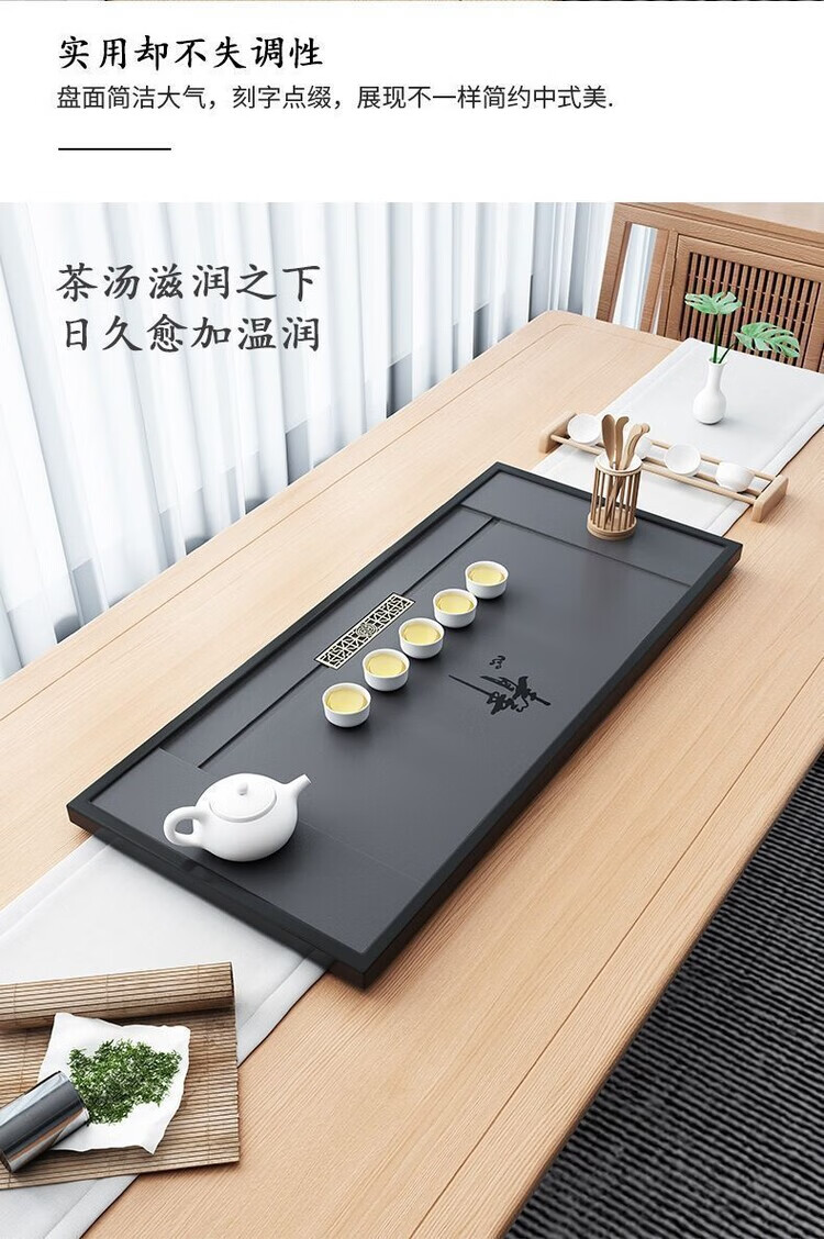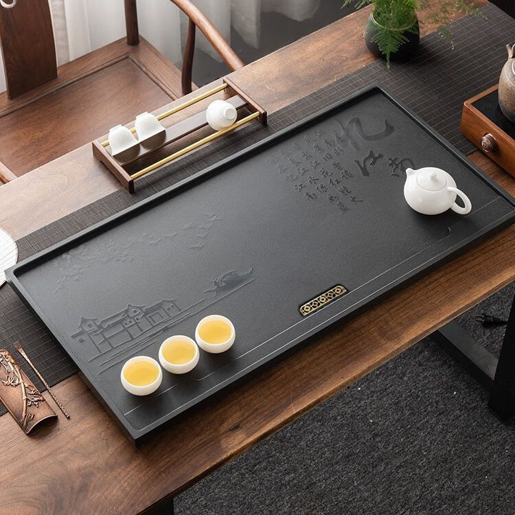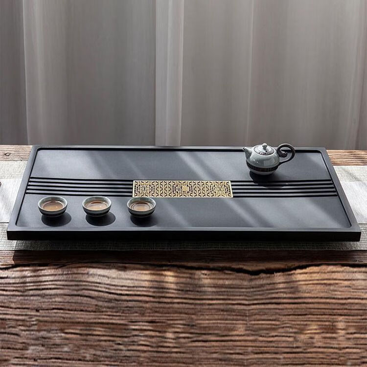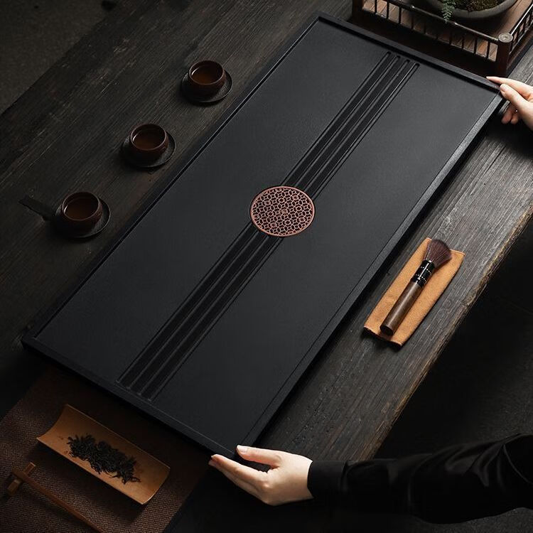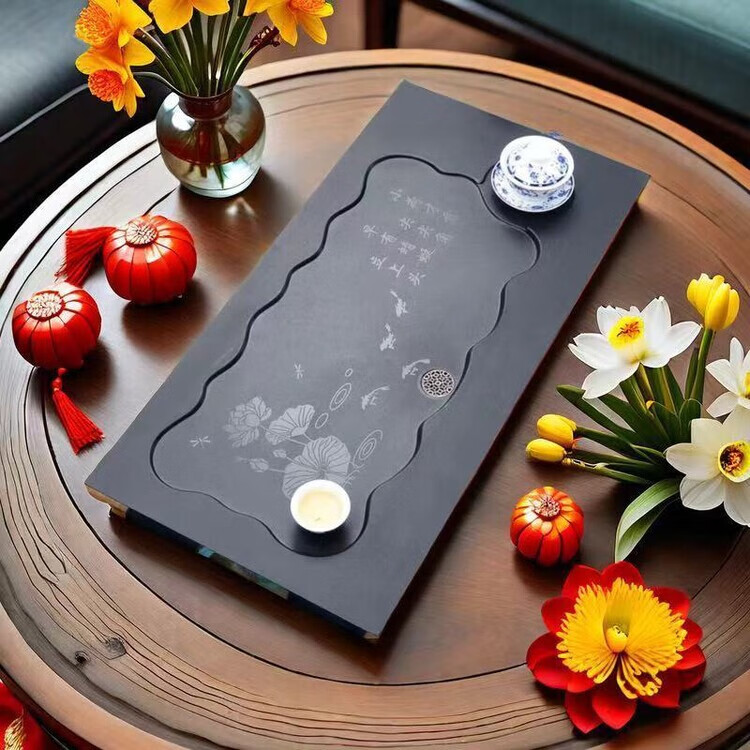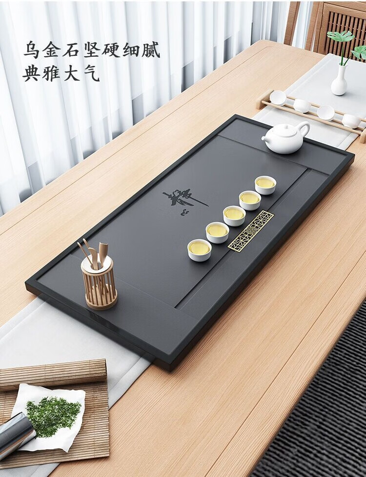 简漾乌金石茶盘客厅办公室茶盘天然石头功夫茶台茶海茶盘高档茶具套装 方窗花40*37cm