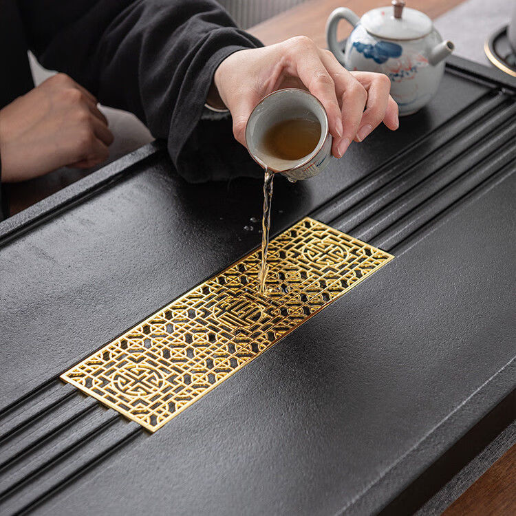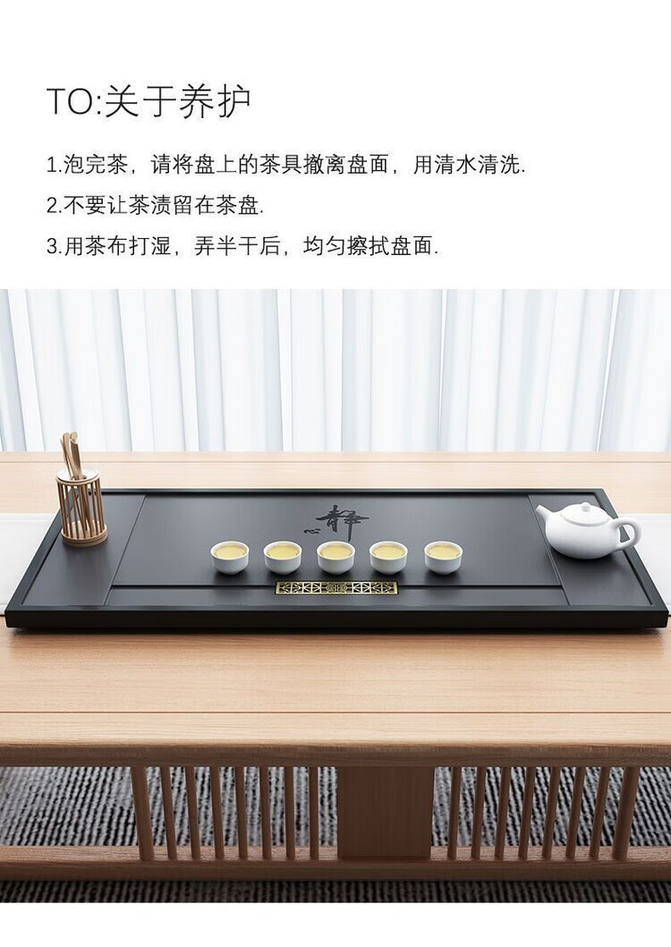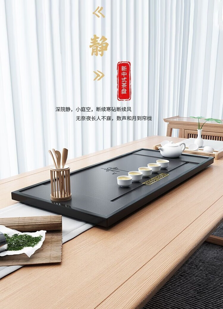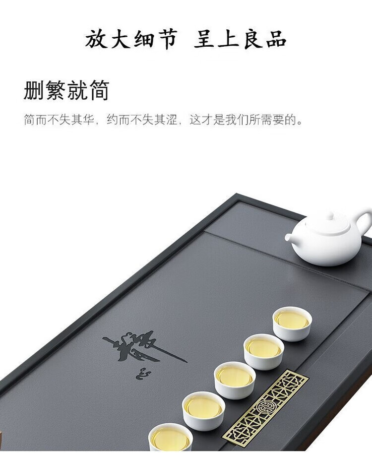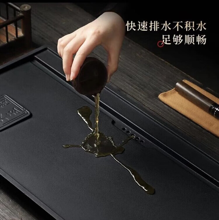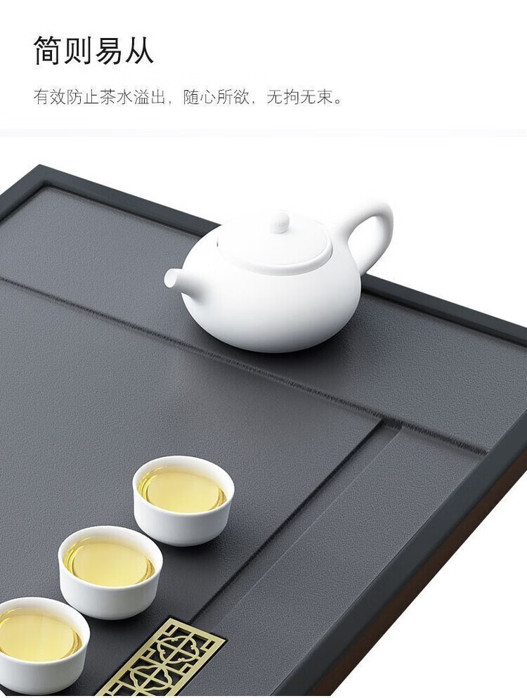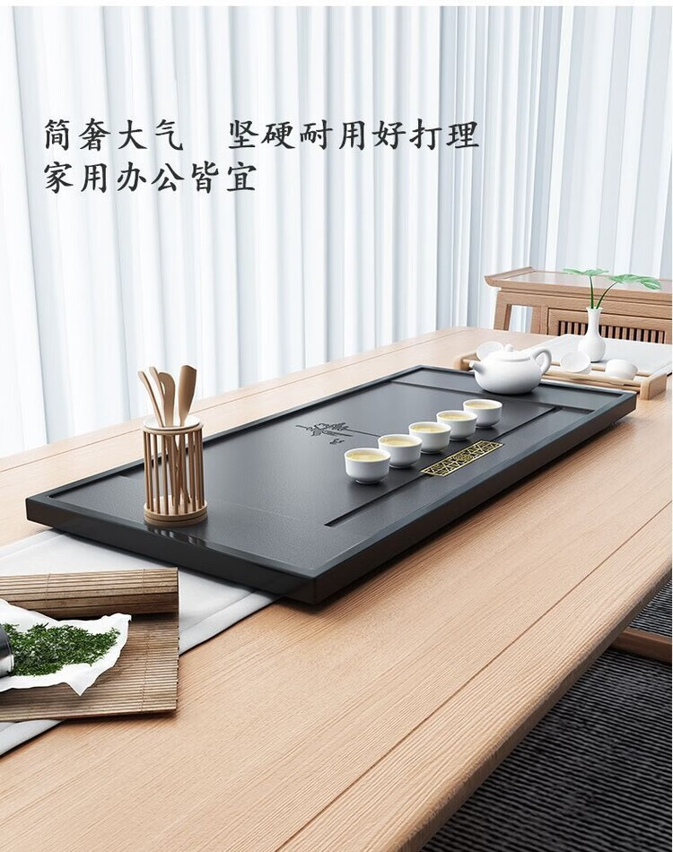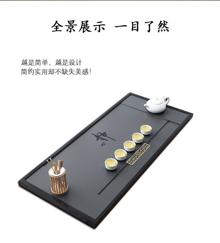 简漾乌金石茶盘客厅办公室茶盘天然石头功夫茶台茶海茶盘高档茶具套装 方窗花40*37cm