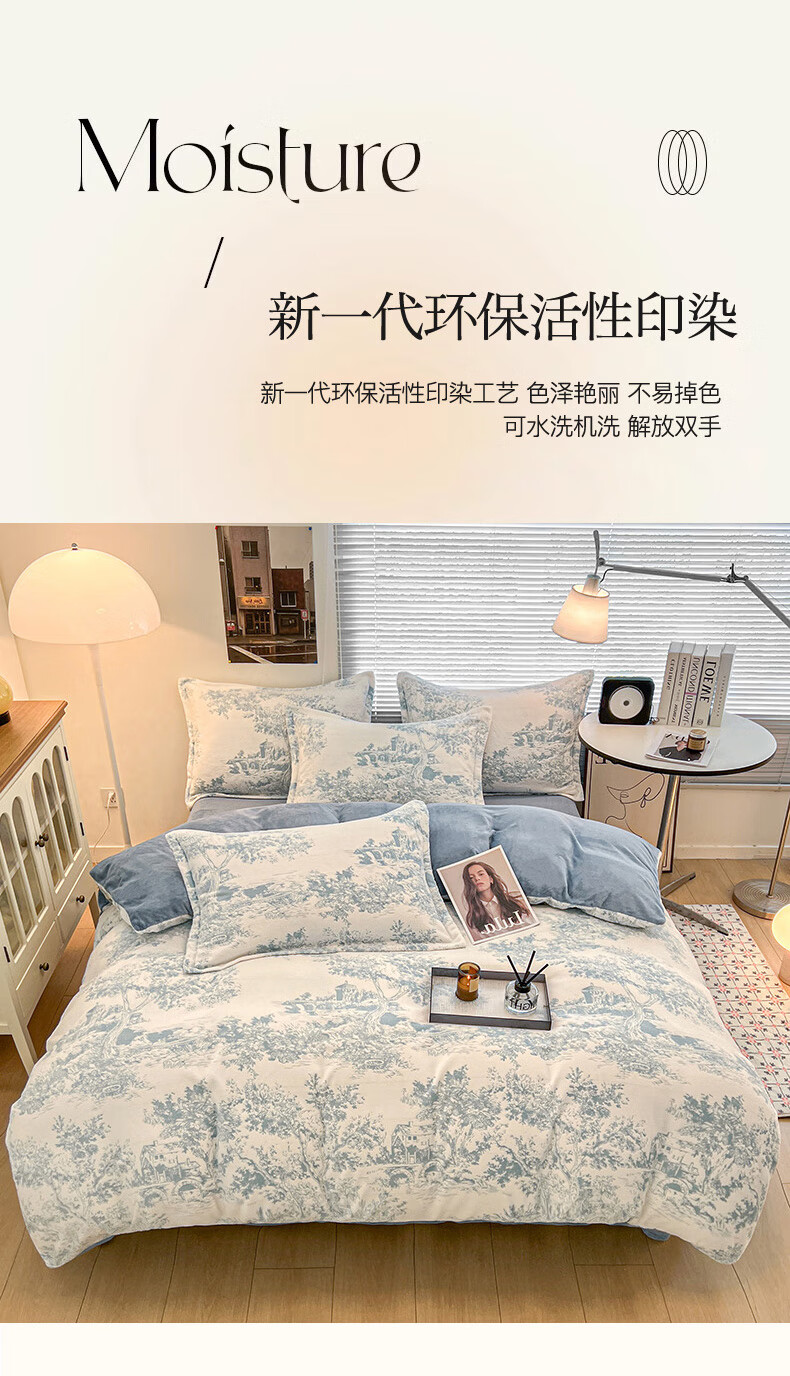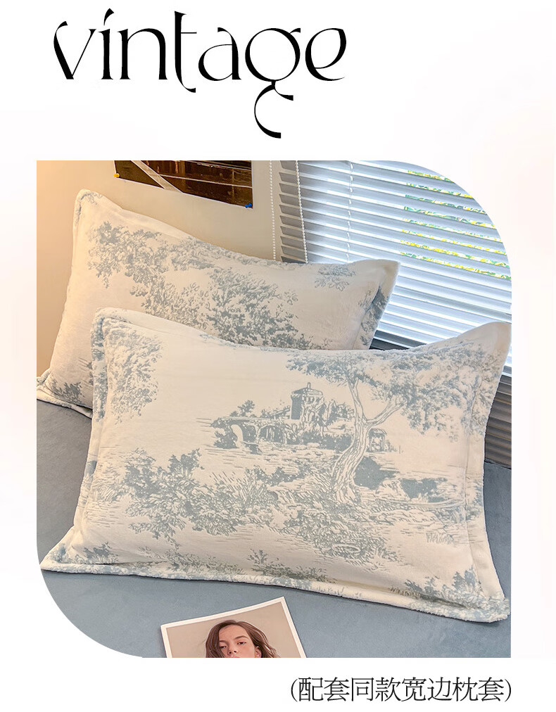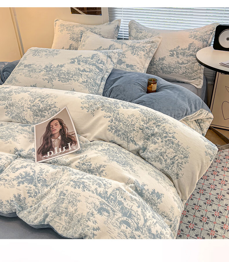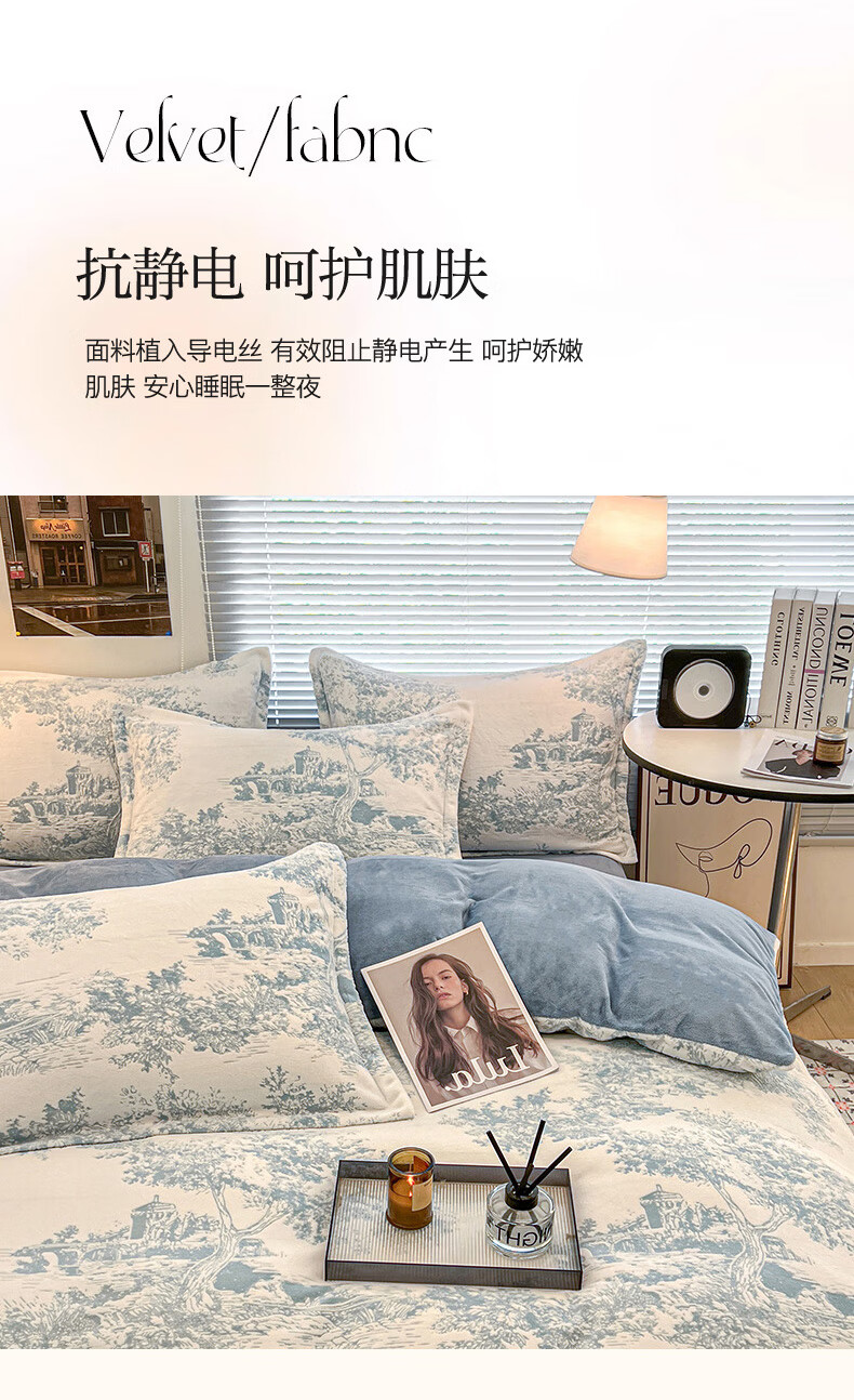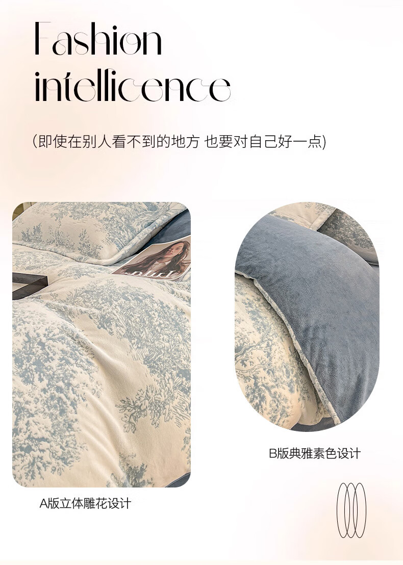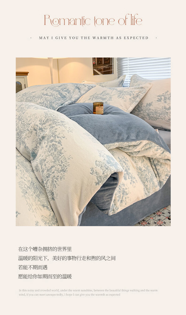 猫人(MiiOW)冬季雕花加厚牛奶绒被套单件150x200单独珊瑚法兰绒加绒被罩 乐枝蓝【加密牛奶绒 蓄热保暖不易掉毛】 2.0m床单四件套-适合220x240cm被芯