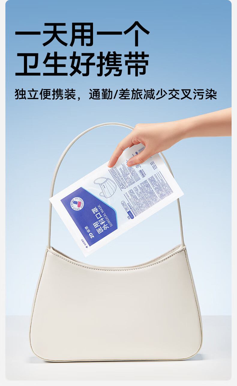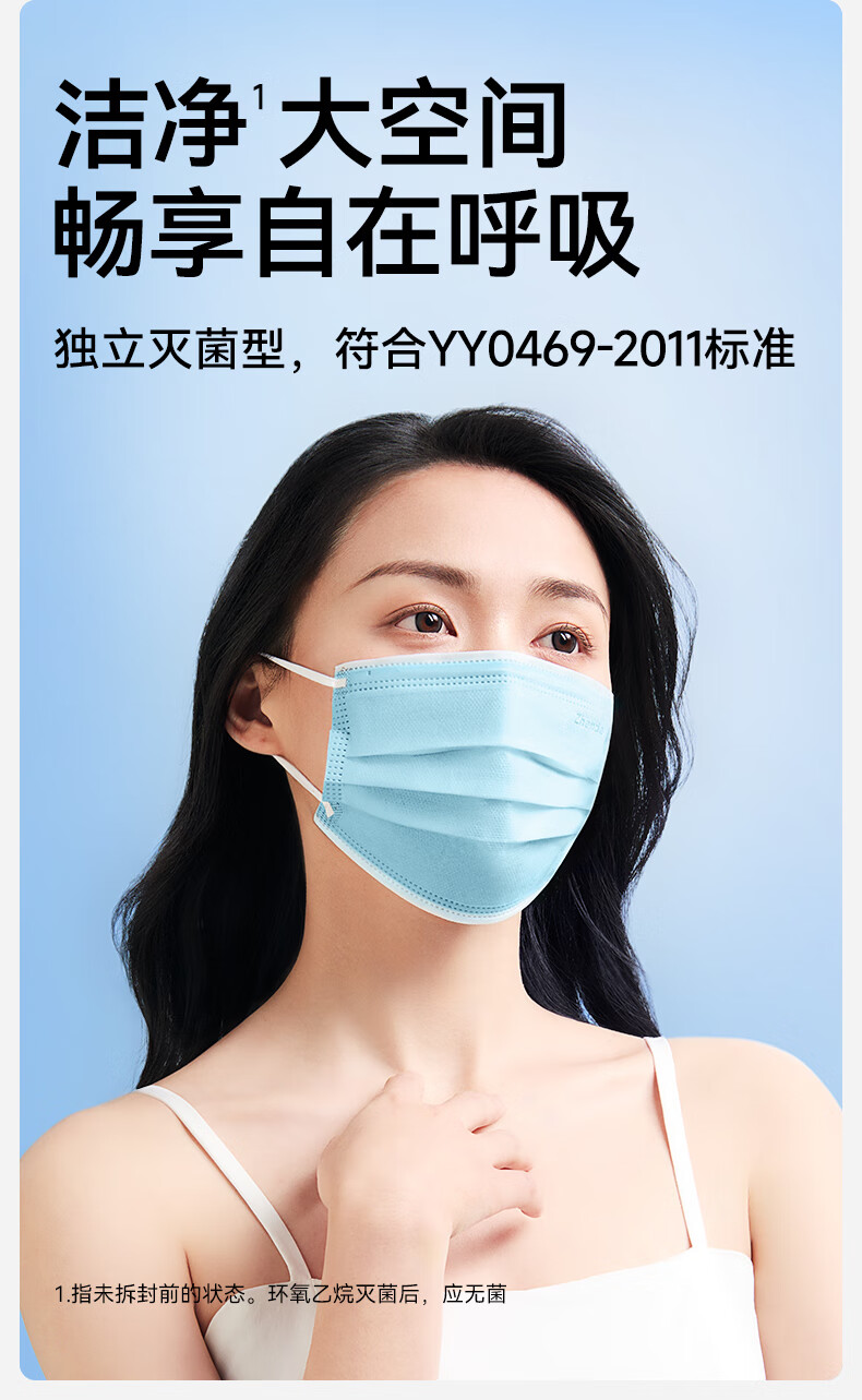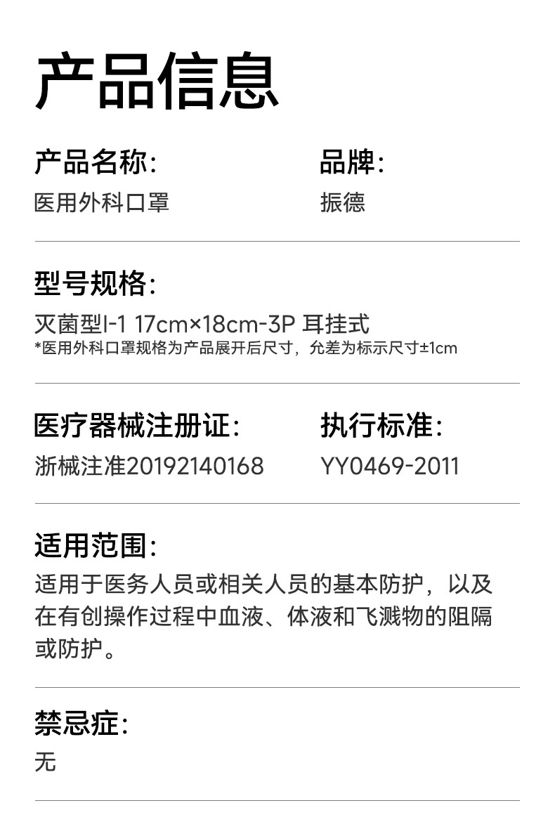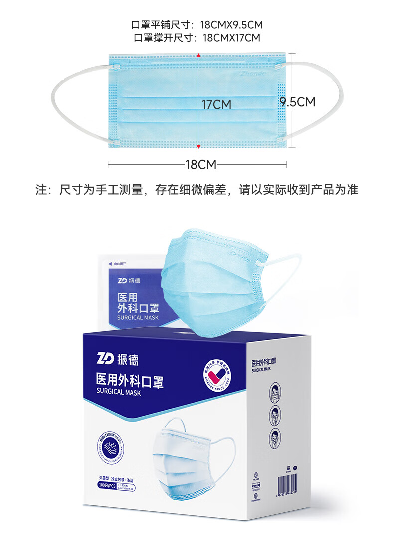 振德一次性医用外科灭菌级口罩独立包装一只一袋冬季防粉尘雾霾100只