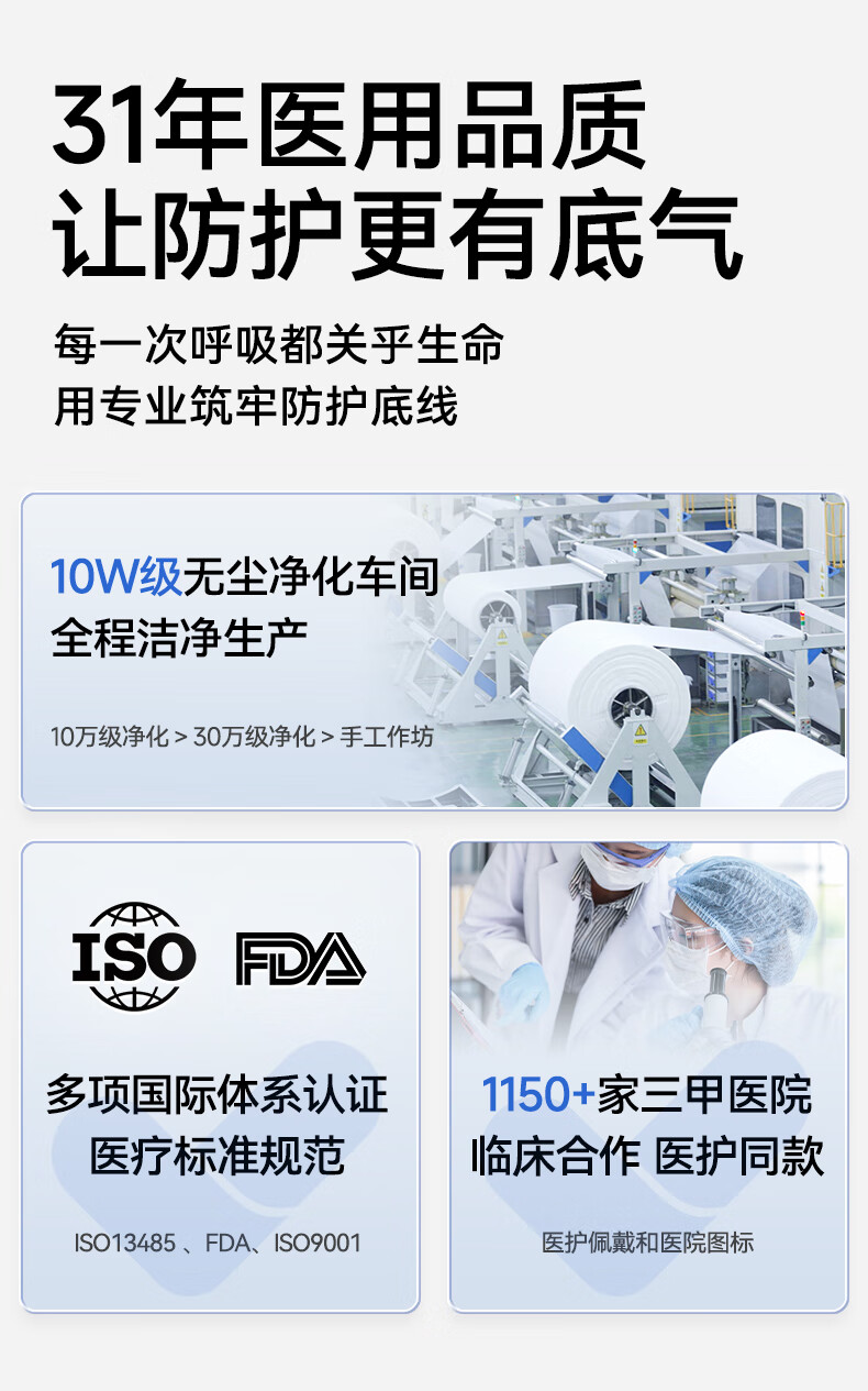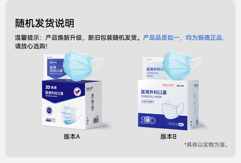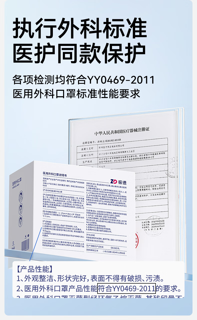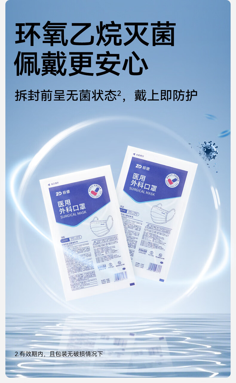 振德一次性医用外科灭菌级口罩独立包装一只一袋冬季防粉尘雾霾100只
