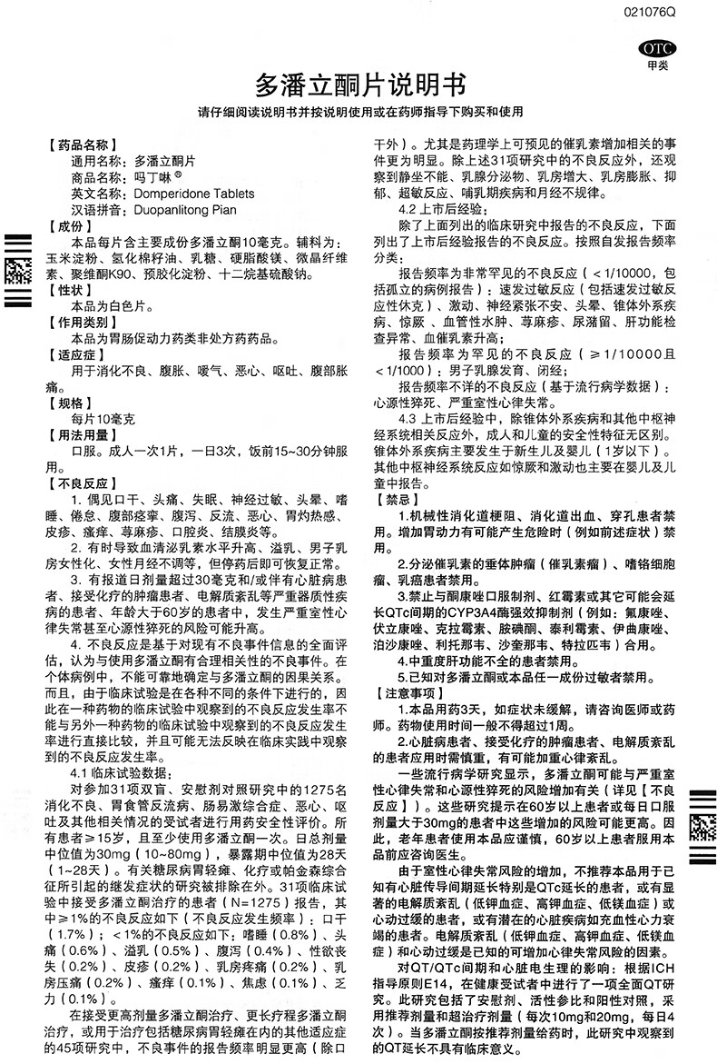 【原研药】吗丁啉胃药多潘立酮片42片健胃消食养胃肠胃炎胃痛消化不良增强胃动力呕吐恶心腹胀嗳气