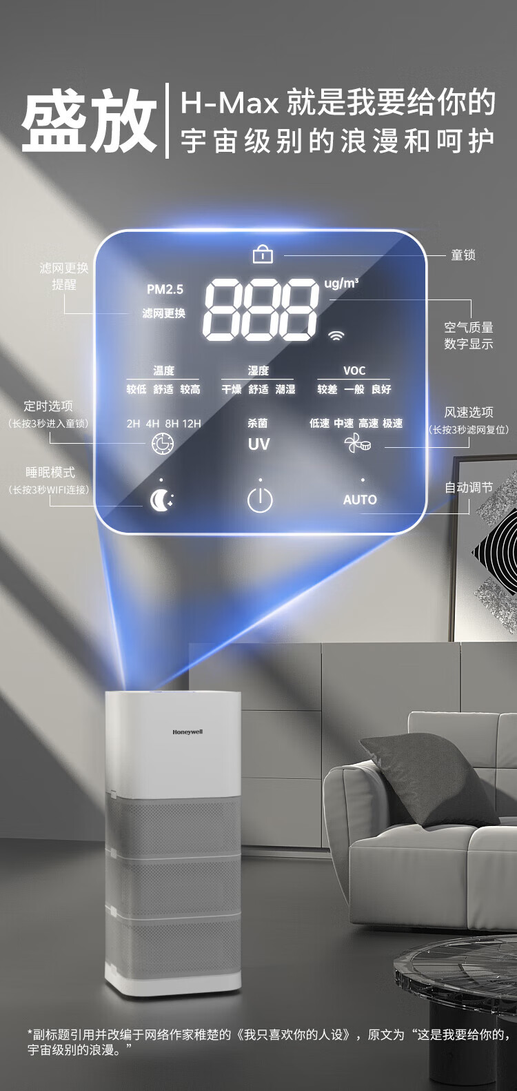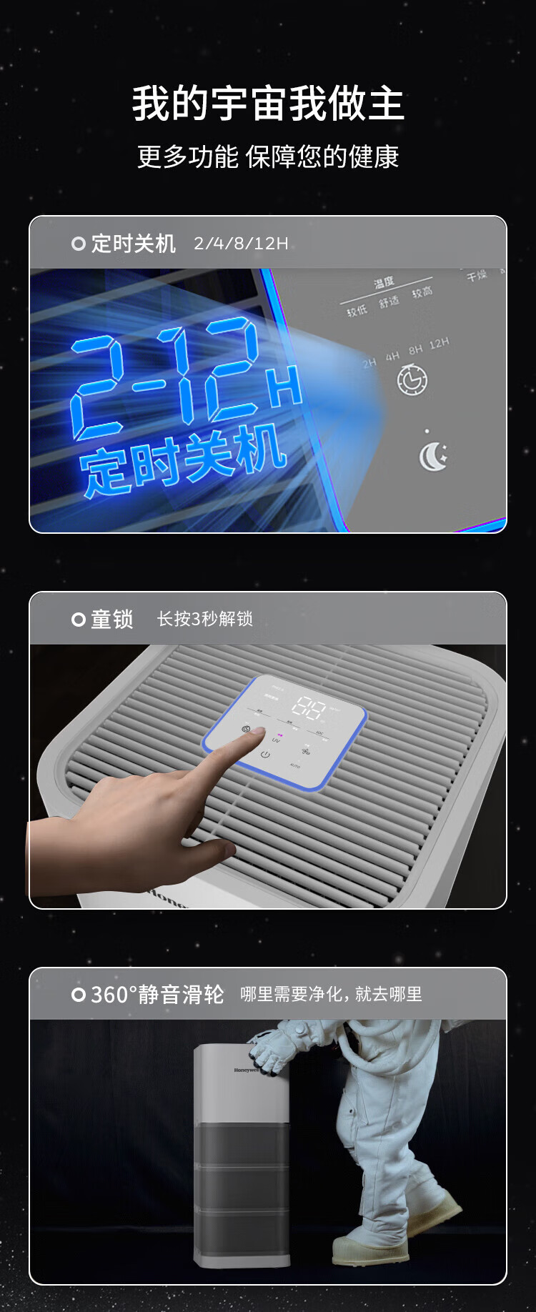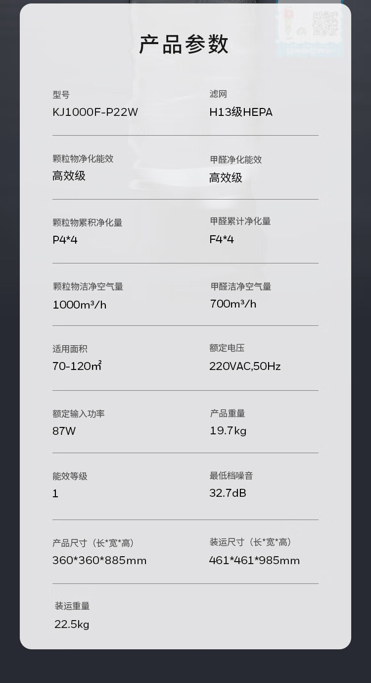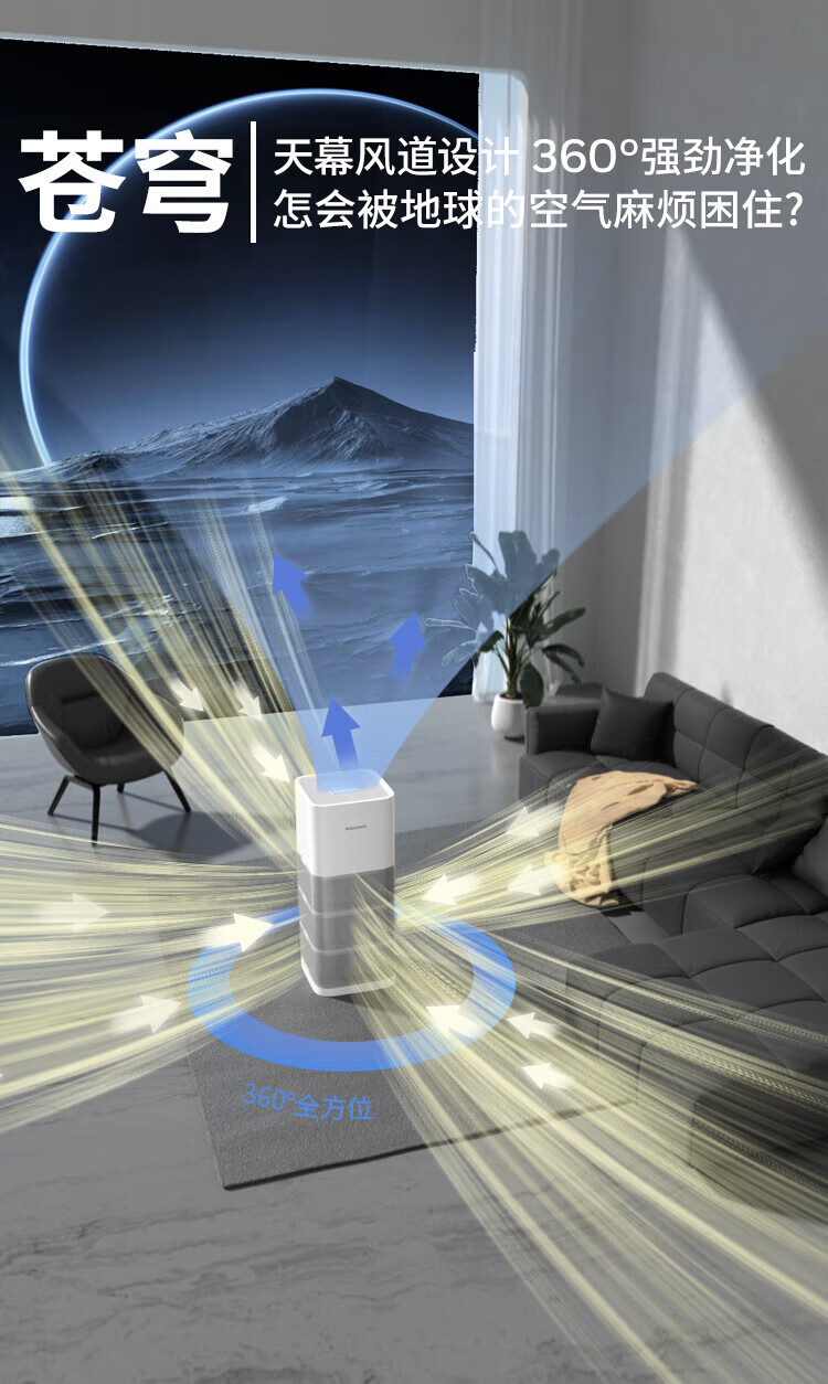 霍尼韦尔(Honeywell)空气净化器除花粉甲醛细菌流感病毒卫健委备案消毒机hmax空间舱全屋速净KJ1000F-P22W家电国家补贴