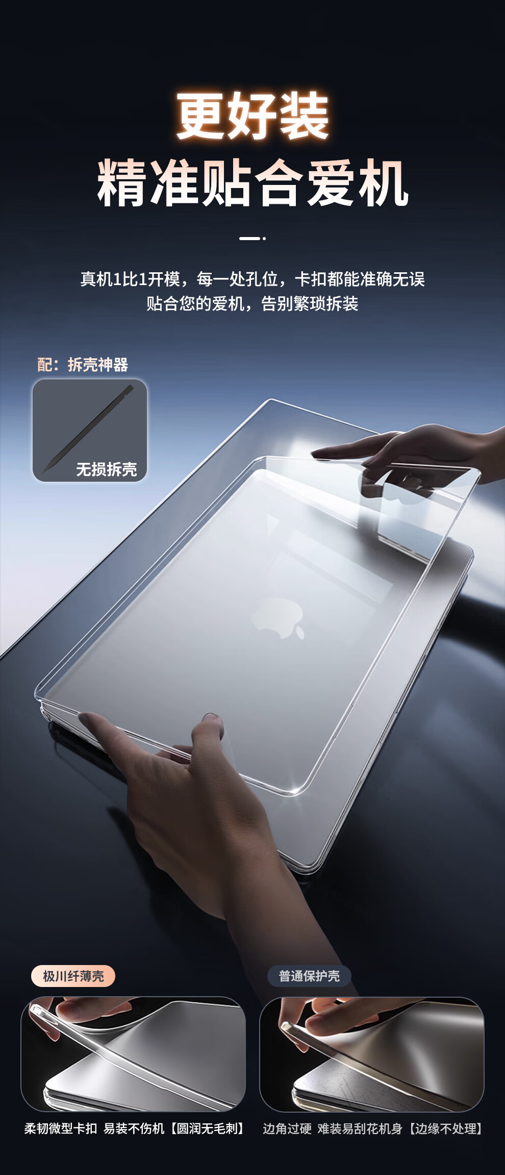 极川 Apple苹果MacBook Air 13.6英寸M4/3/2保护壳2025/24/22款笔记本电脑保护套纤薄透明外壳防刮耐磨