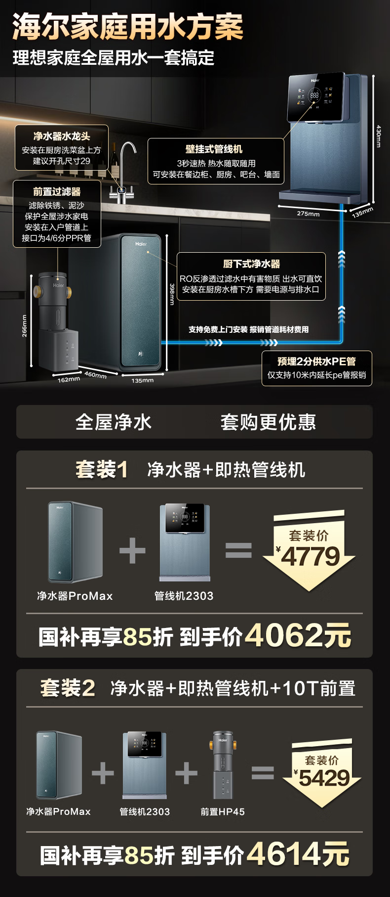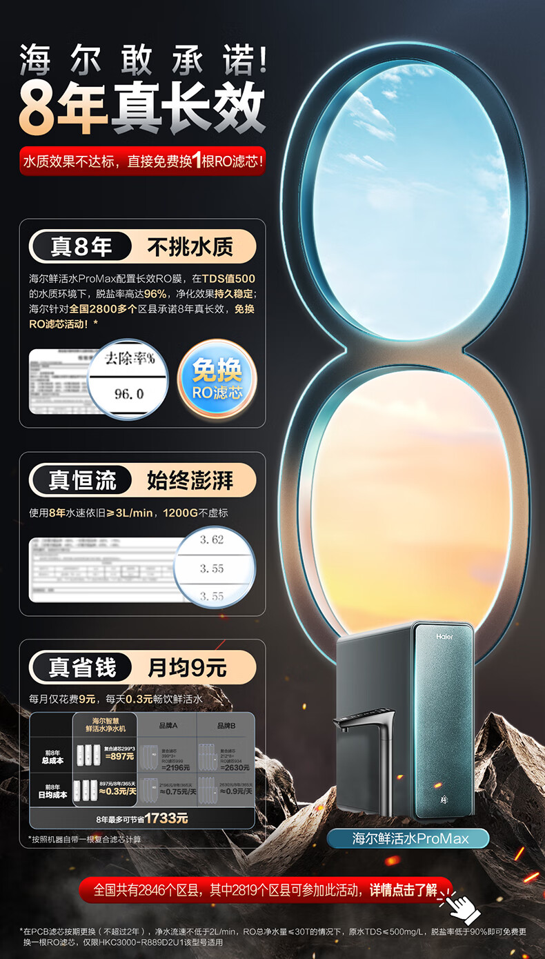 海尔(Haier)鲜活水ProMax【国家补贴20%】小红花净水器家用1400G高流速8年长效进口RO反渗透膜直饮水机净饮机 【8年进口RO膜】鲜活水ProMax