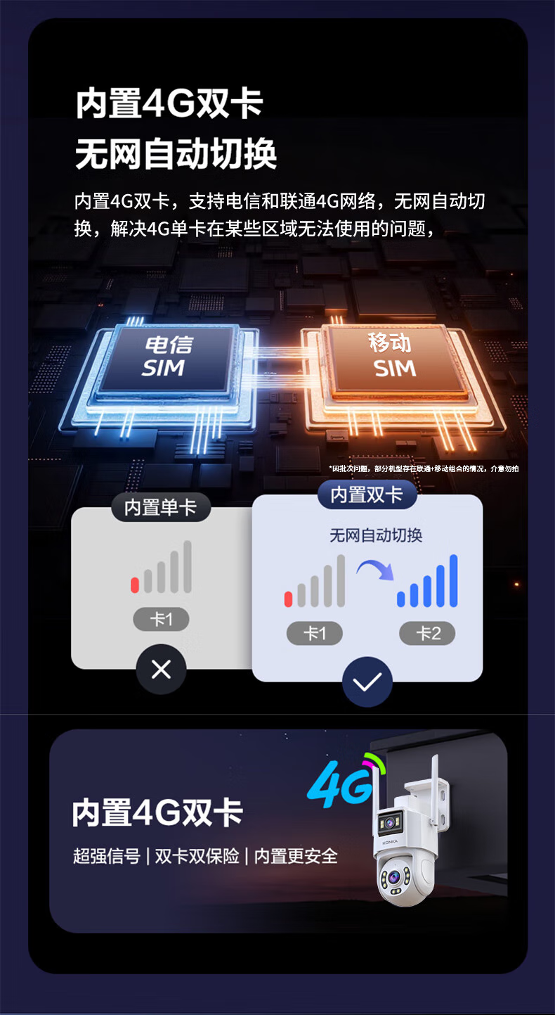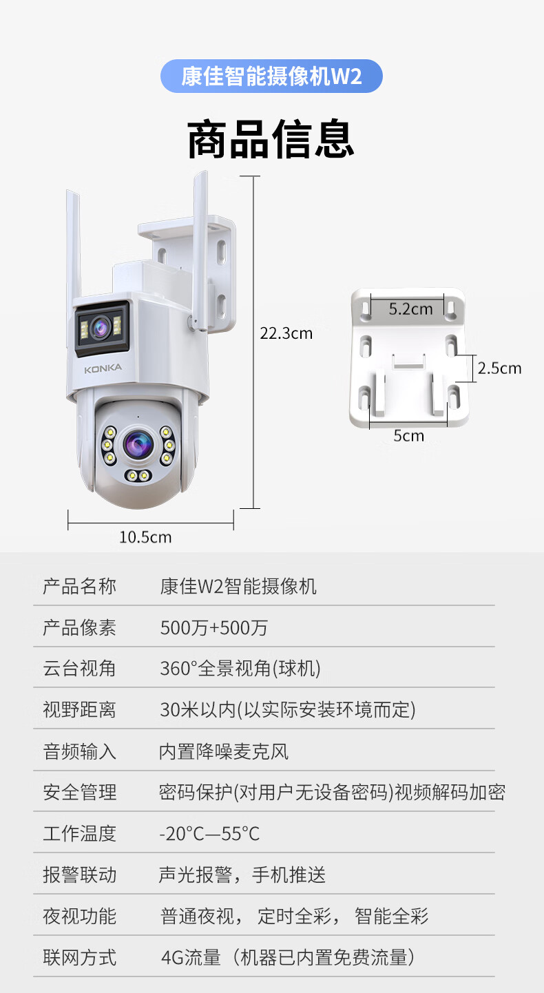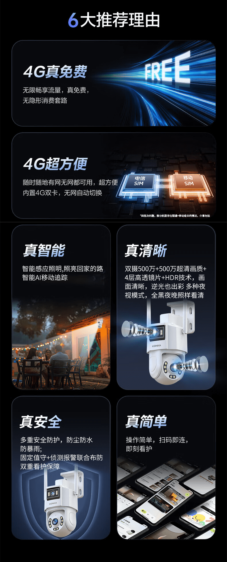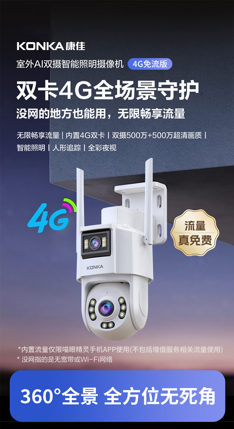 康佳4g监控无线摄像头无需连wifi终身免流量监控器360度无死角带夜视全景手机远程家用高清室户外插电