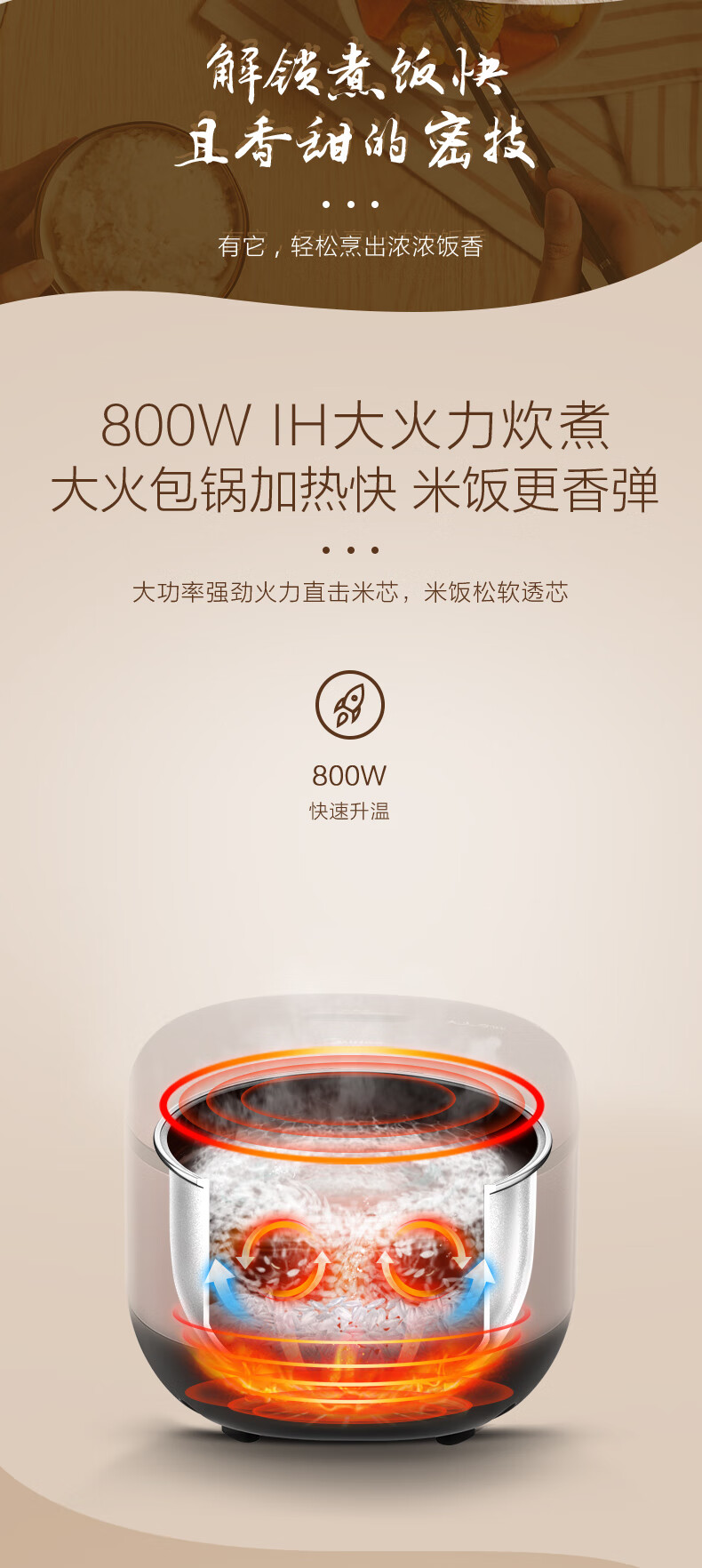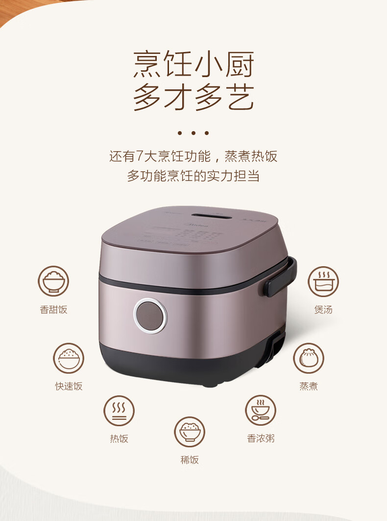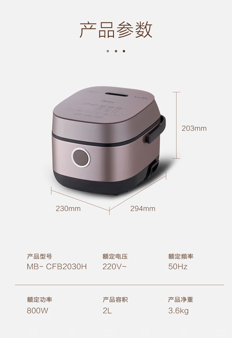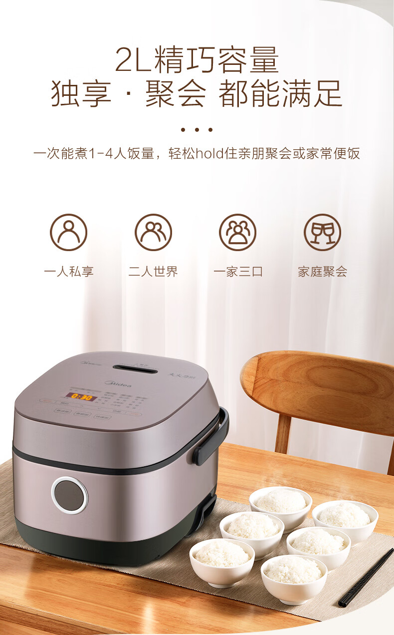 美的(Midea)电饭煲家用1-2人小容量2L立体IH电磁加热小型多功能迷你煮饭锅智能预约电饭锅国家补贴CFB2030H
