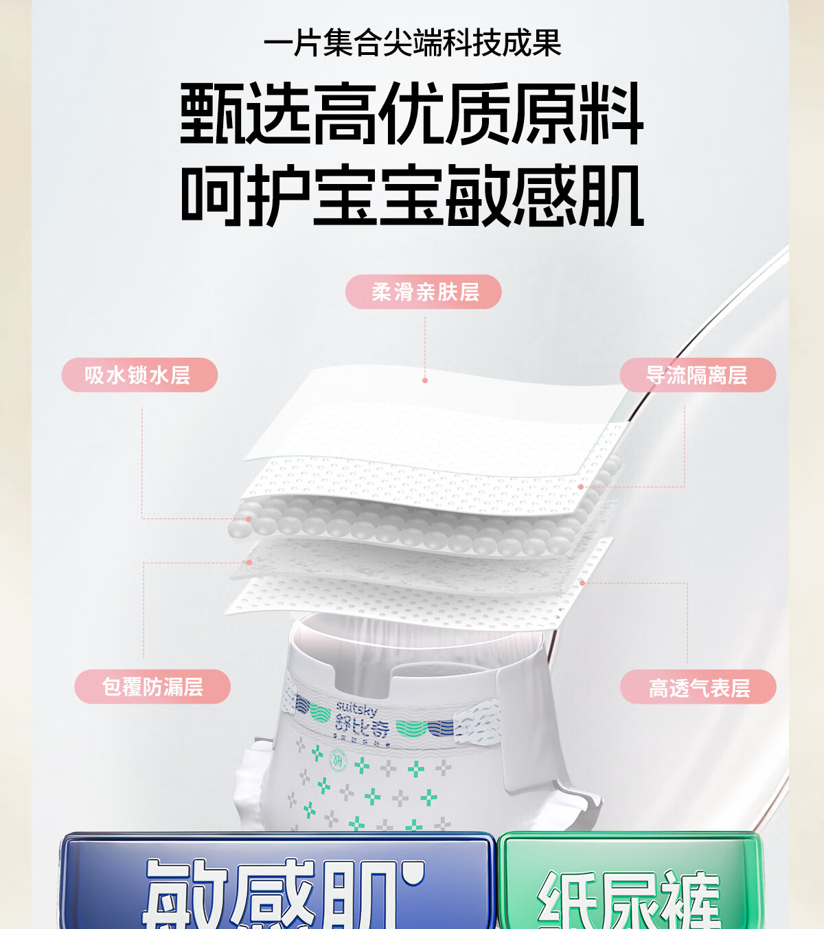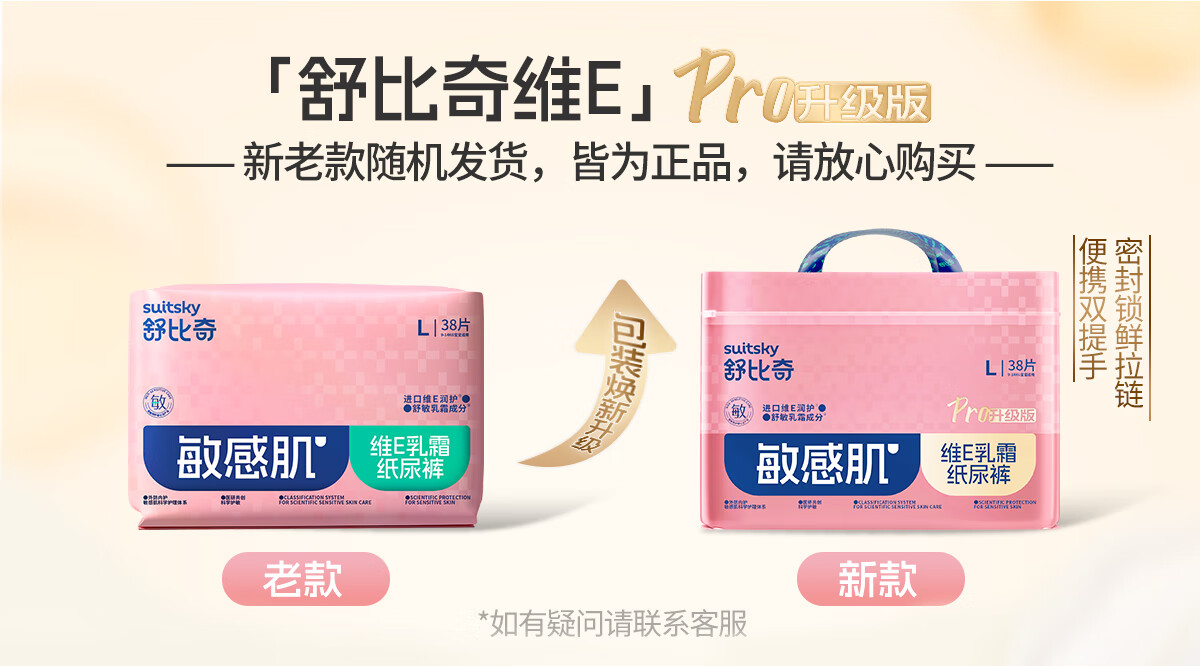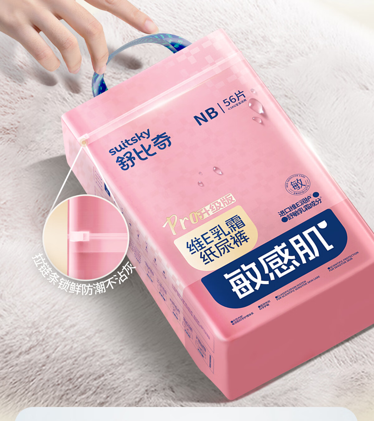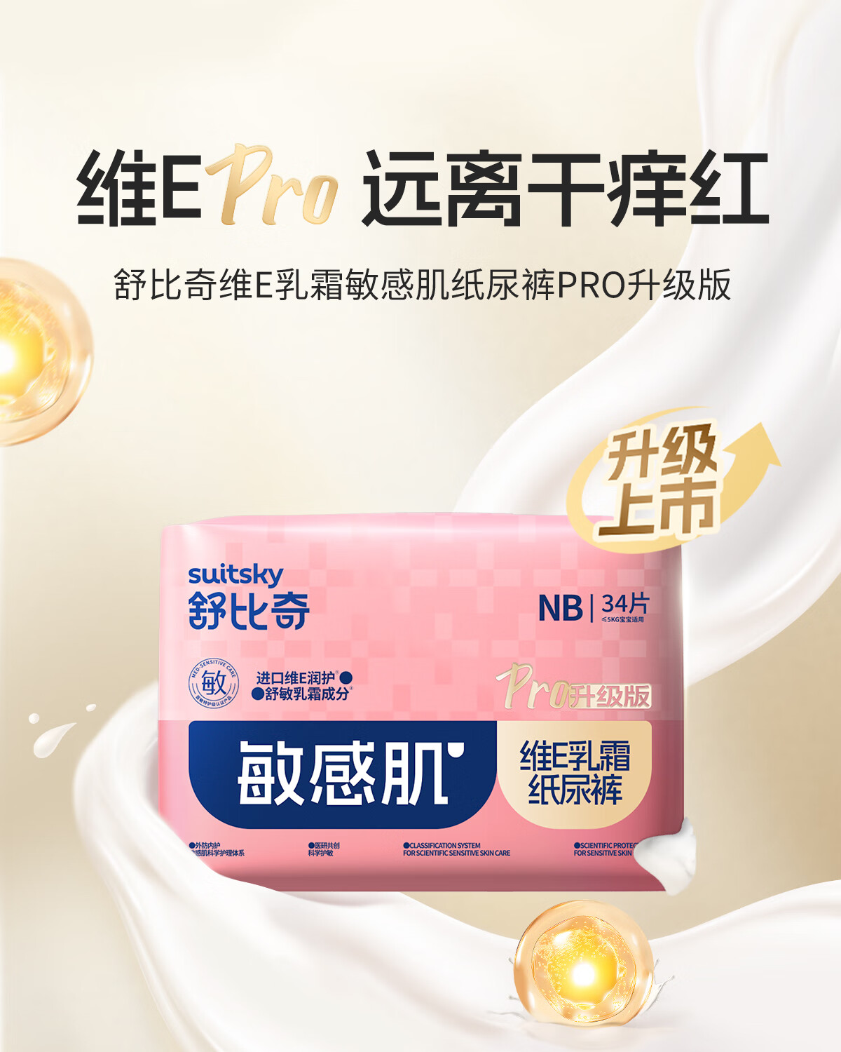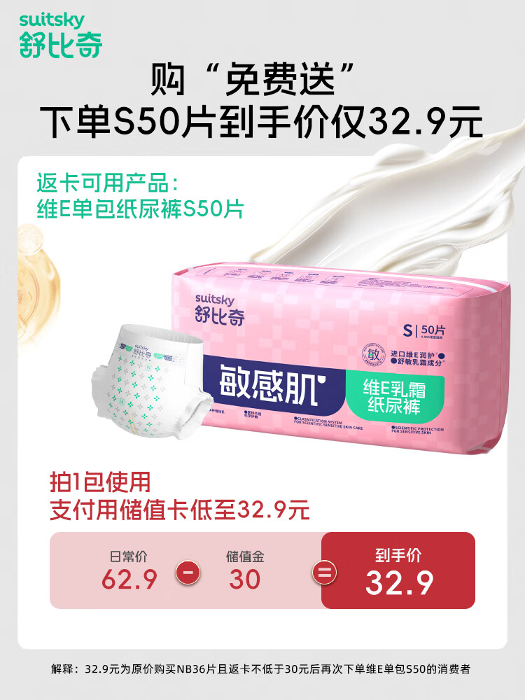舒比奇(Suitsky)【新生儿尿裤免费送】维EPro敏感肌新生纸尿裤NB码34片(≤5kg)