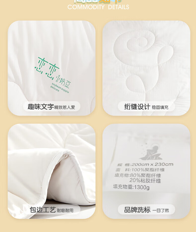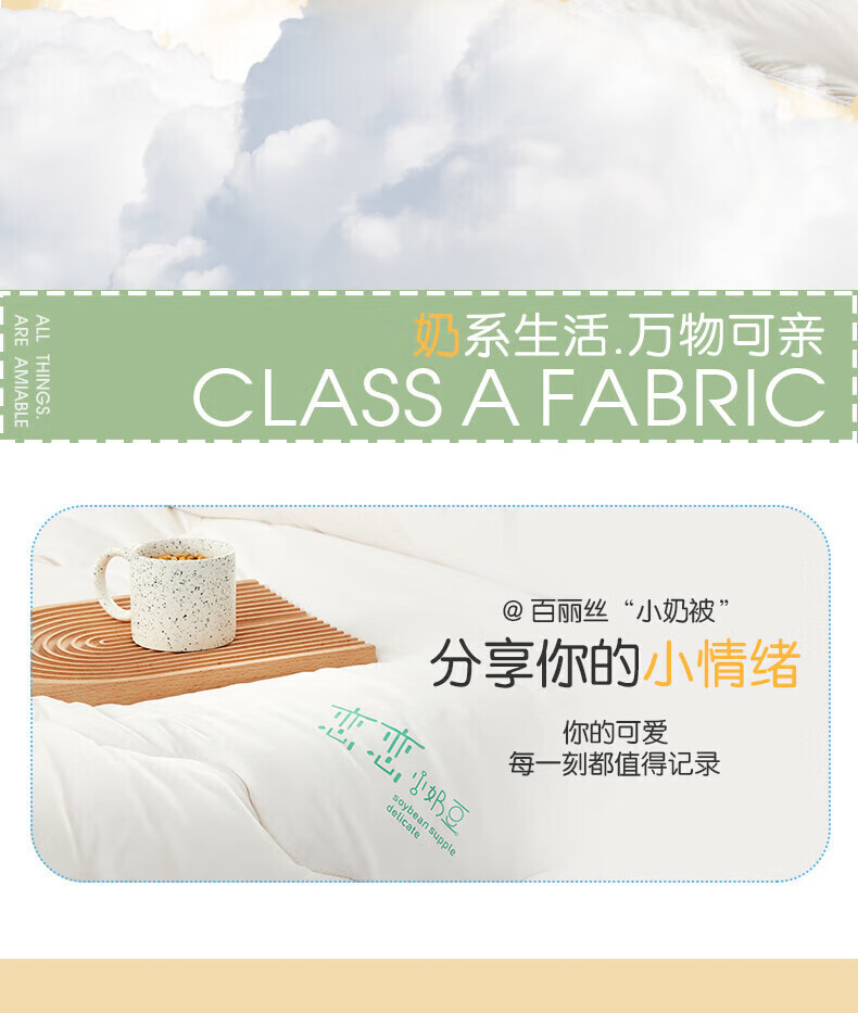 百丽丝出品被子被芯豆牛奶双蛋白抗菌春秋被二合一四季通用 恋恋小奶豆抗菌春秋被 单人被1.2/1.5米(被芯150*210cm)