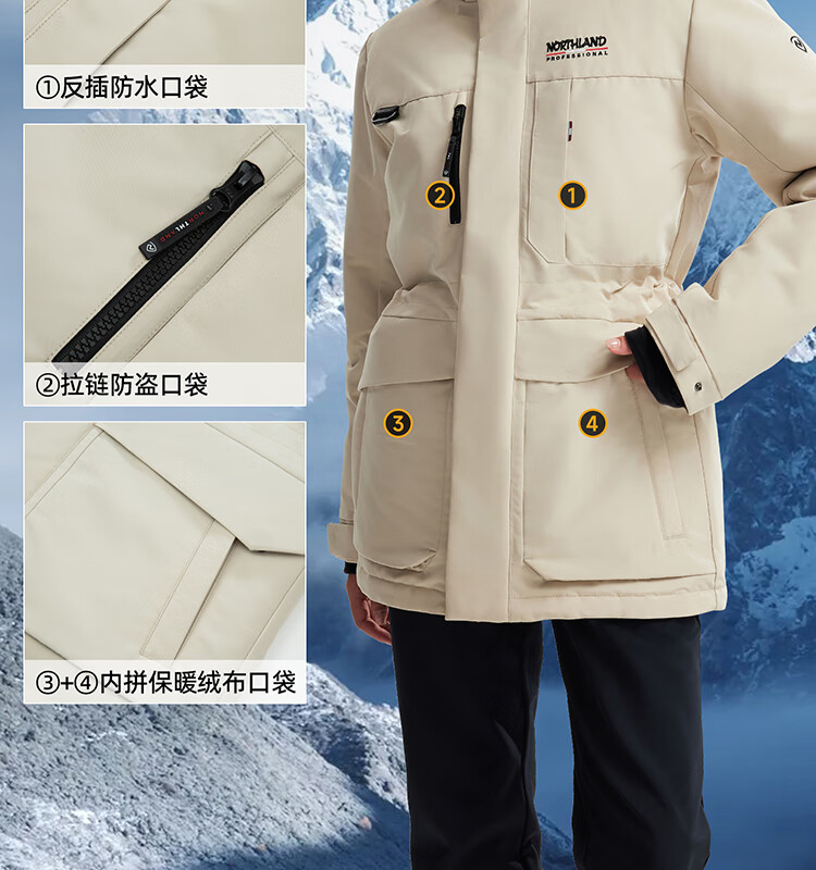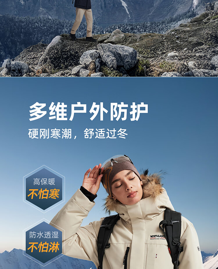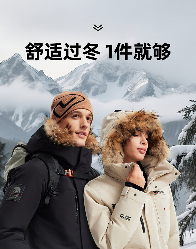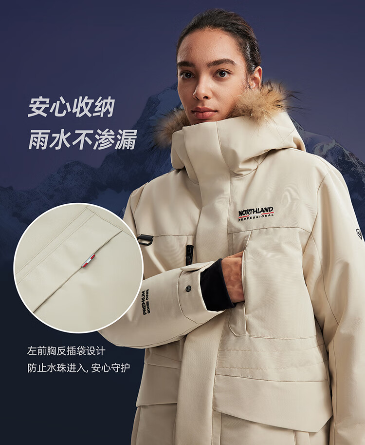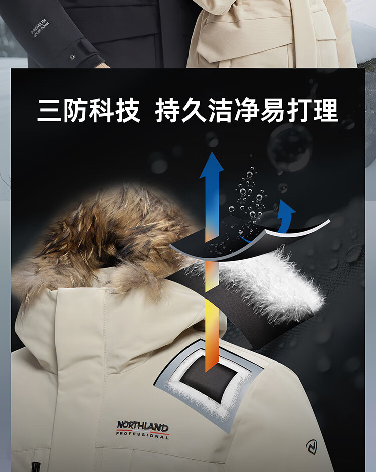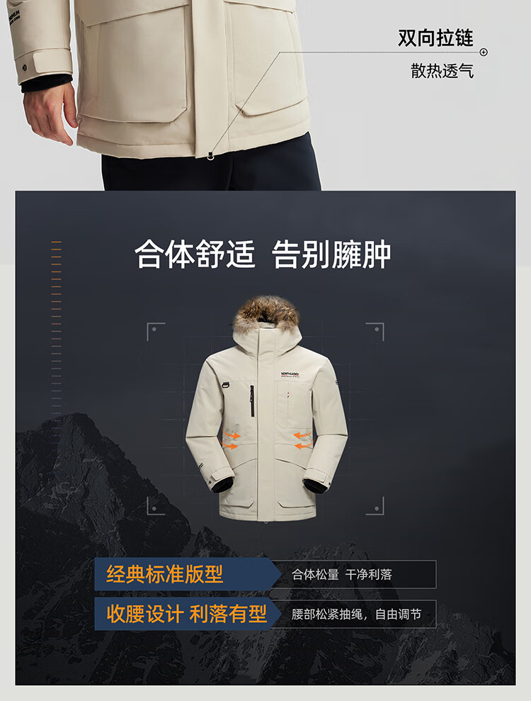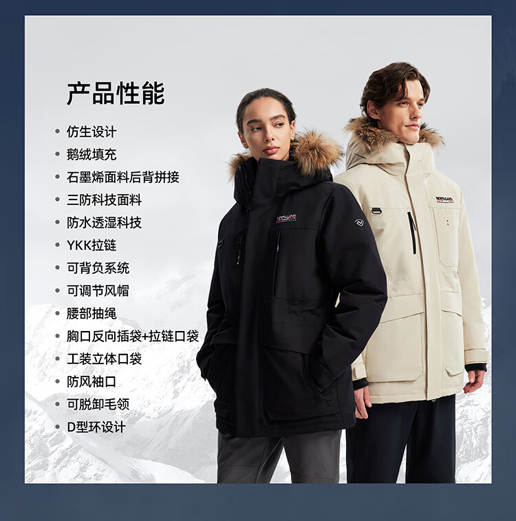 诺诗兰(NORTHLAND)派克羽绒服25秋冬新款户外男女石墨烯可升温防水透湿大毛领羽绒服