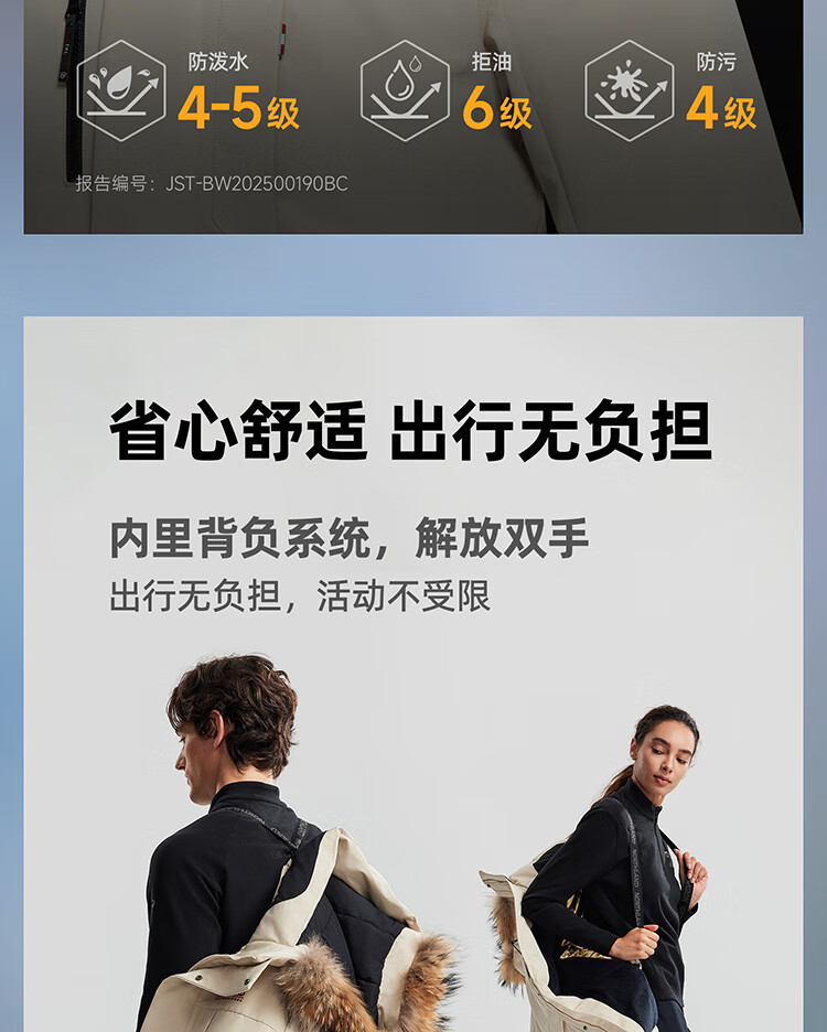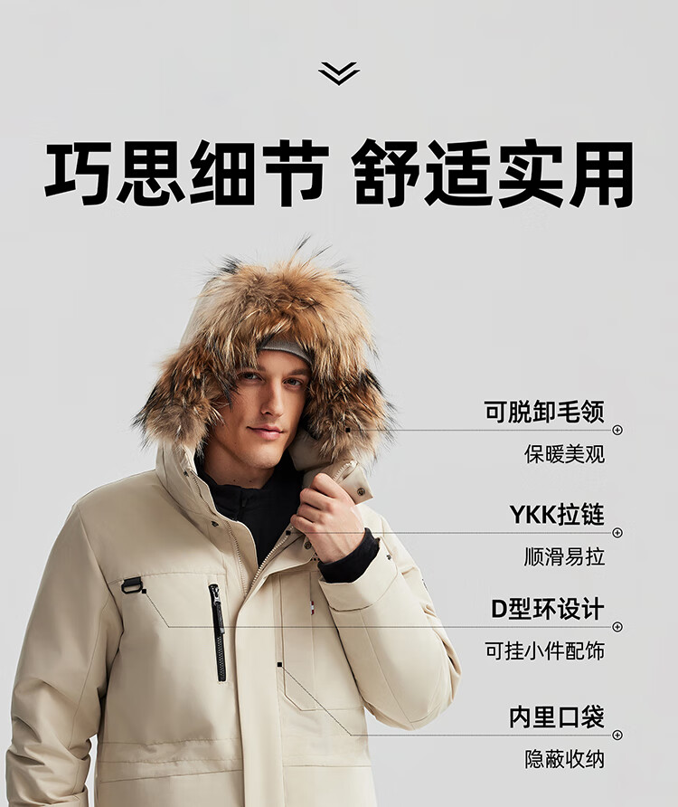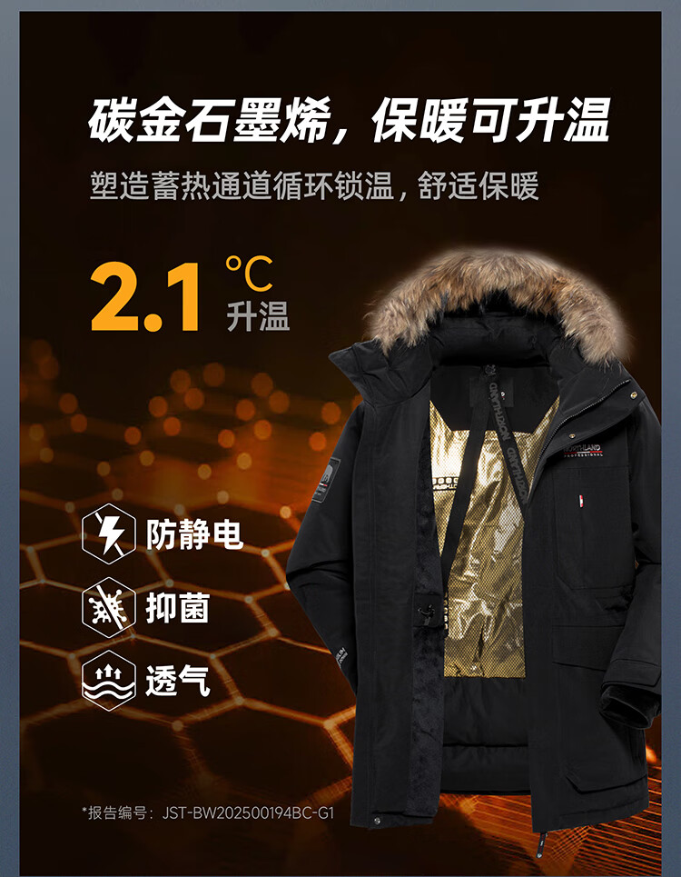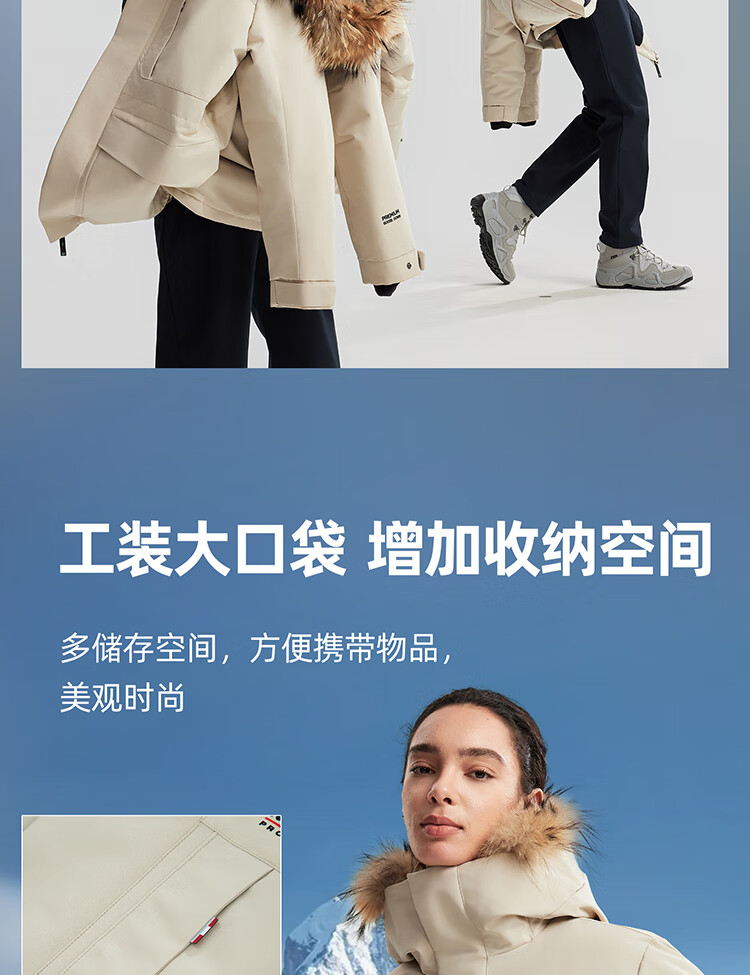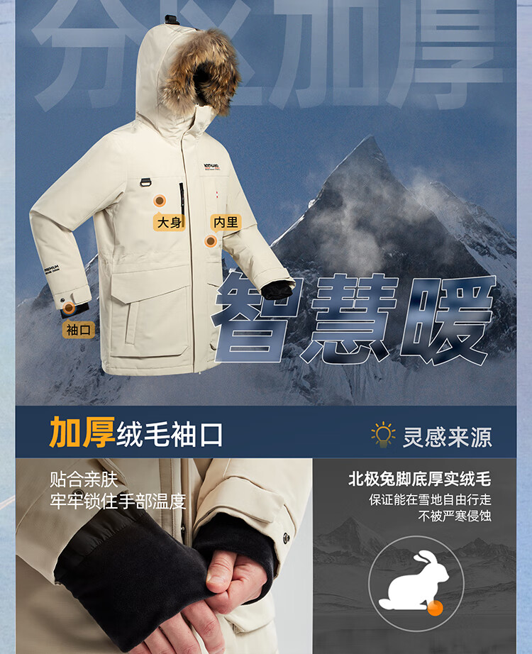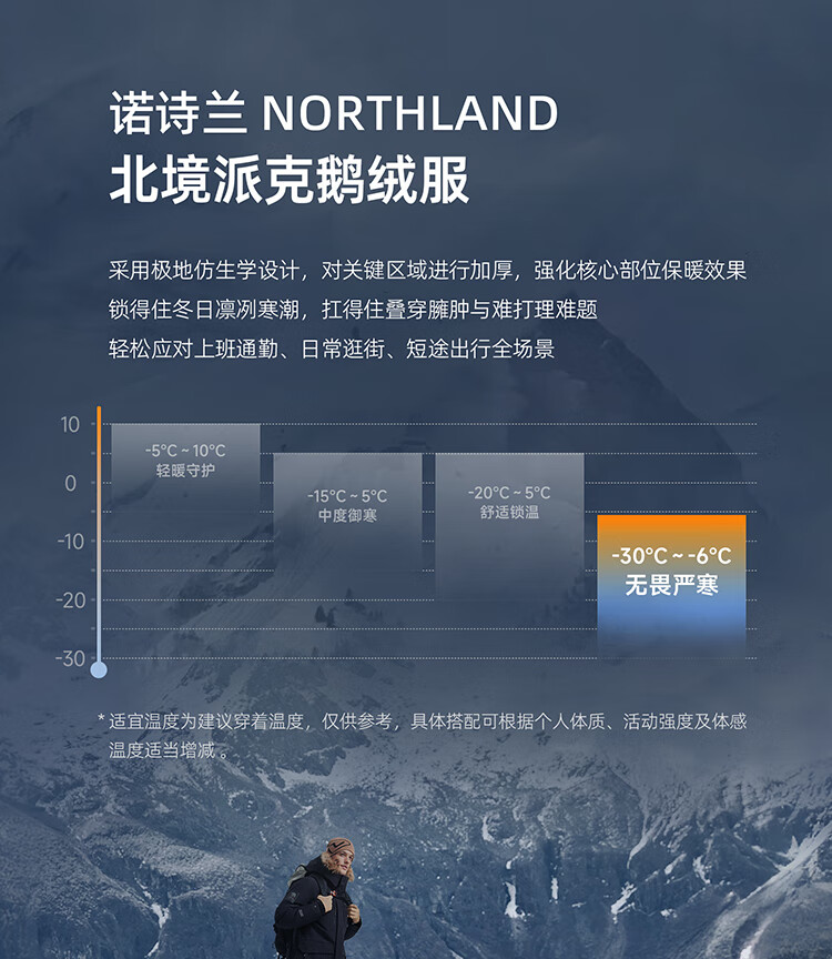 诺诗兰(NORTHLAND)派克羽绒服25秋冬新款户外男女石墨烯可升温防水透湿大毛领羽绒服