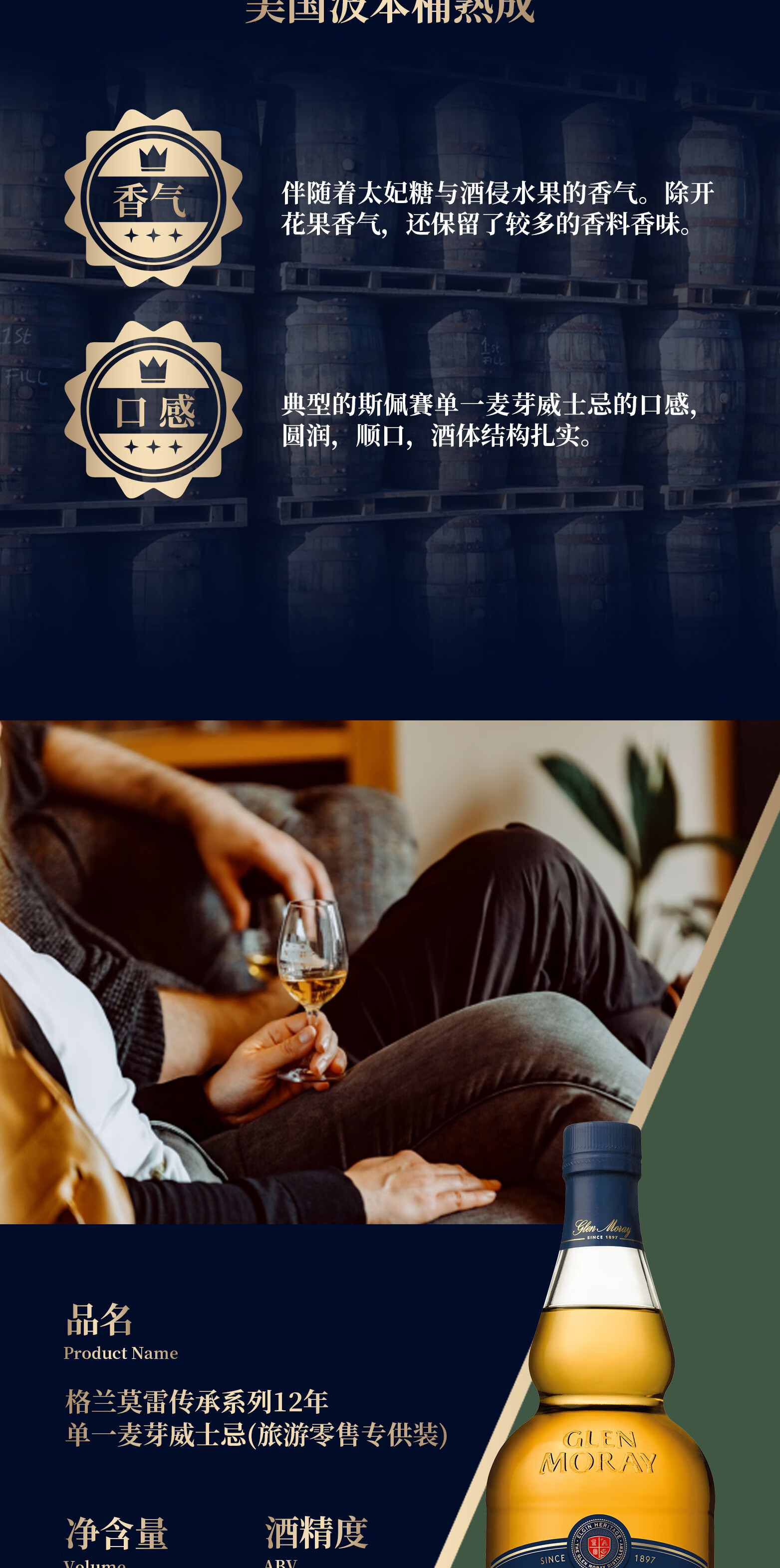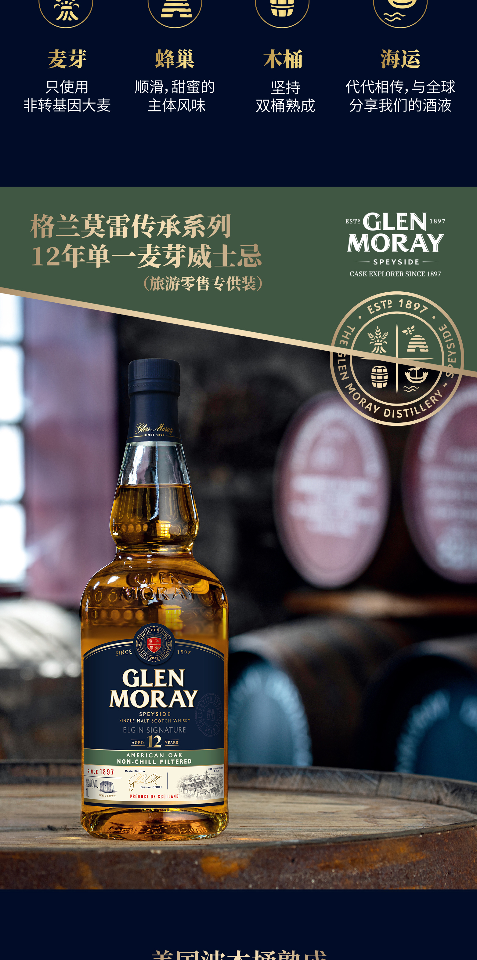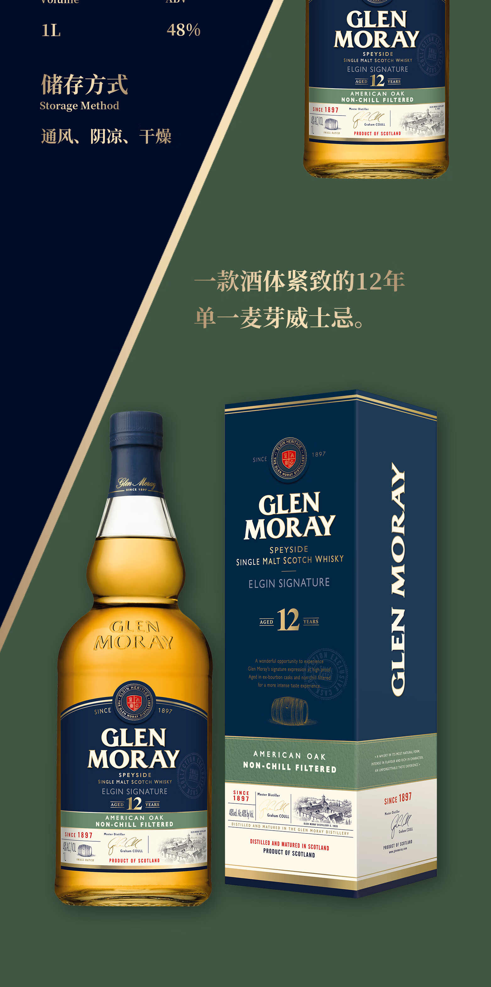 格兰莫雷传承系列12年单一麦芽威士忌旅游零售专供装 1L 48% vol