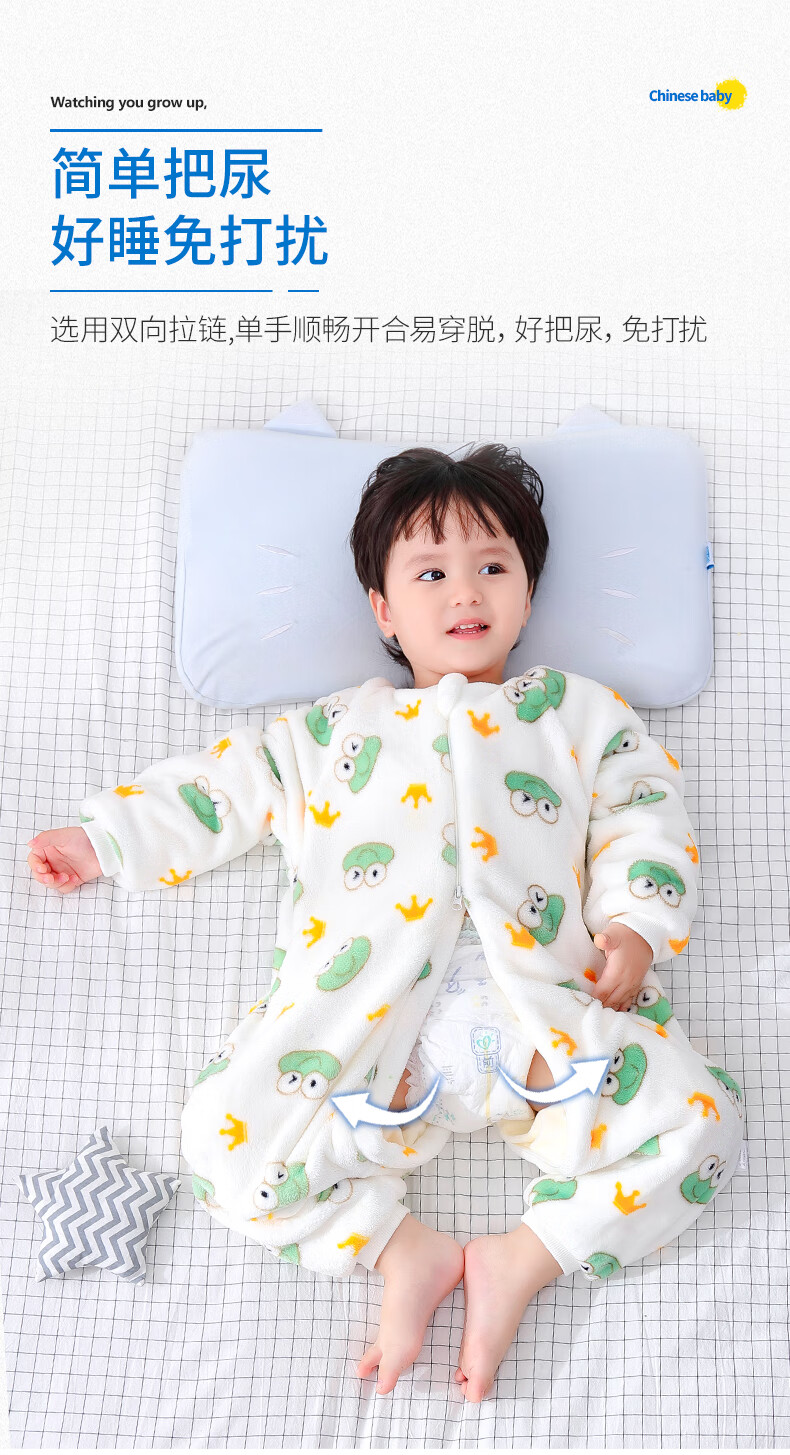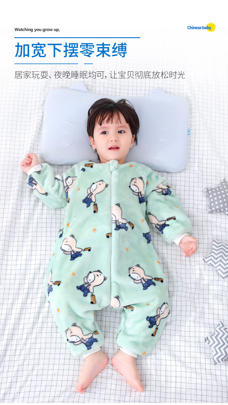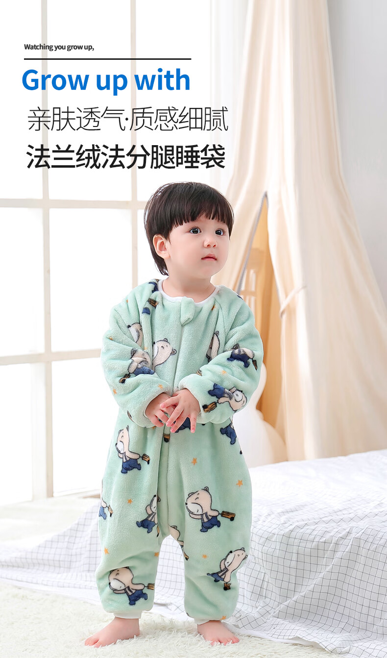 南极人(Nanjiren)婴儿分腿睡袋春秋冬中大儿童防踢子宝宝珊瑚绒家居连体睡衣100cm