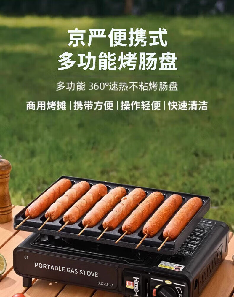 京严【严选品质】烤肠机商用淀粉肠摆摊家用黄金脆皮热狗机网红夜市烤香肠模具机器卡式炉烤肠盘全套燃 品质两用出摊【烤肠盘8管+两用卡式炉+收纳盒】 【一次可做8根】满油自动过滤