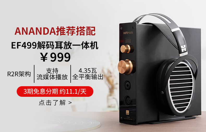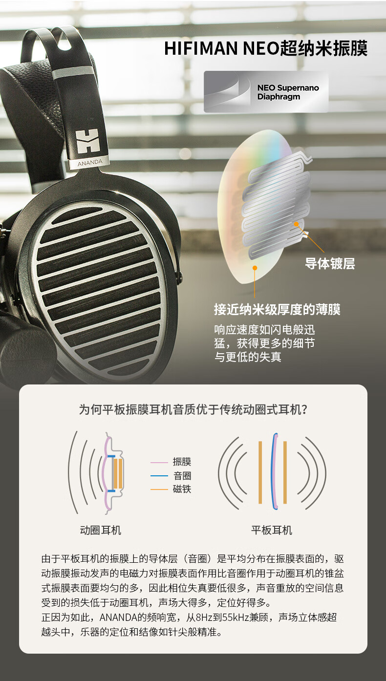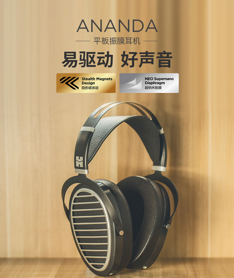 HIFIMAN(海菲曼)ANANDA全尺寸开放式平板振膜头戴式hifi音乐耳机 手机直推发烧高保真耳机