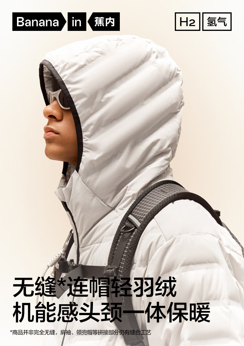 蕉内氢气502Air男士斜纹压胶连帽轻薄羽绒服通勤保暖外套冬季防风大衣