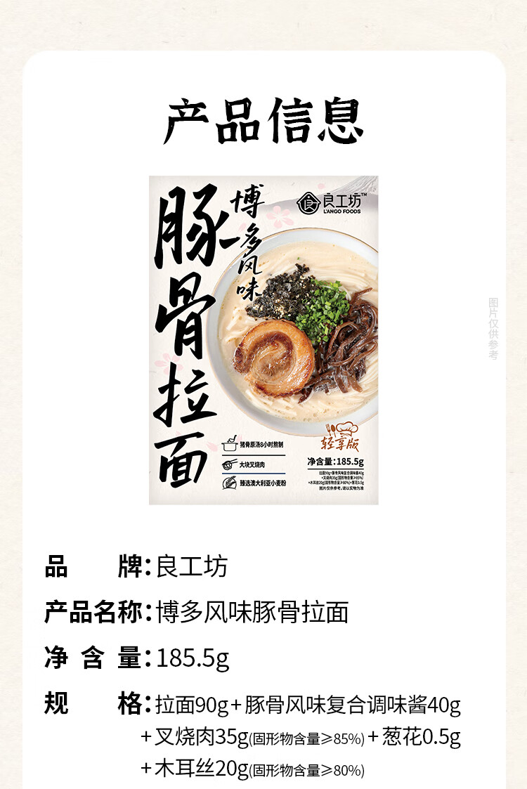 良工坊博多豚骨拉面185.5g日式拉面方便面速食面儿童早餐晚餐豚骨拉面