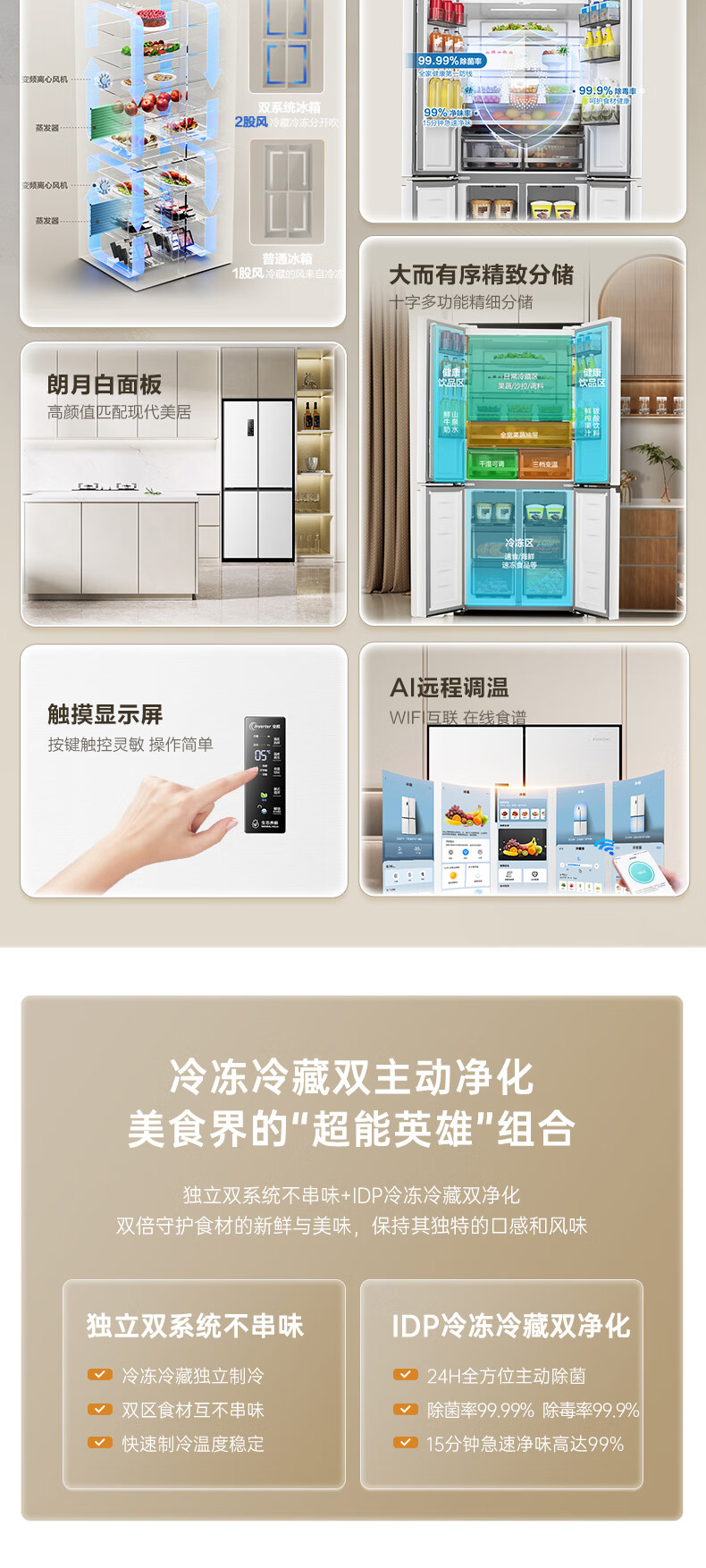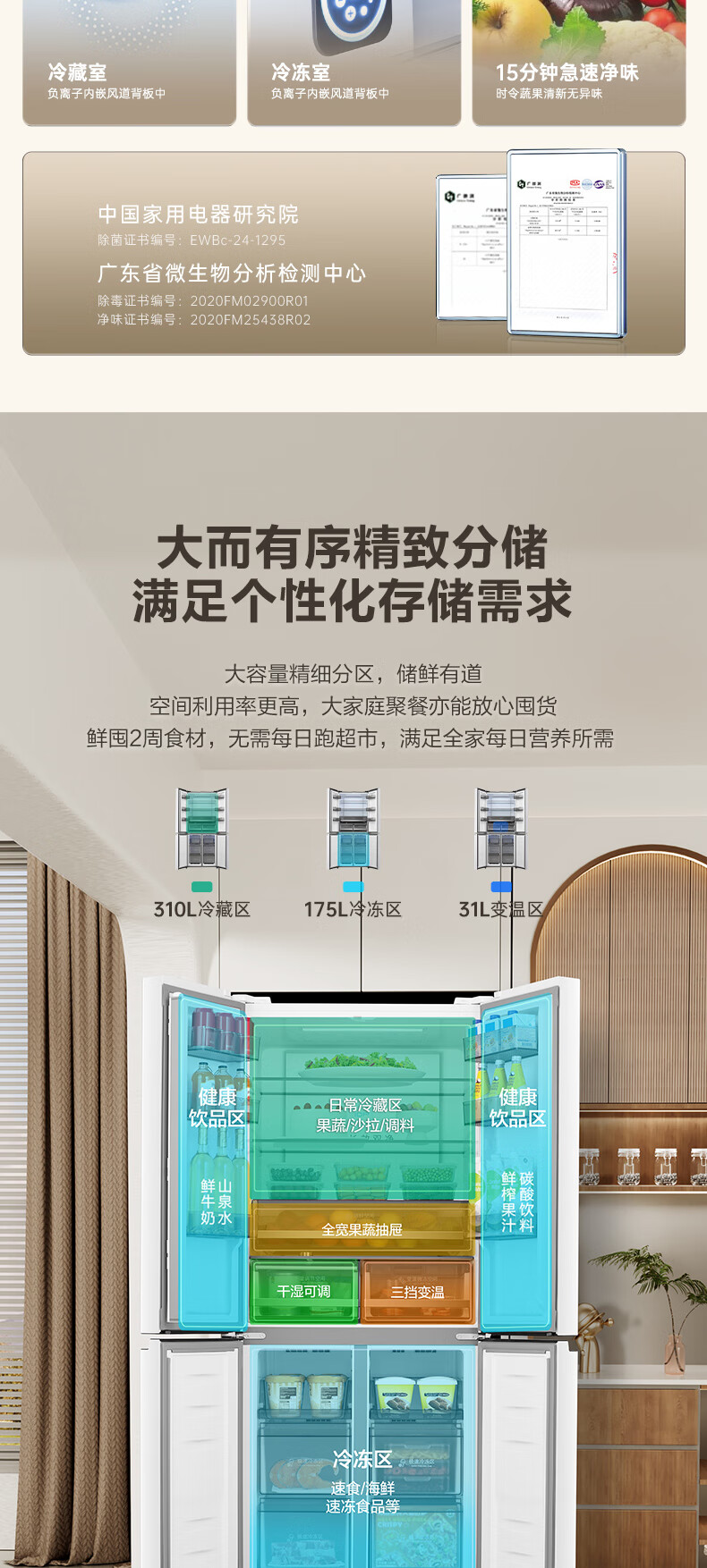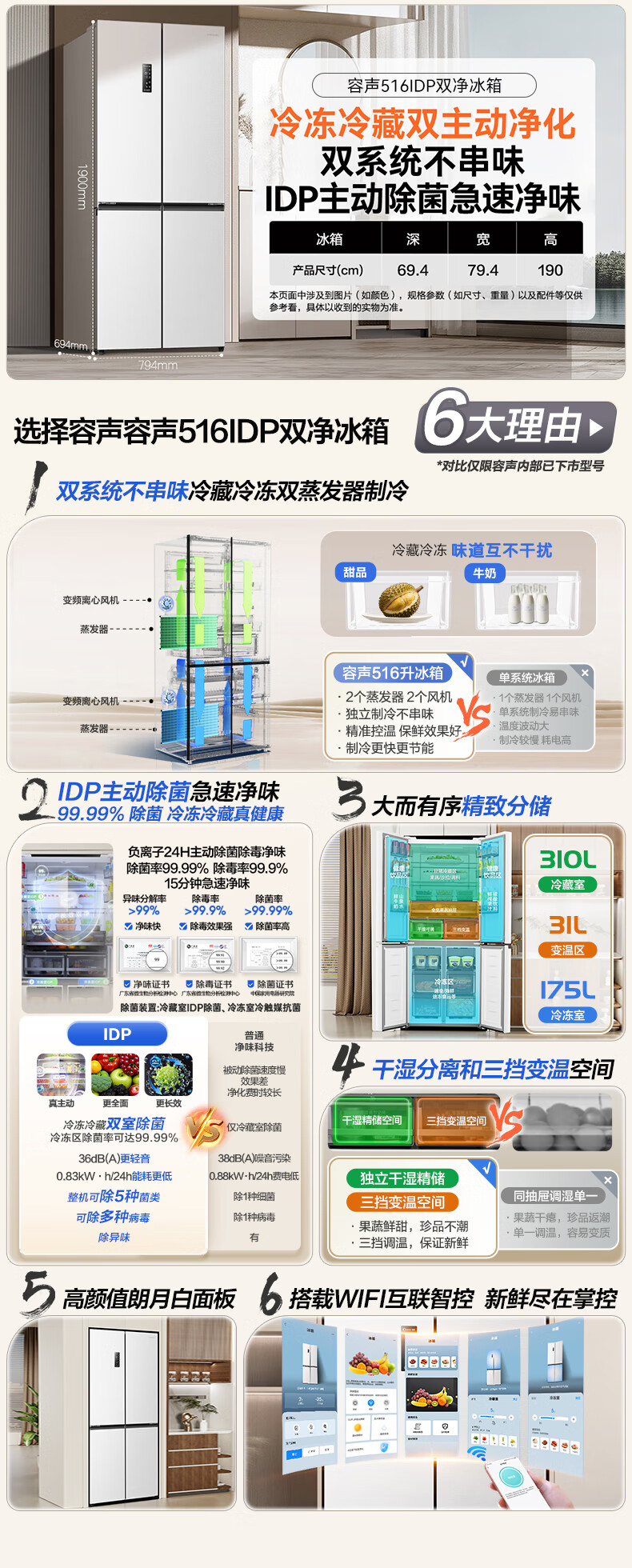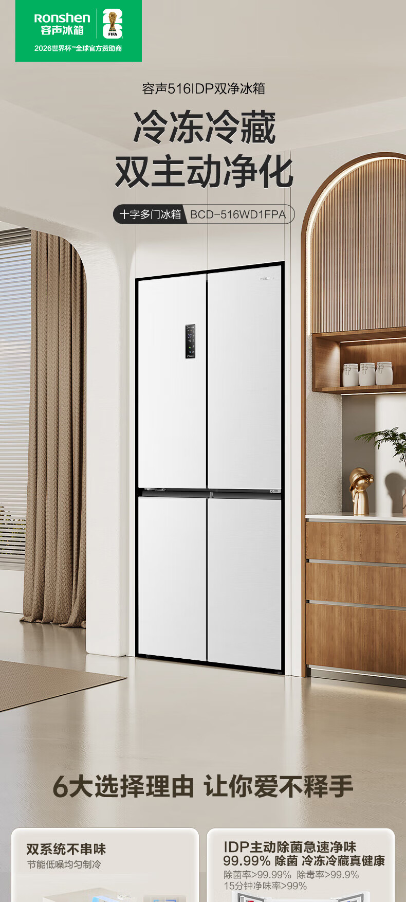 容声516升双净双系统十字四开门电冰箱家用一级能效风冷无霜大容量BCD-516WD1FPA白国家补贴526十字款 国家补贴20%
