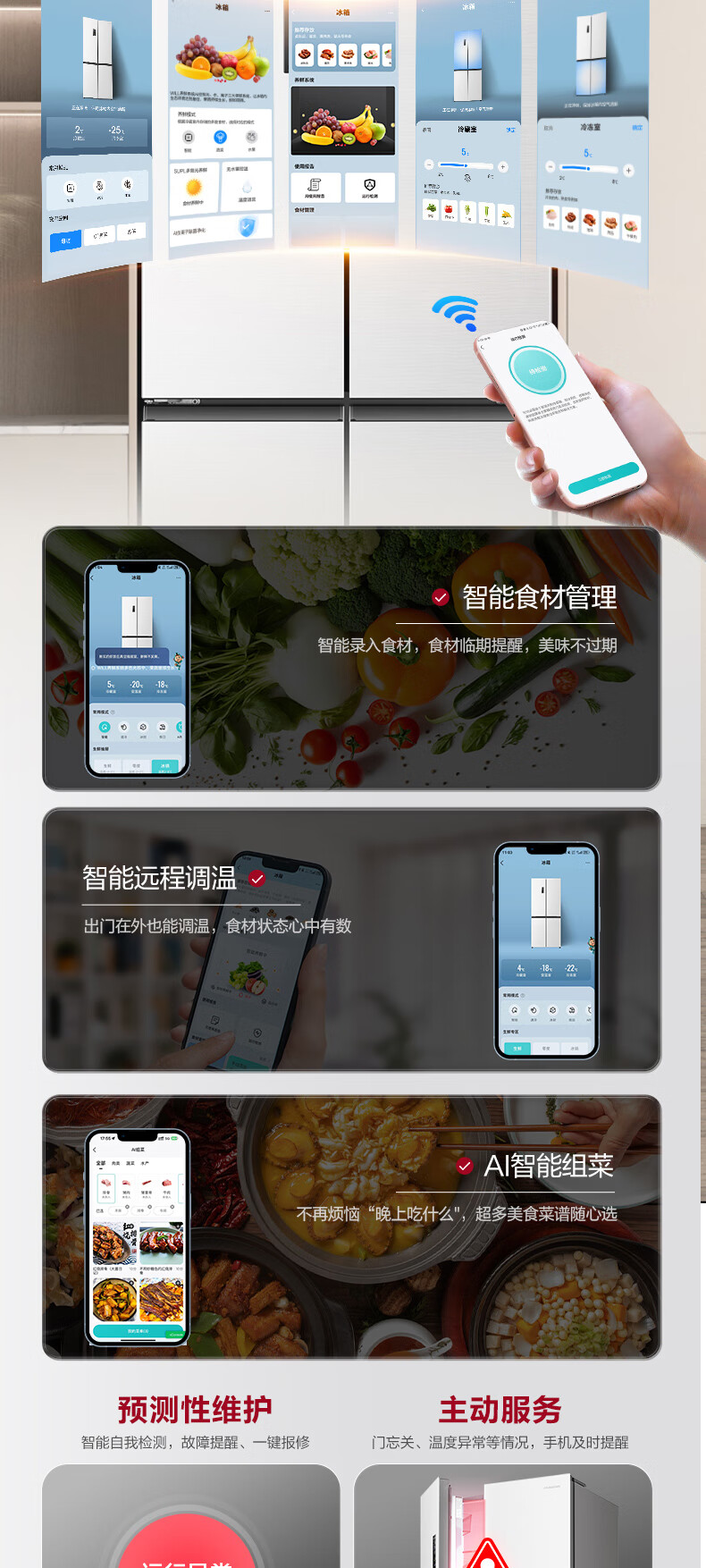 海尔(Haier)冰箱法式多门500升四开门小红花系列594mm超薄一级能效双变频风冷无霜智能WiFi电冰箱家用大容量 秘境银+黑金净化+三挡变温WGHFDEDSWU1