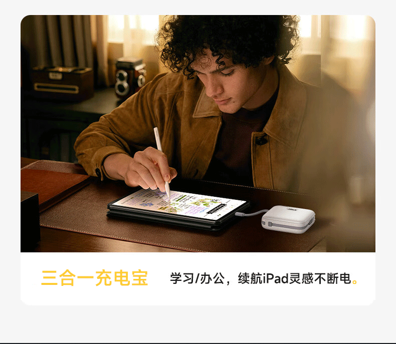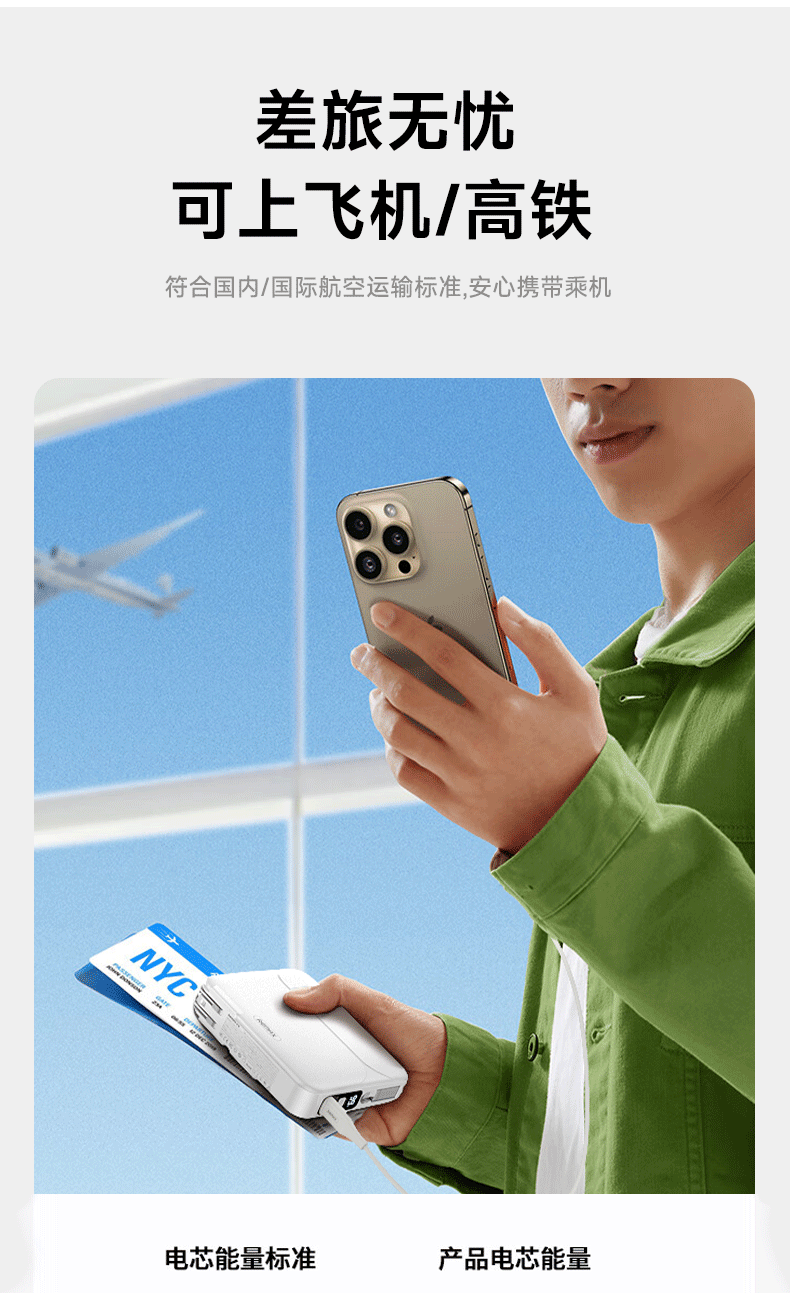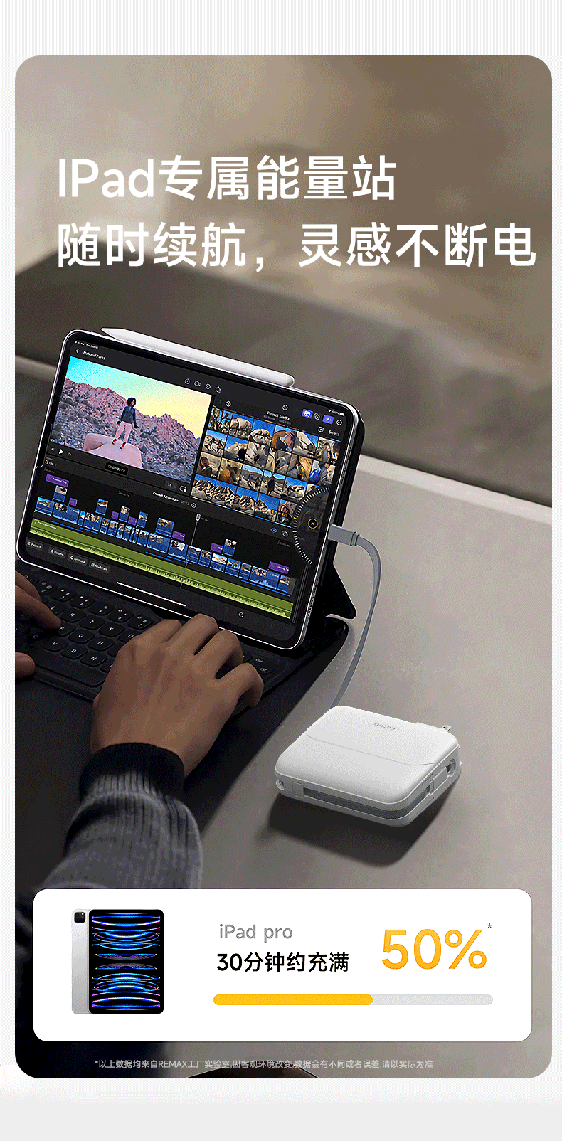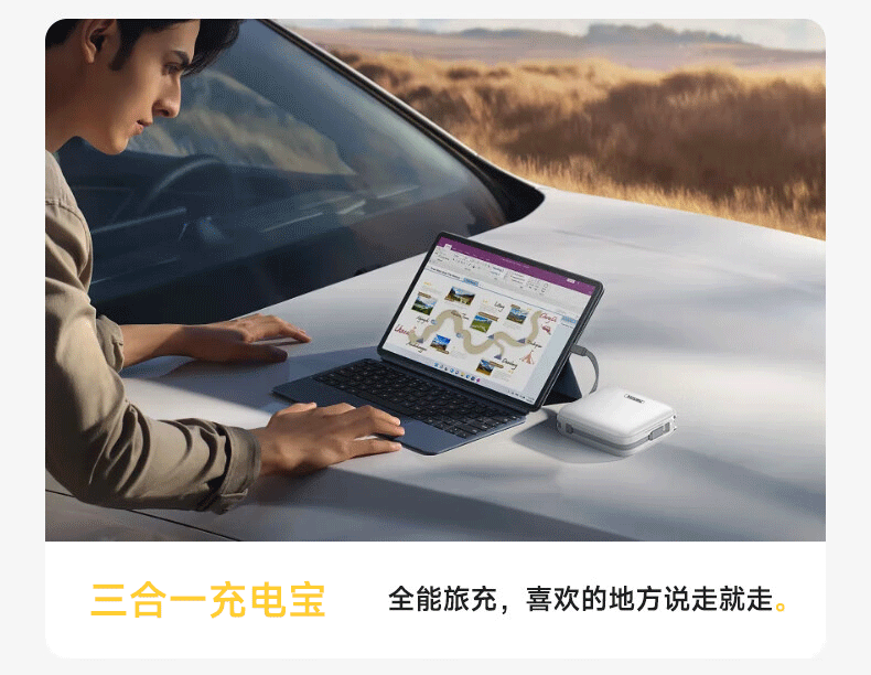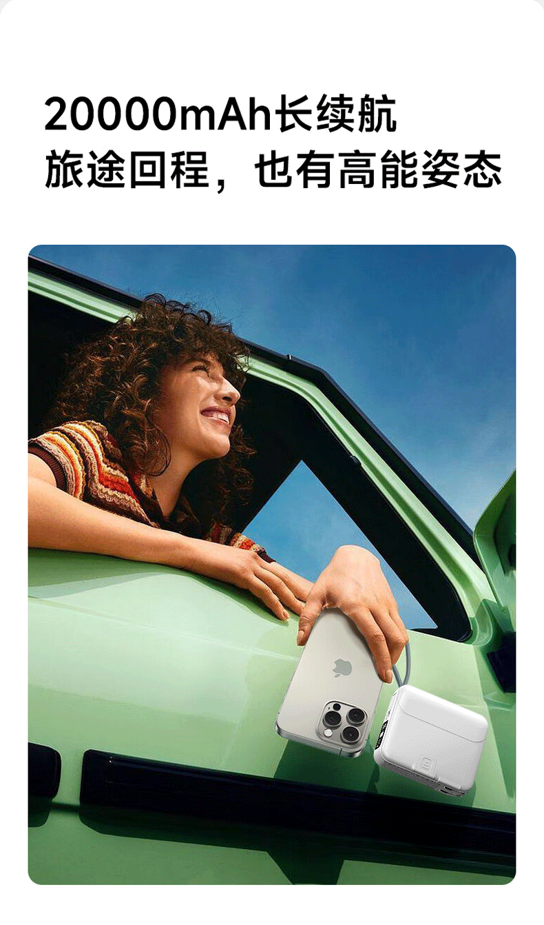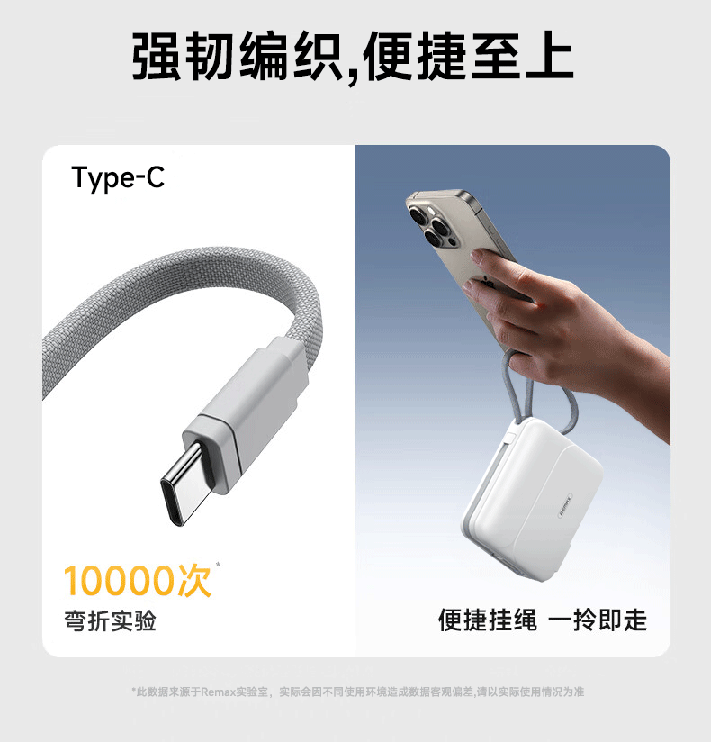 remax睿量【3C认证】三合一充电宝20000毫安时自带双线+AC插头27W快充移动电源适用苹果16华为可上飞机