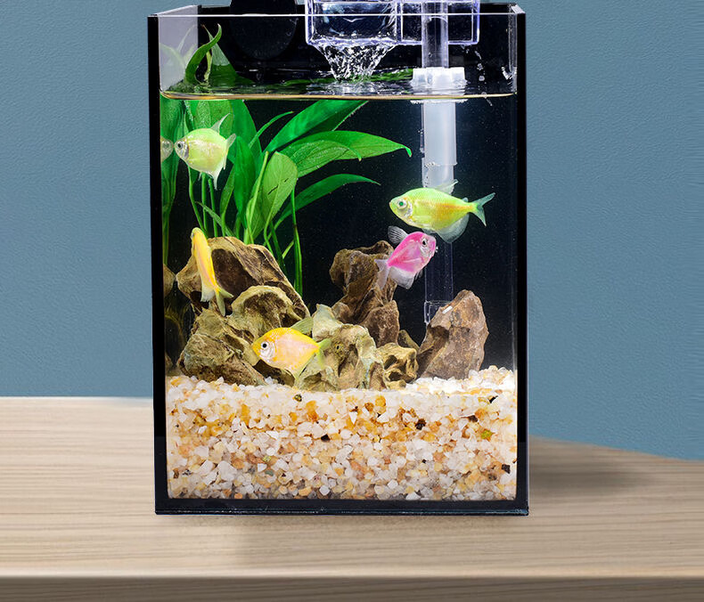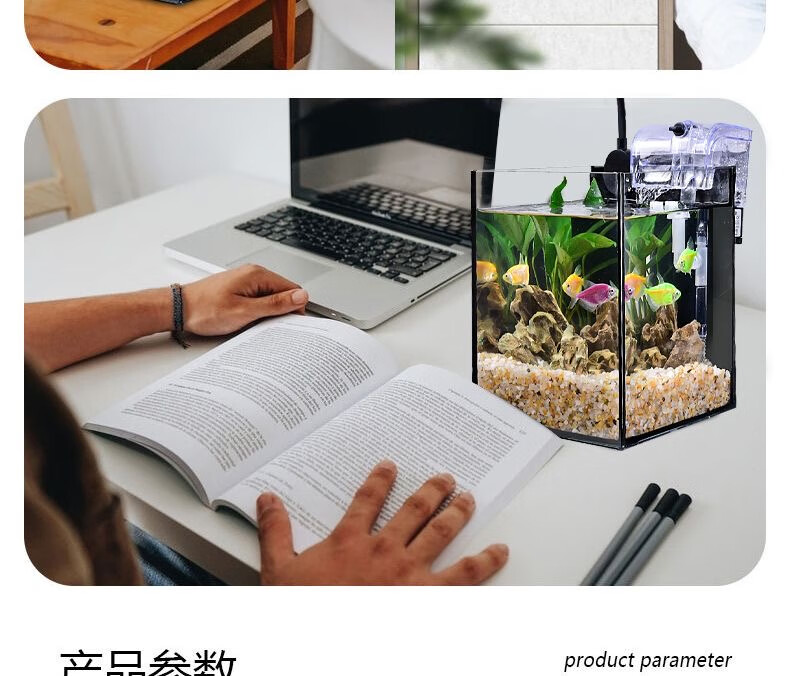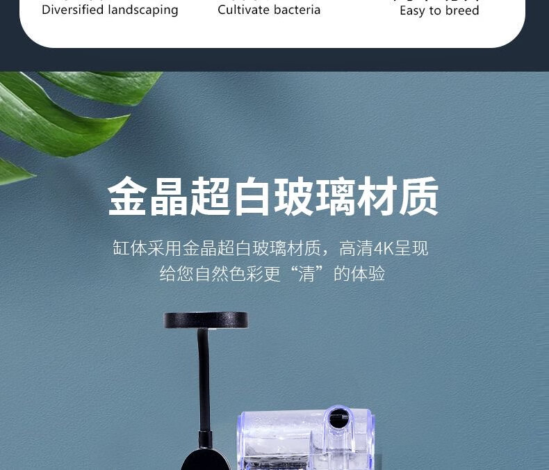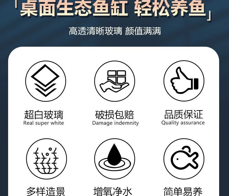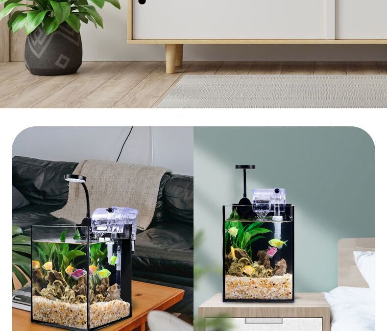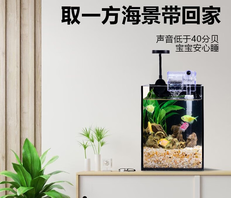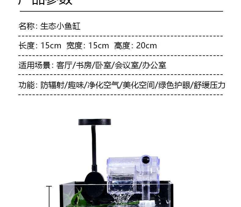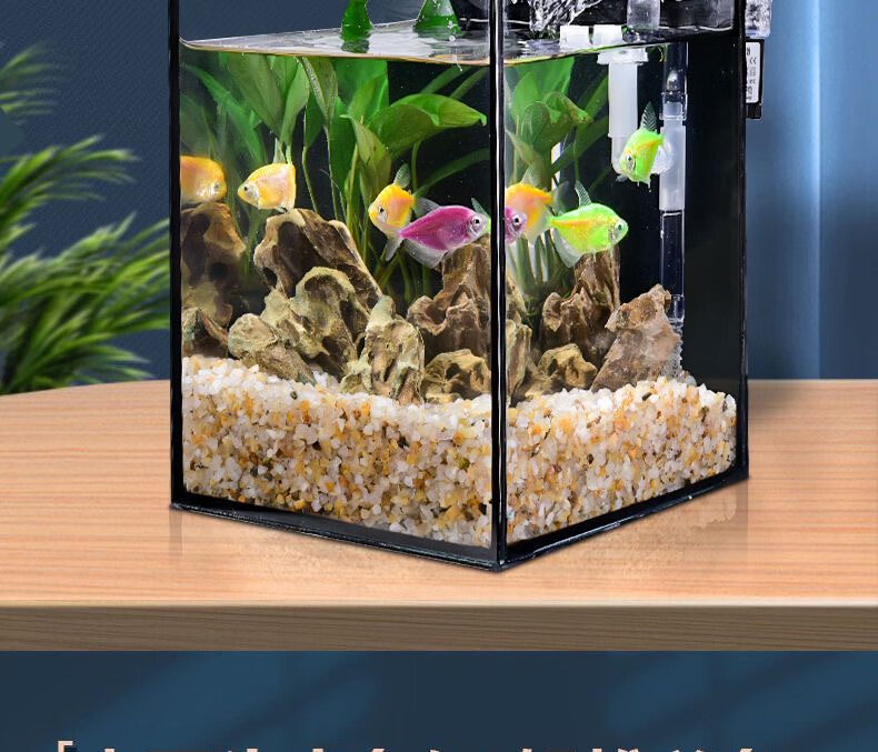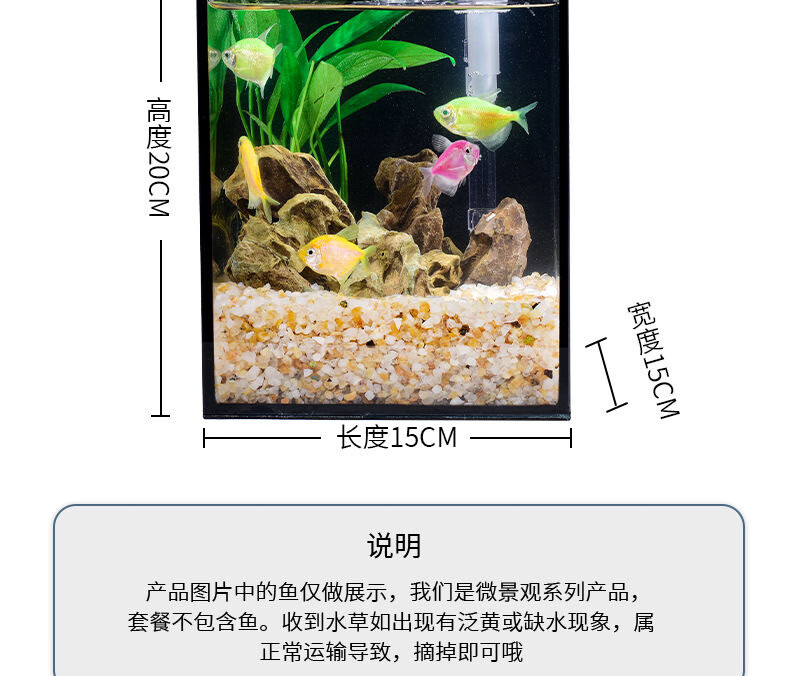 金晶超白玻璃桌面鱼缸小型家用办公室生态懒人全套造景迷你水草缸 裸缸+防滑垫 15*15*20