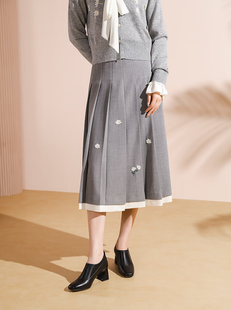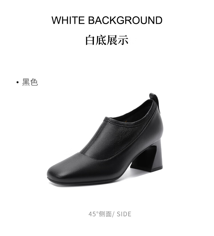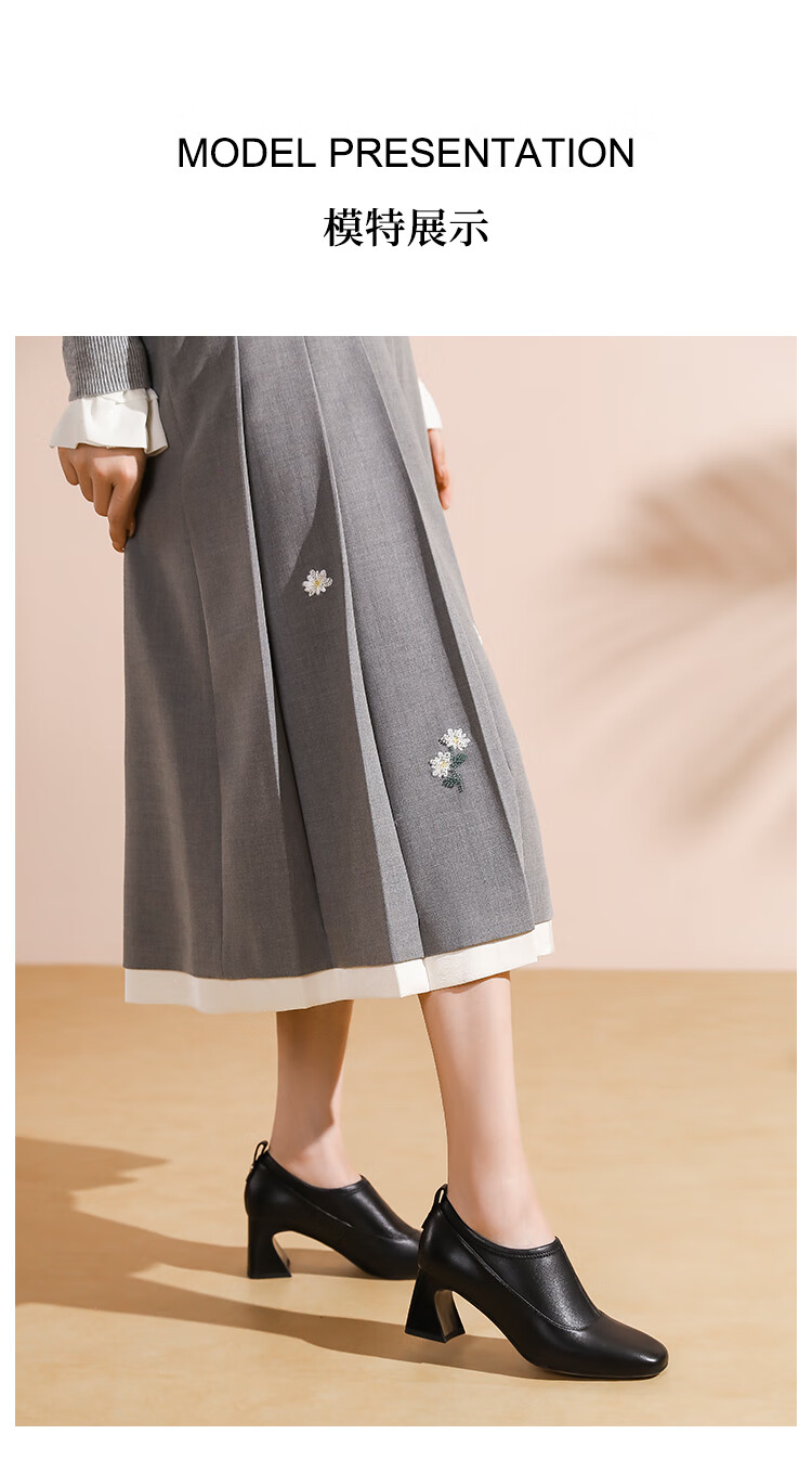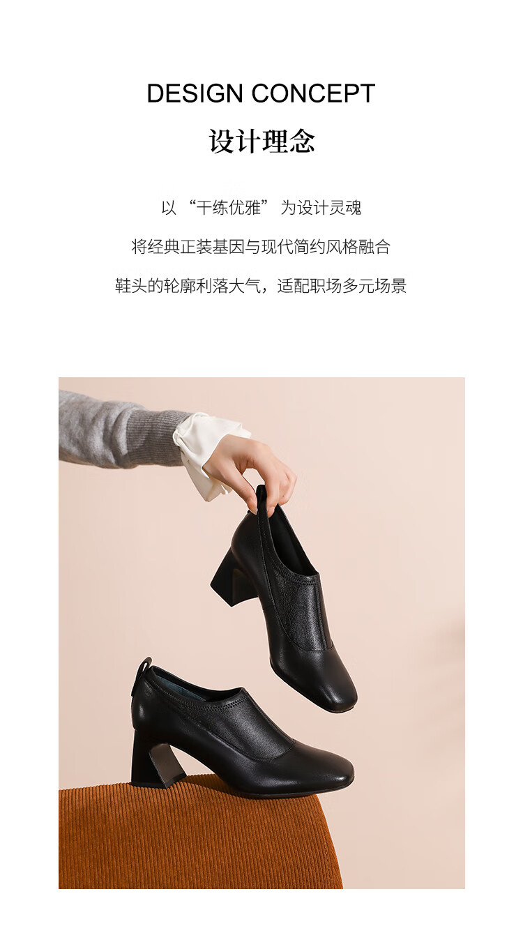 哈森复古方头粗跟羊皮女鞋2025新款时尚单靴高跟深口单鞋女HHL259030 黑色 羊皮革 34