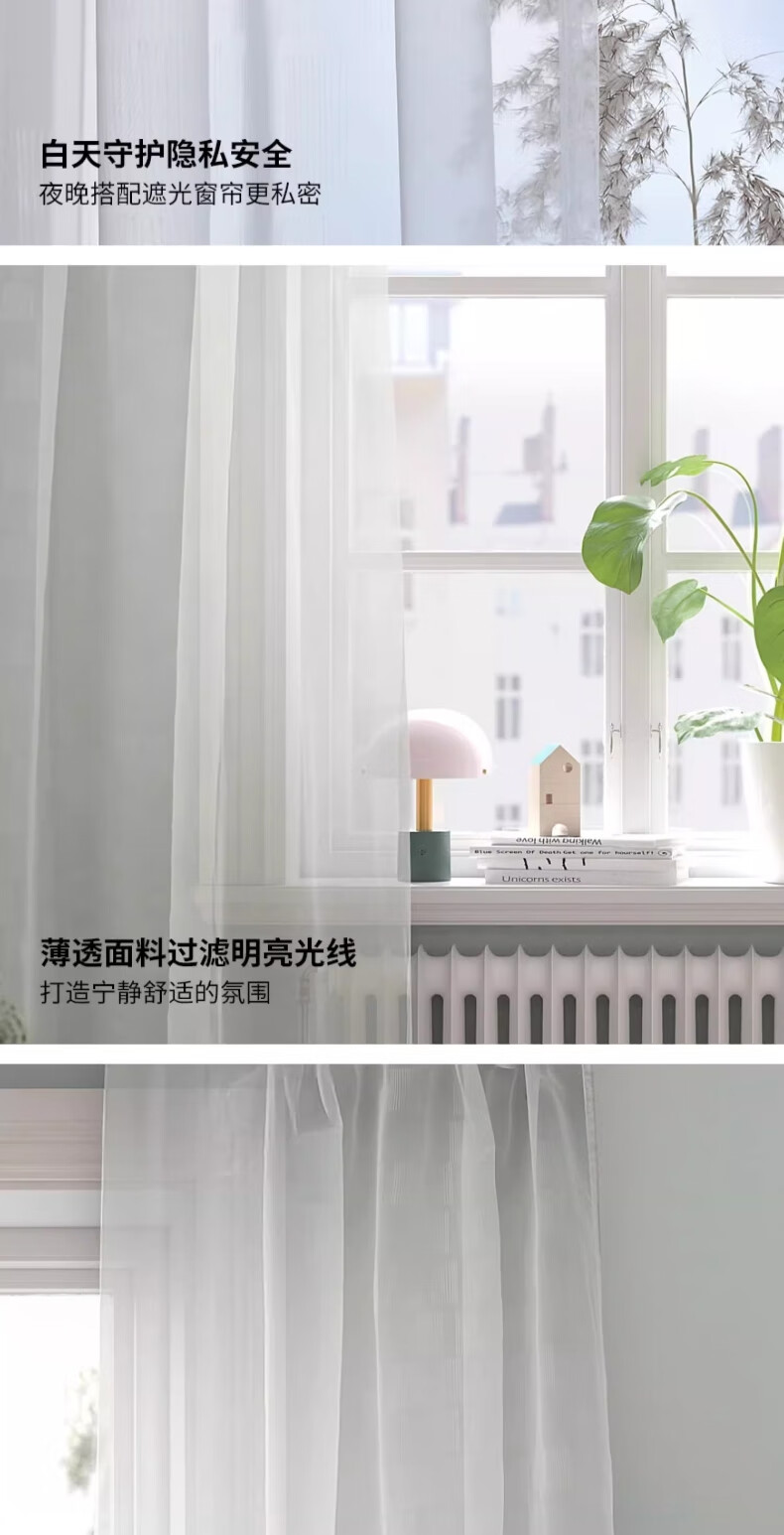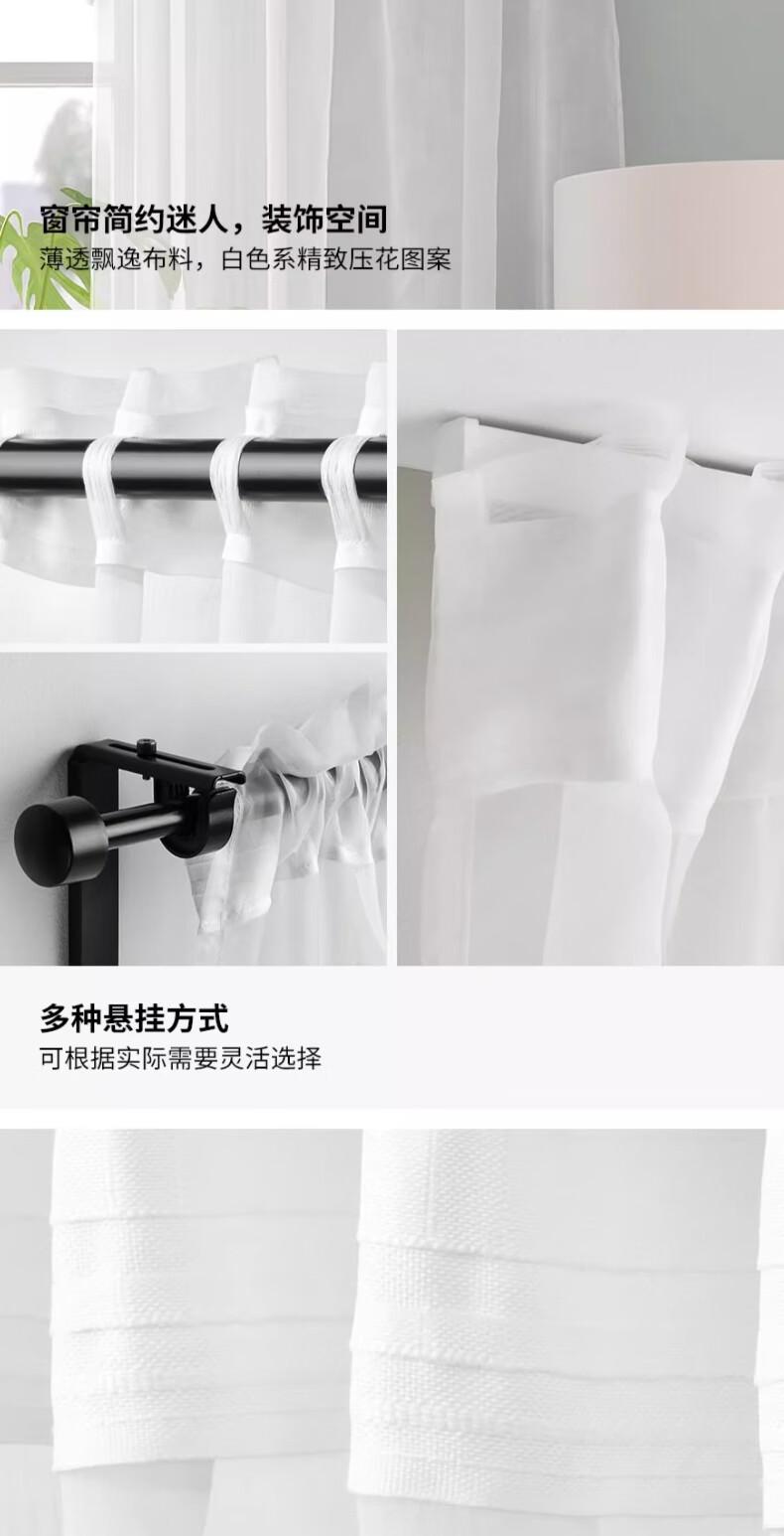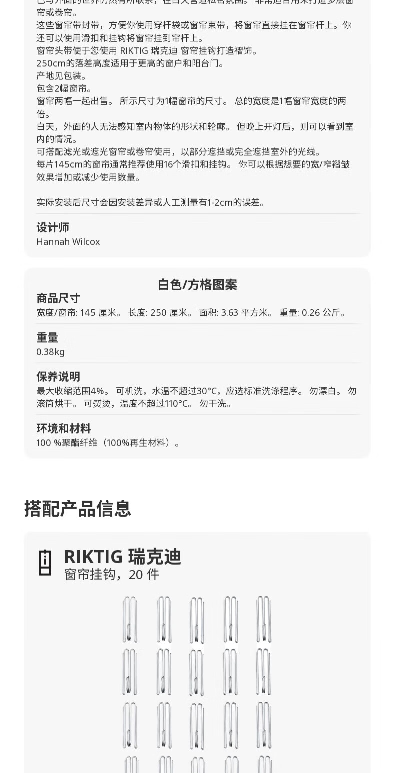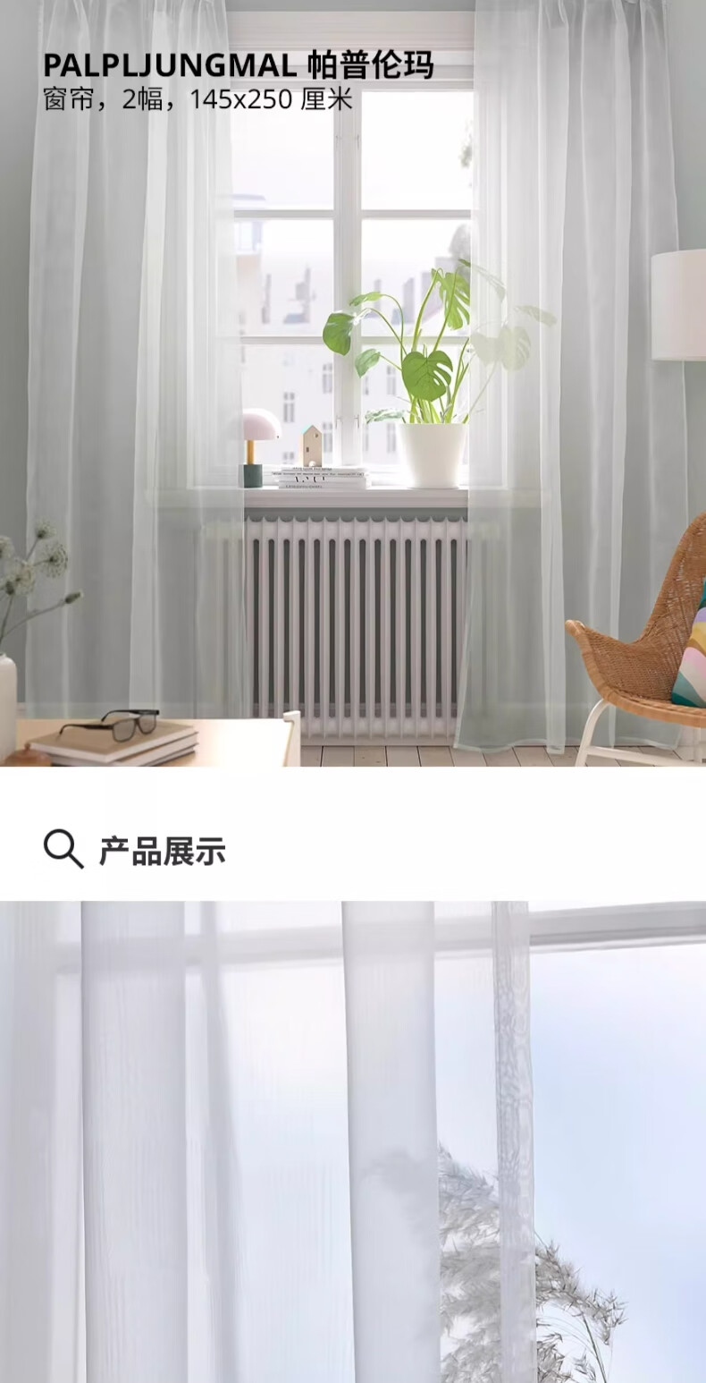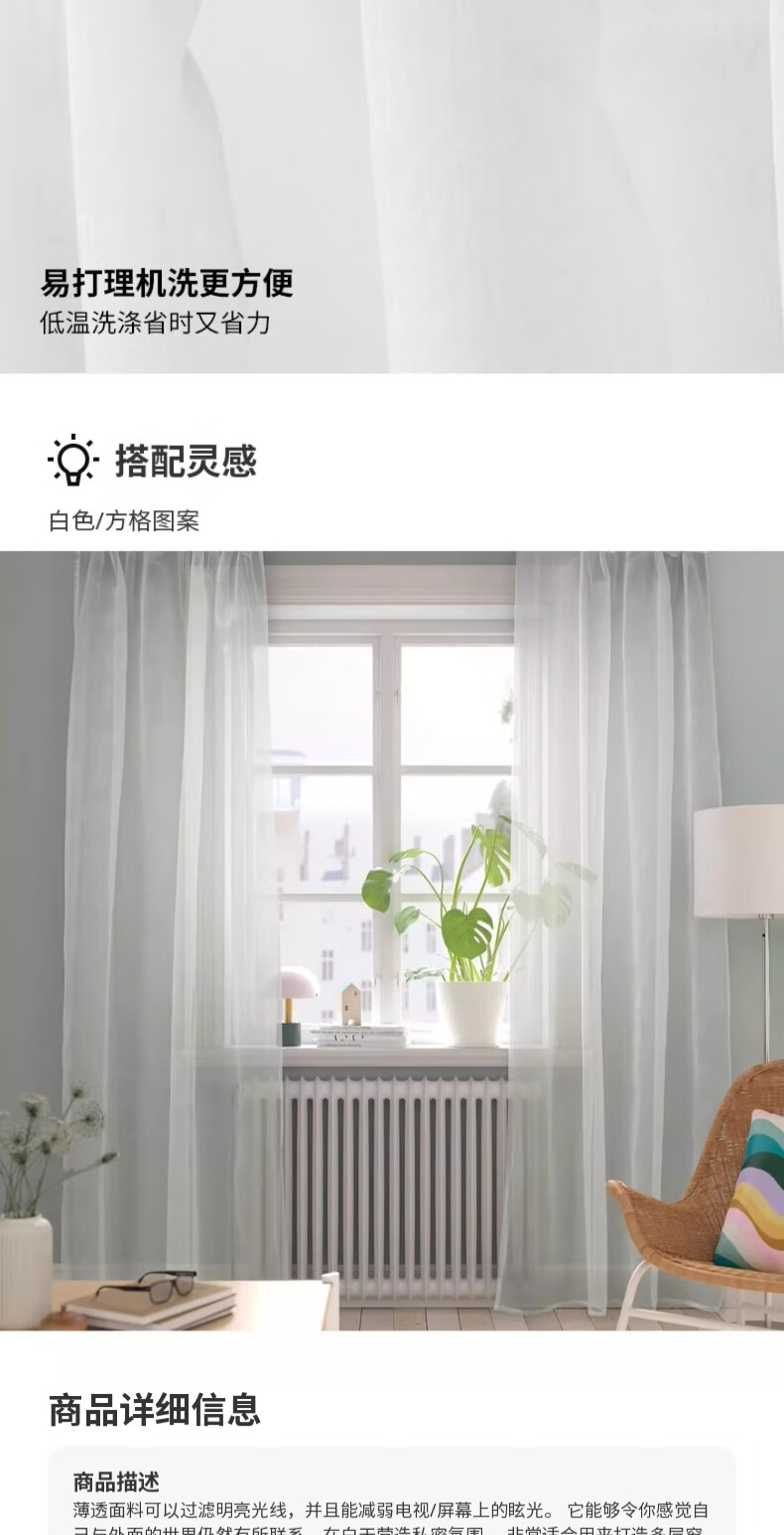 宜家(IKEA)PALPLJUNGMAL帕普伦玛窗帘滤光遮光窗帘可机洗 白色/方格图案