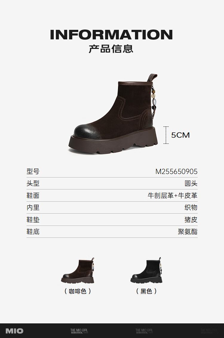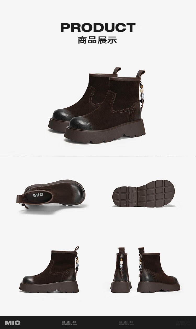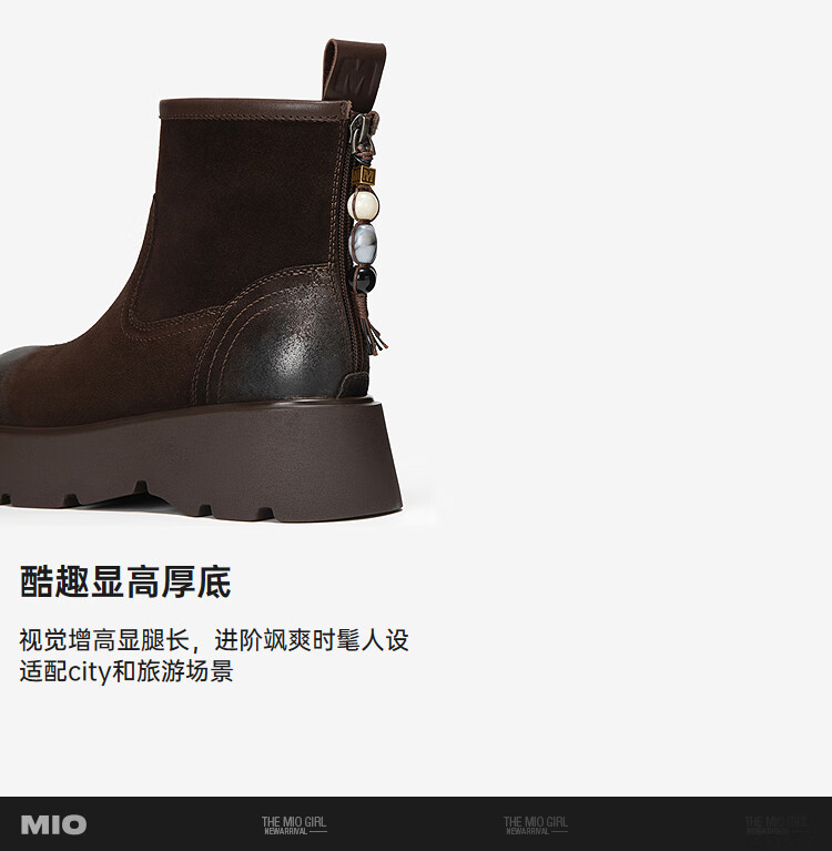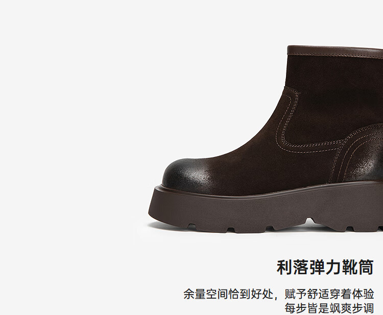 MIO米奥弹力靴2025冬季新款圆头厚底增高袜靴瘦瘦靴中筒百搭靴子 咖啡色 39 (245mm)