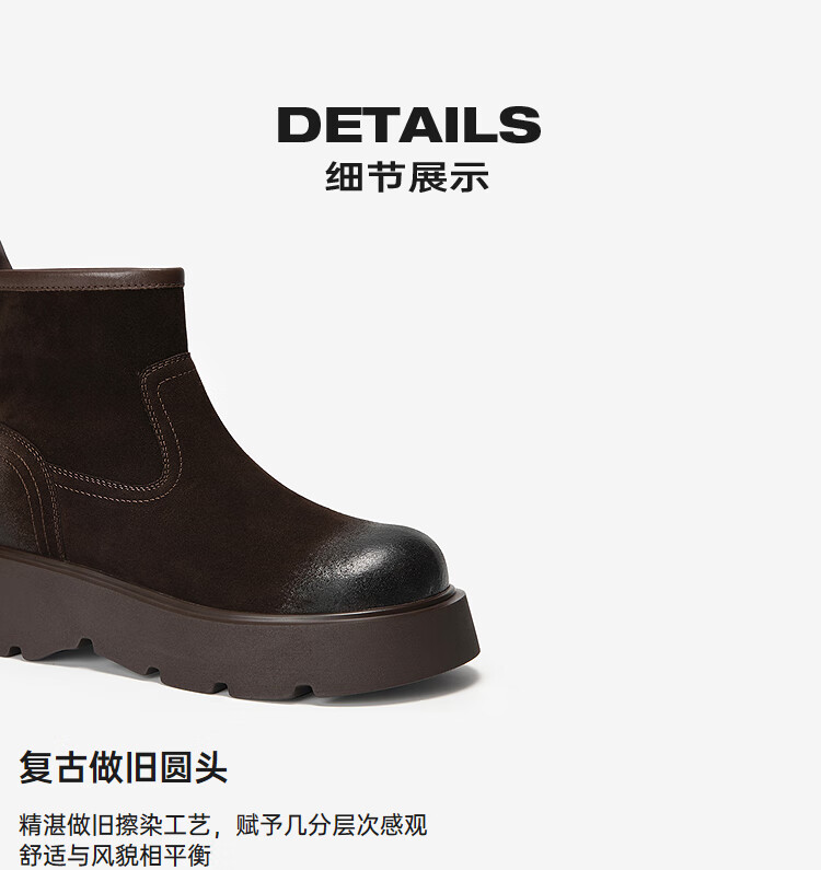 莱尔斯丹复古真皮增高踝靴女2025秋季新款经典百搭时装靴粗跟女靴6T57602 松露黑 BKL 37