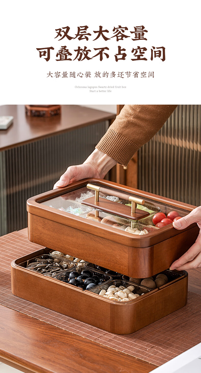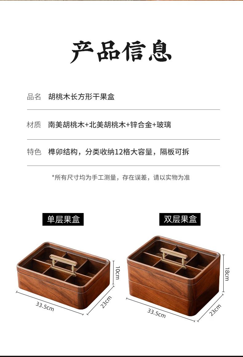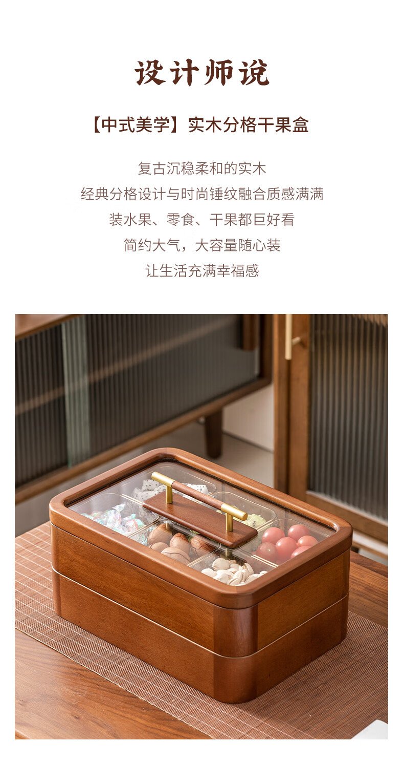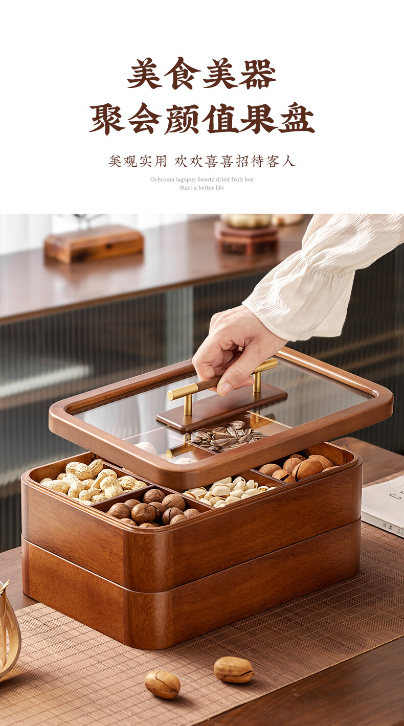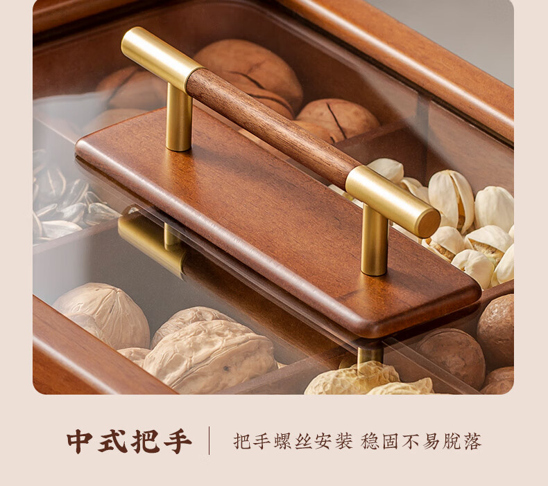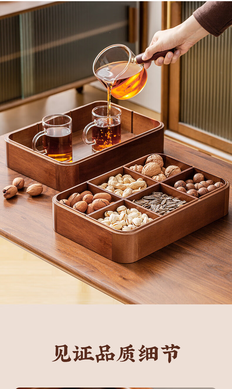 木雅轩干果盘实木干果盒瓜子糖果盘分格水果盘客厅干果收纳盒果盘零食盘 单层干果盘+6玻璃碗