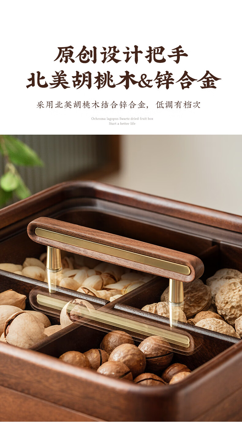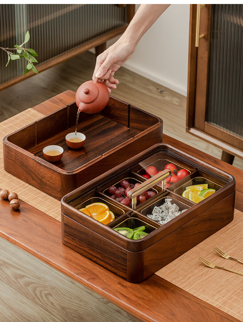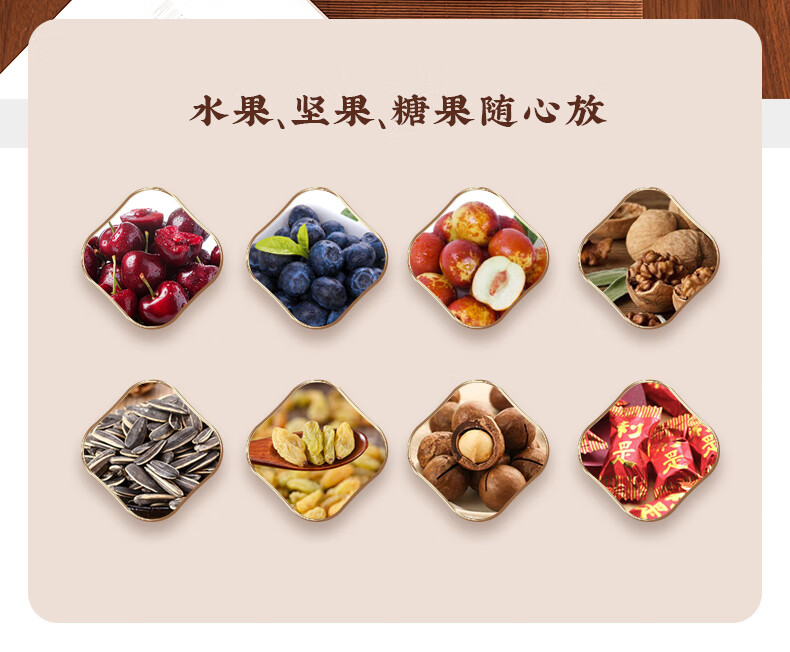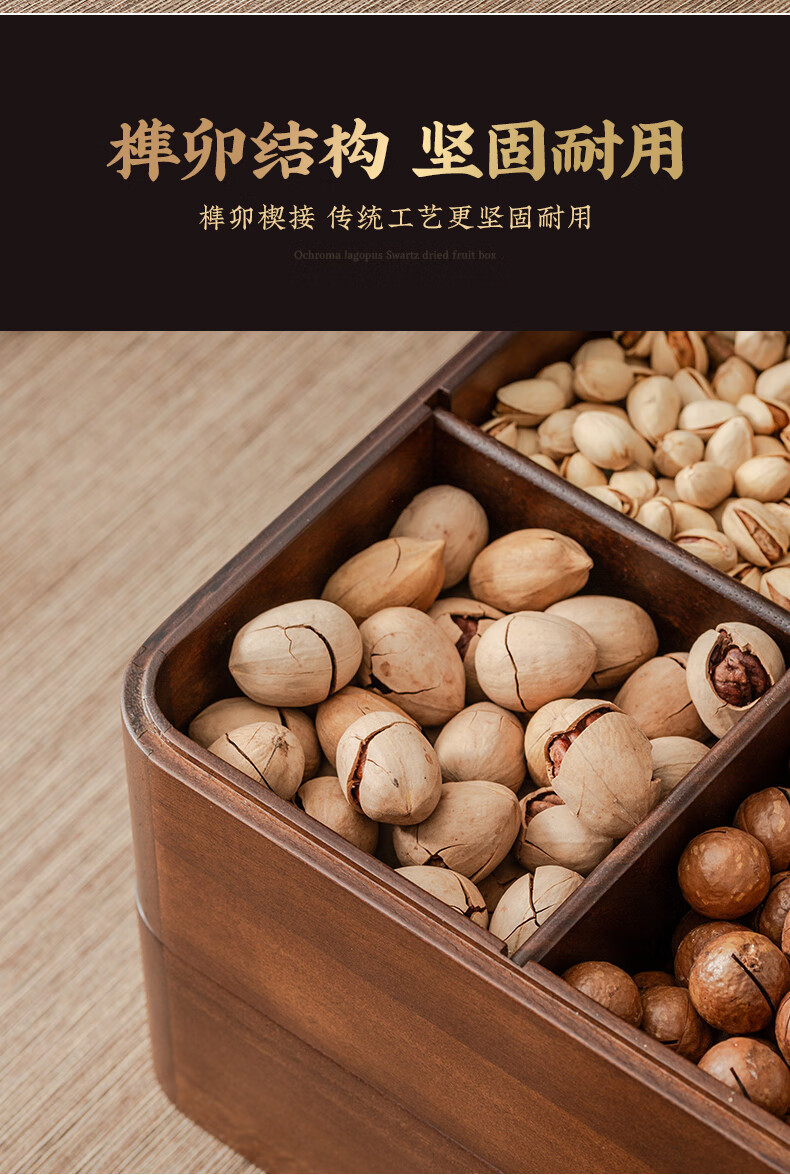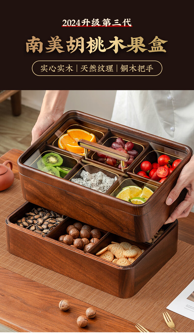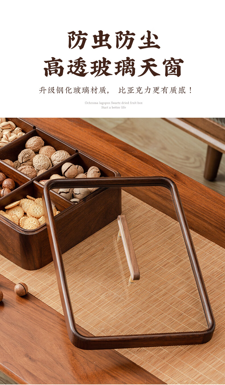 木雅轩干果盘实木干果盒瓜子糖果盘分格水果盘客厅干果收纳盒果盘零食盘 单层干果盘+6玻璃碗