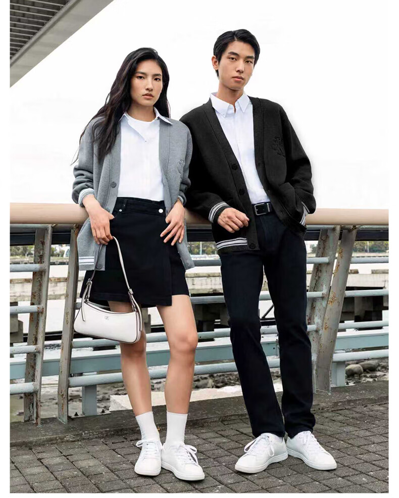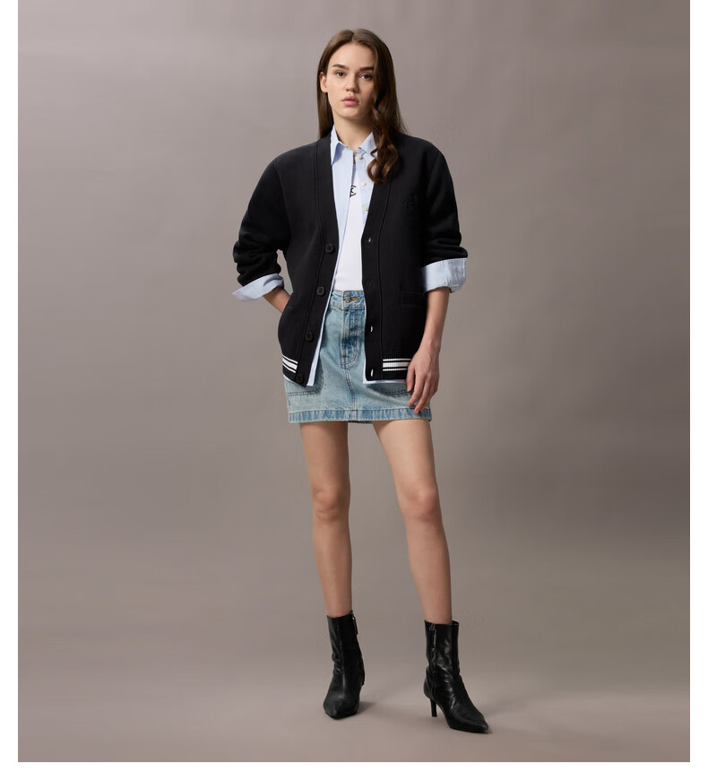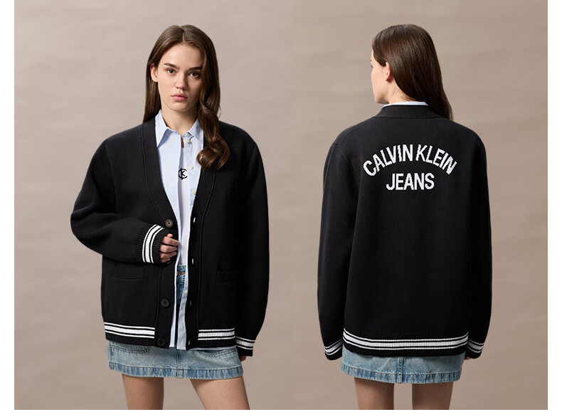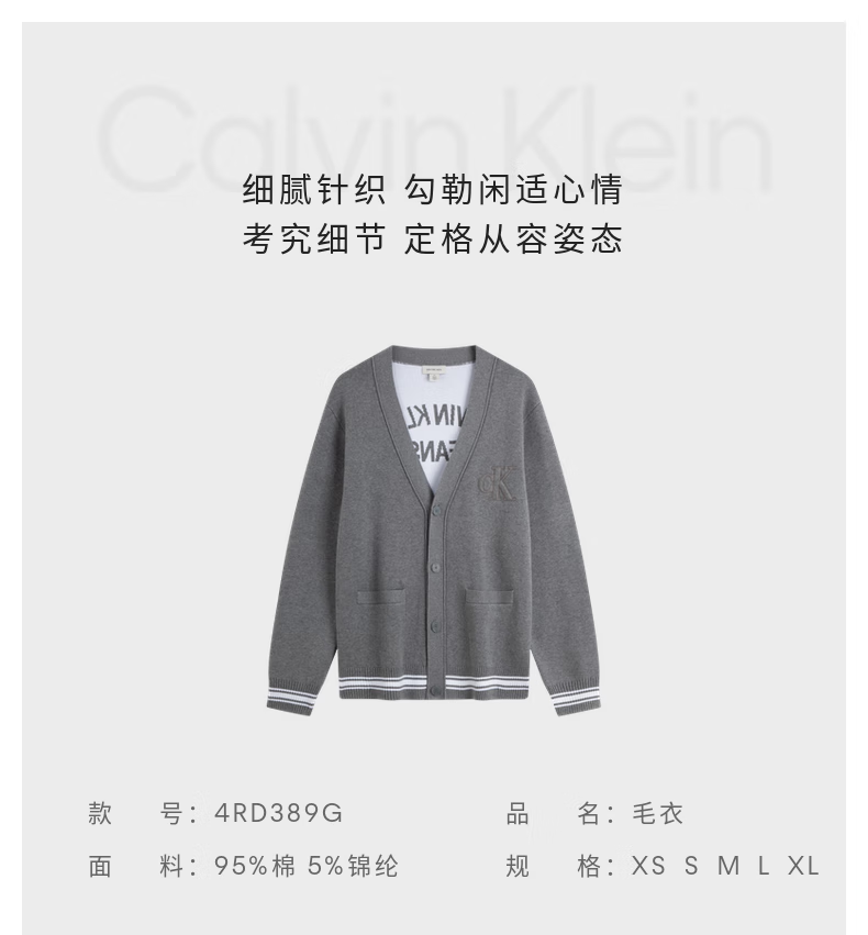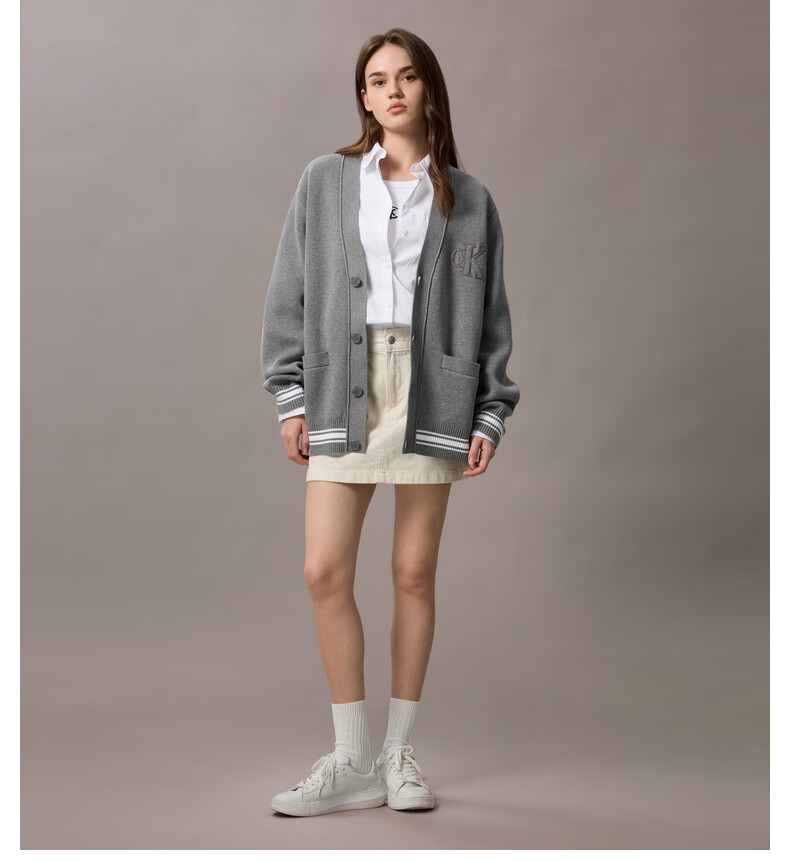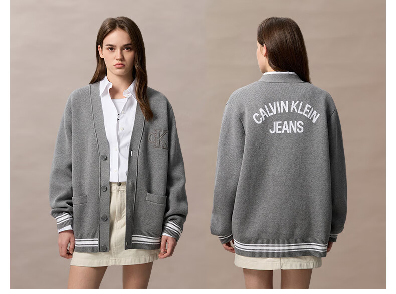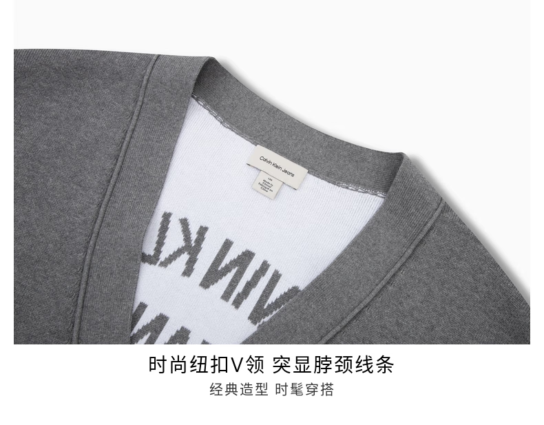 Calvin KleinJeans25秋新款女士休闲复古学院风ck提花纽扣V领针织开衫4RD389G P7E-英雄灰 XS