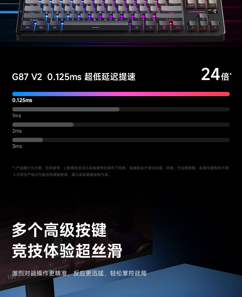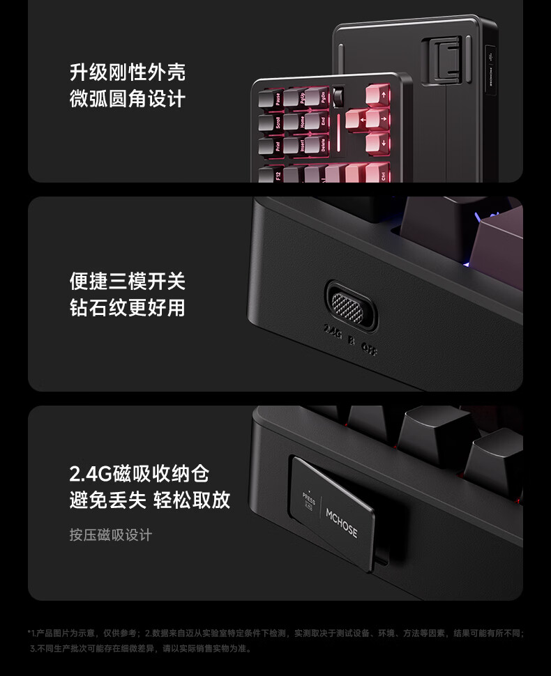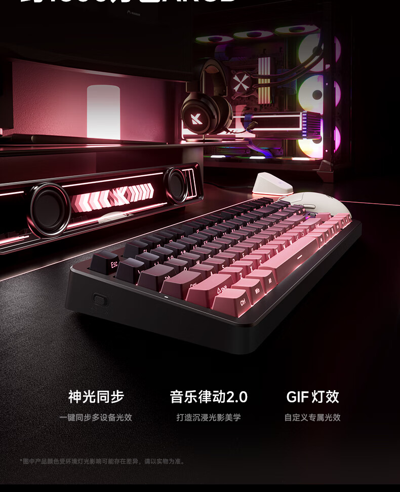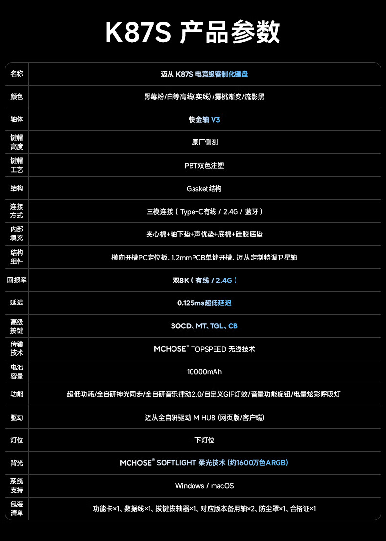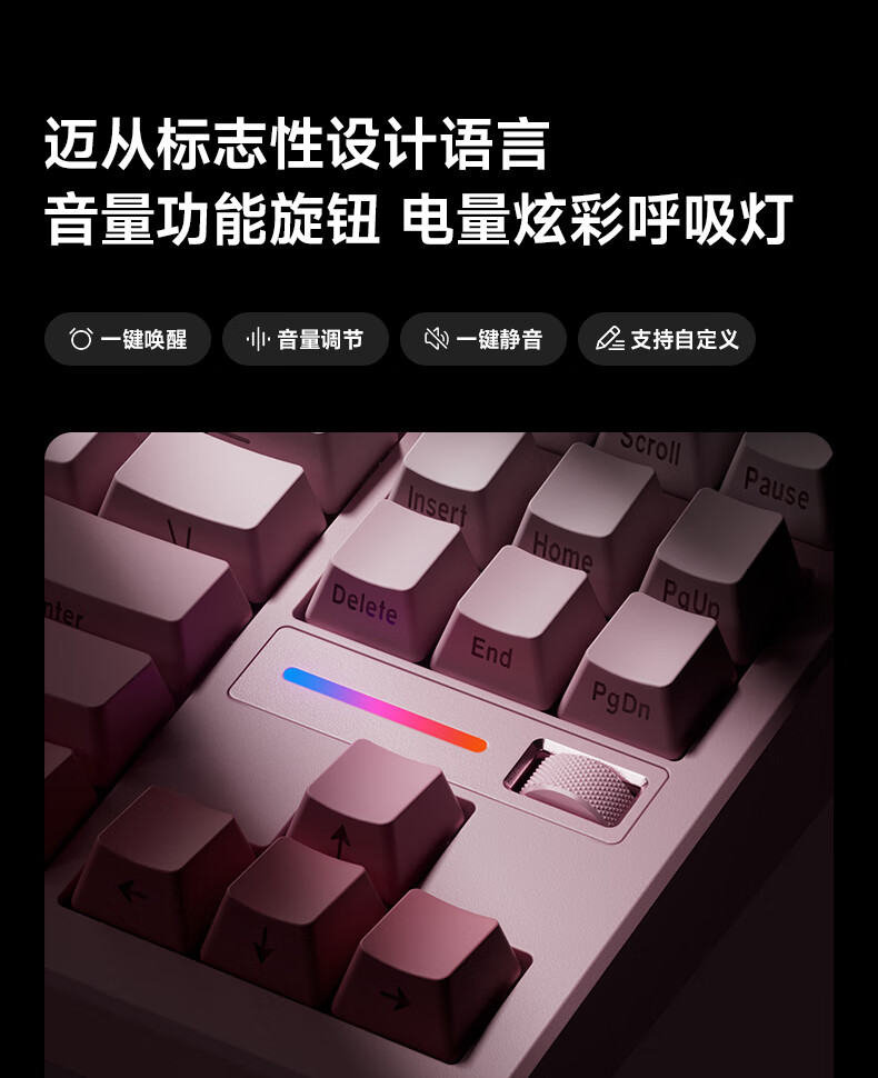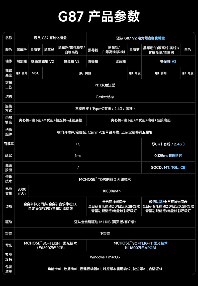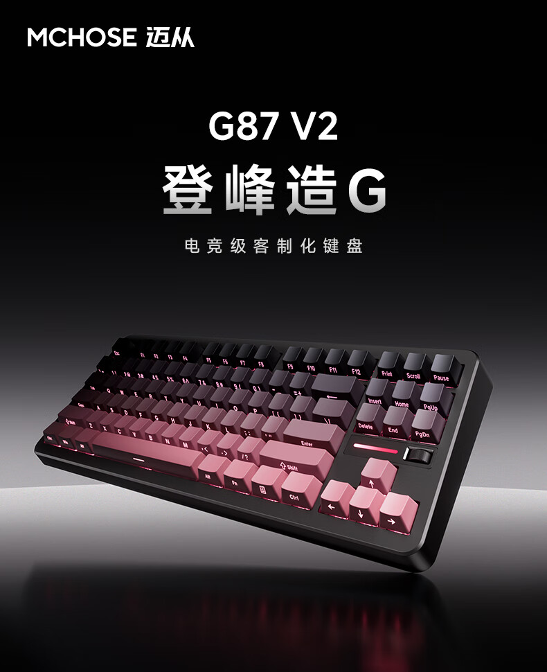 迈从(MCHOSE)G87 V2/K87S旋钮无线机械键盘电竞游戏客制化有线/蓝牙三模gasket结构全键热插拔办公 G87 黑莓粉渐变侧刻 快金轴V2