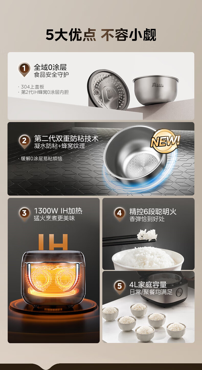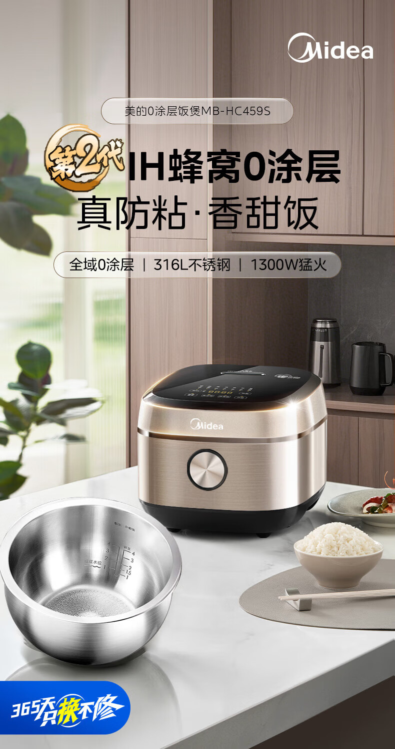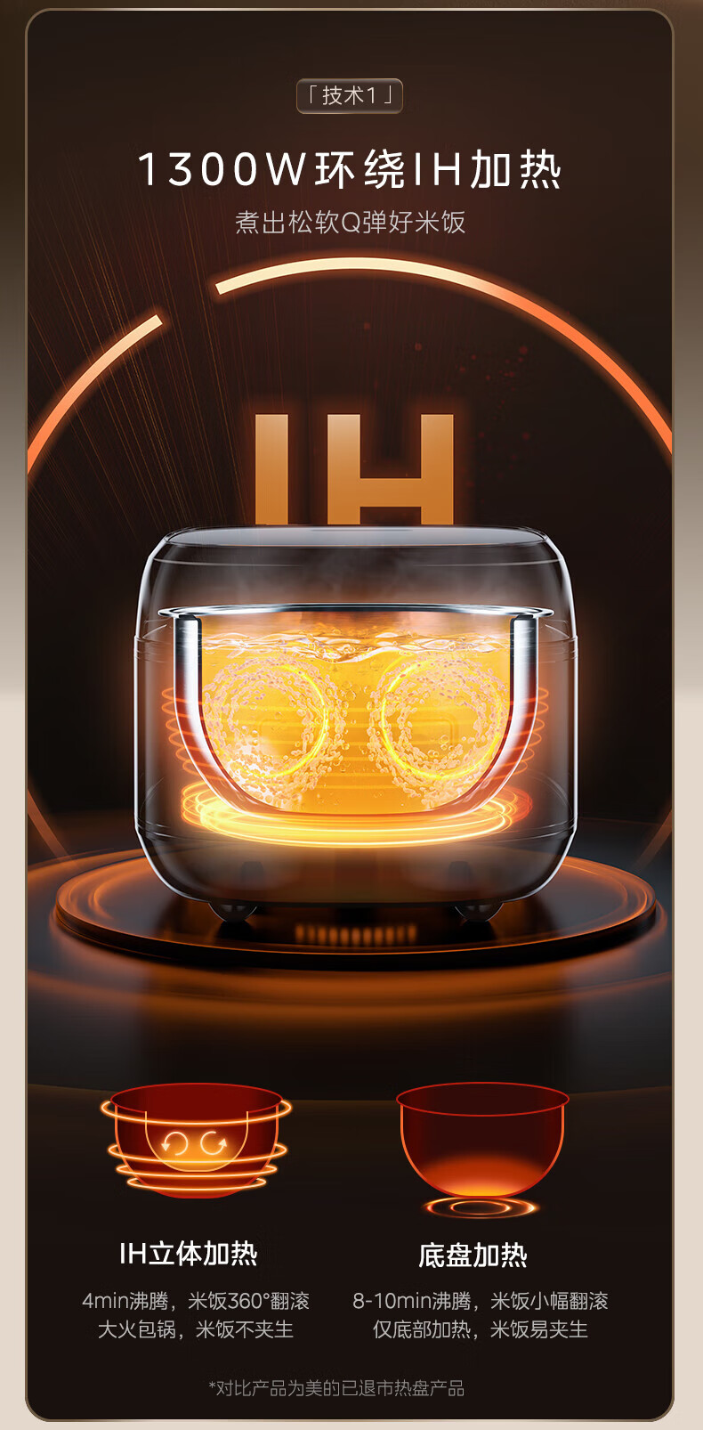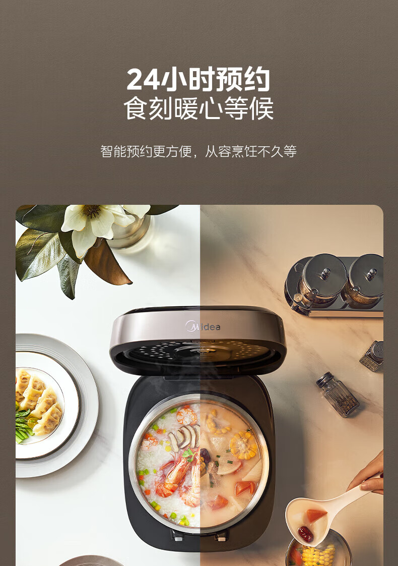 美的(Midea)电饭煲IH电磁加热3-8-10人电饭锅家用灶火包锅小米粥大容量4升5升一级能效智能预约 【5L容量】IH大火力MB-FB50P501 5L