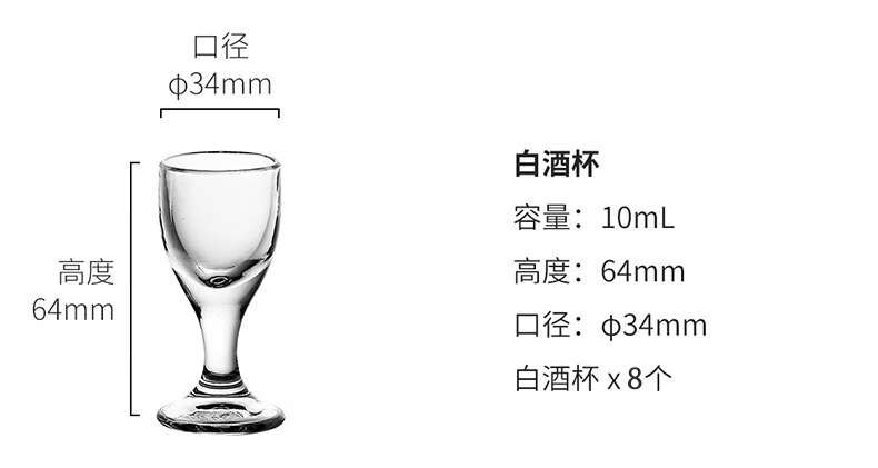 CLITON白酒杯分酒器套装一口杯高脚玻璃小酒杯带把分酒壶烈酒杯6壶8杯