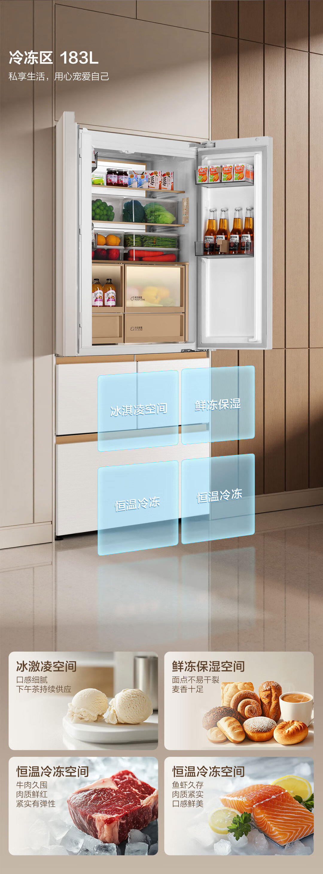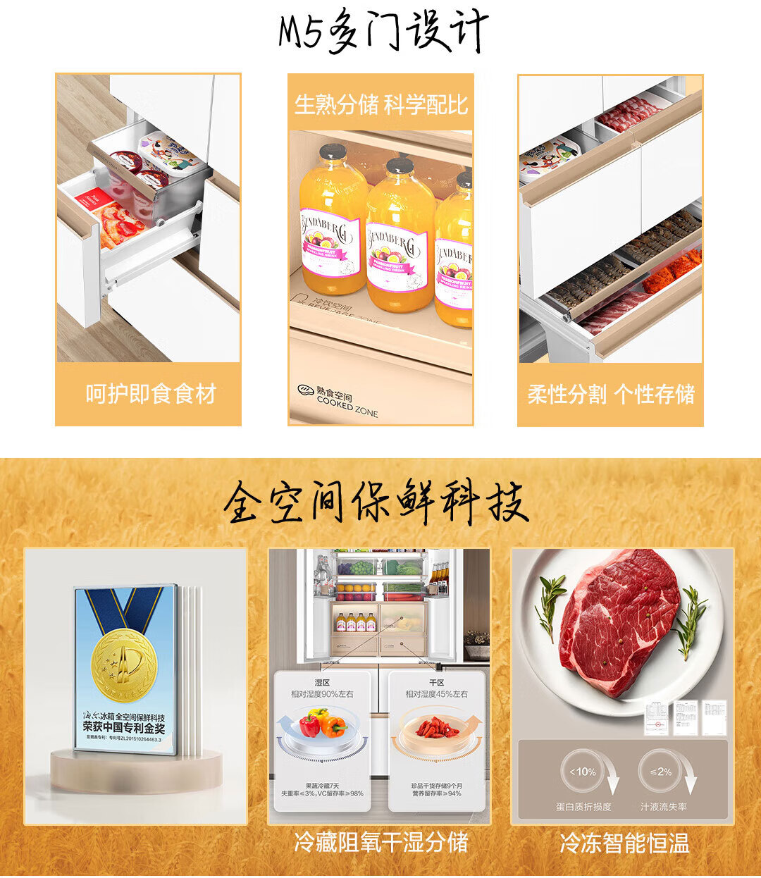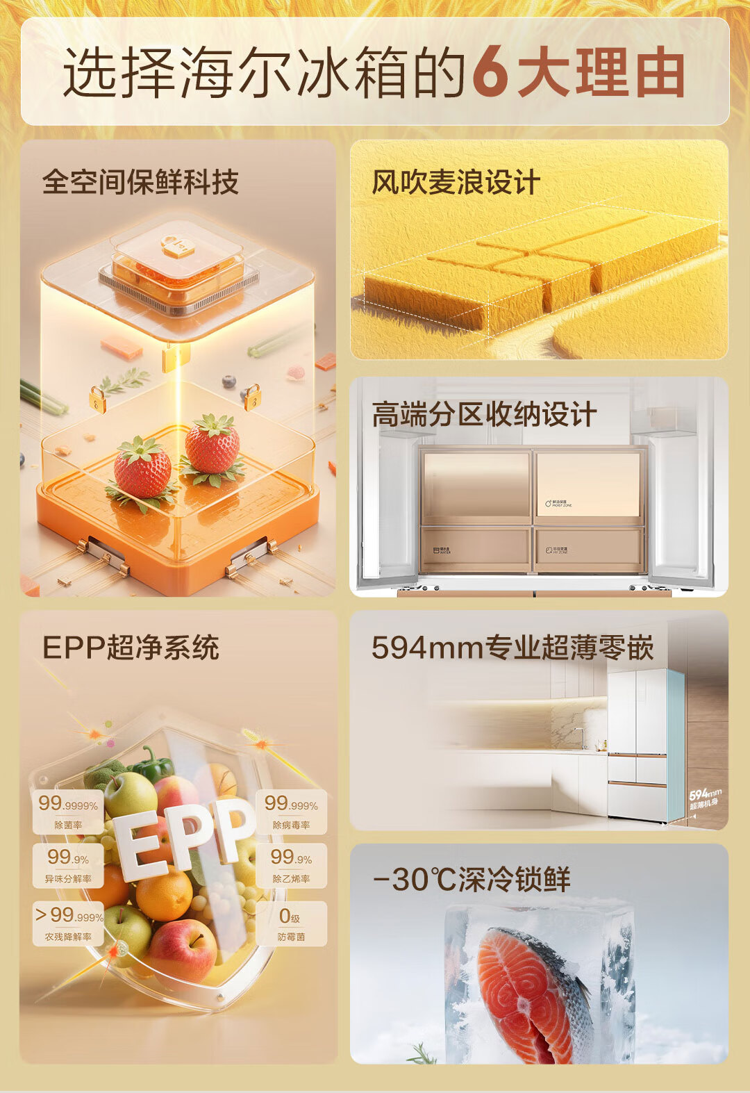 海尔(Haier)512升麦浪全空间保鲜594mm超薄零嵌多门一级变频风冷无霜阻氧干湿分储除菌家用电冰箱国家补贴20% BCD-512WGHMD1BWLU1