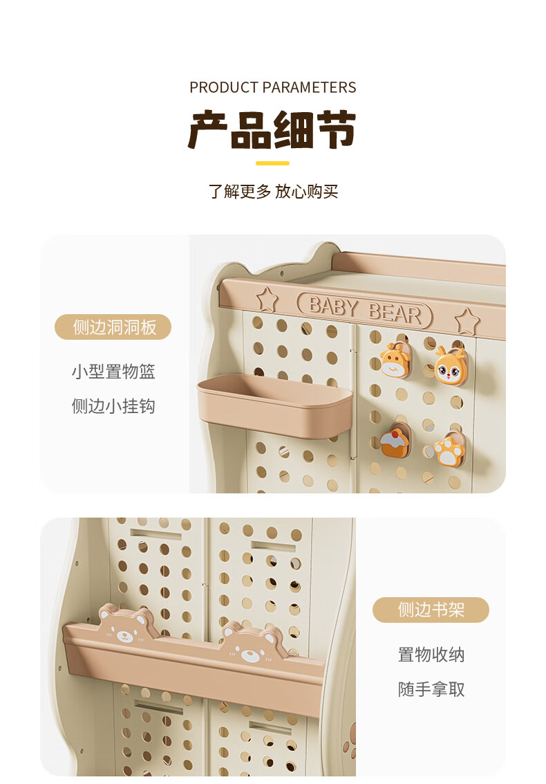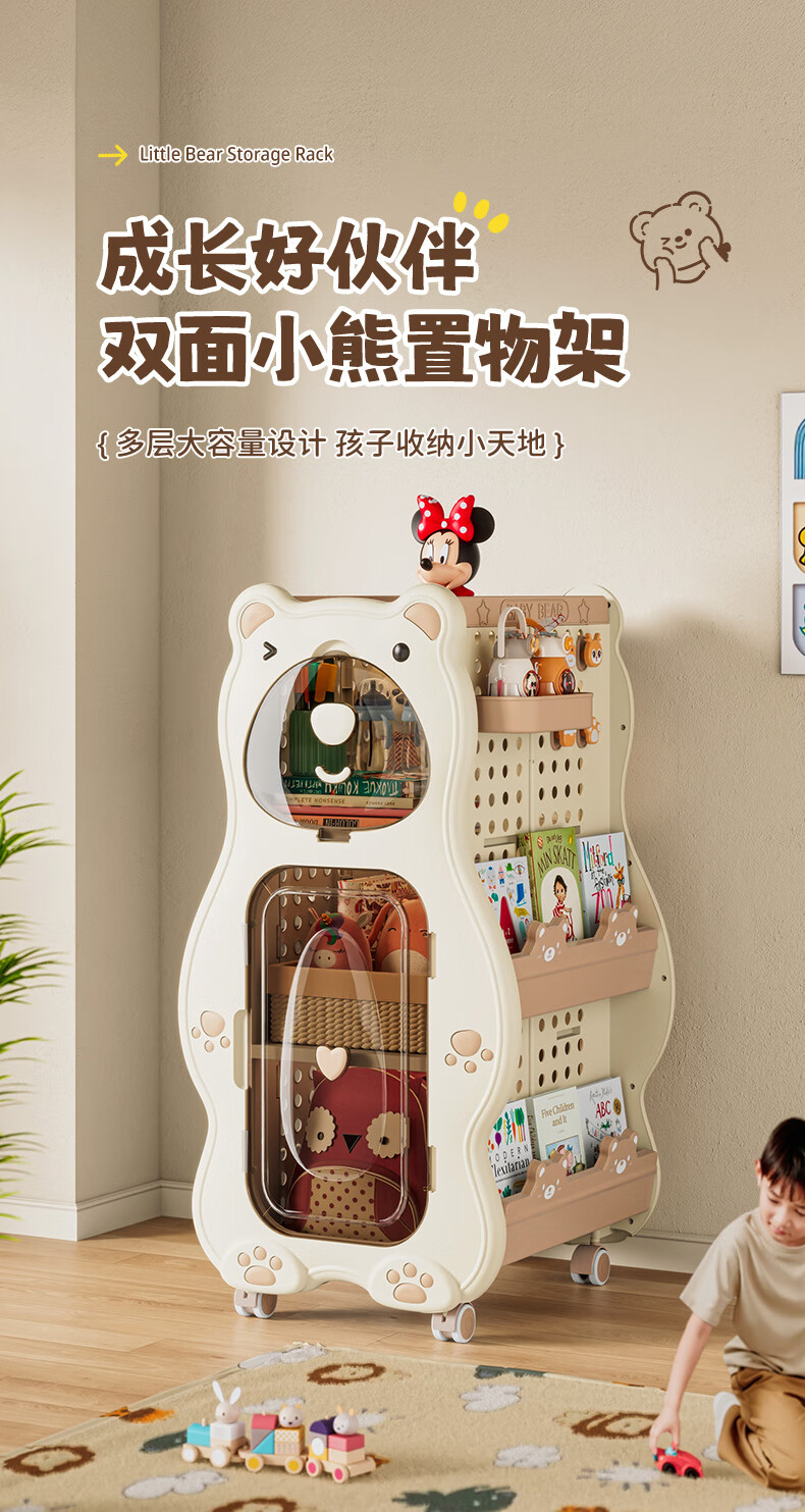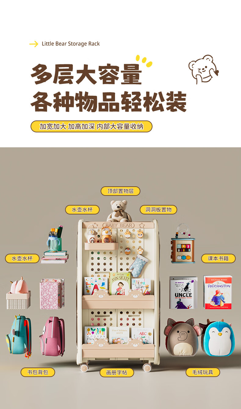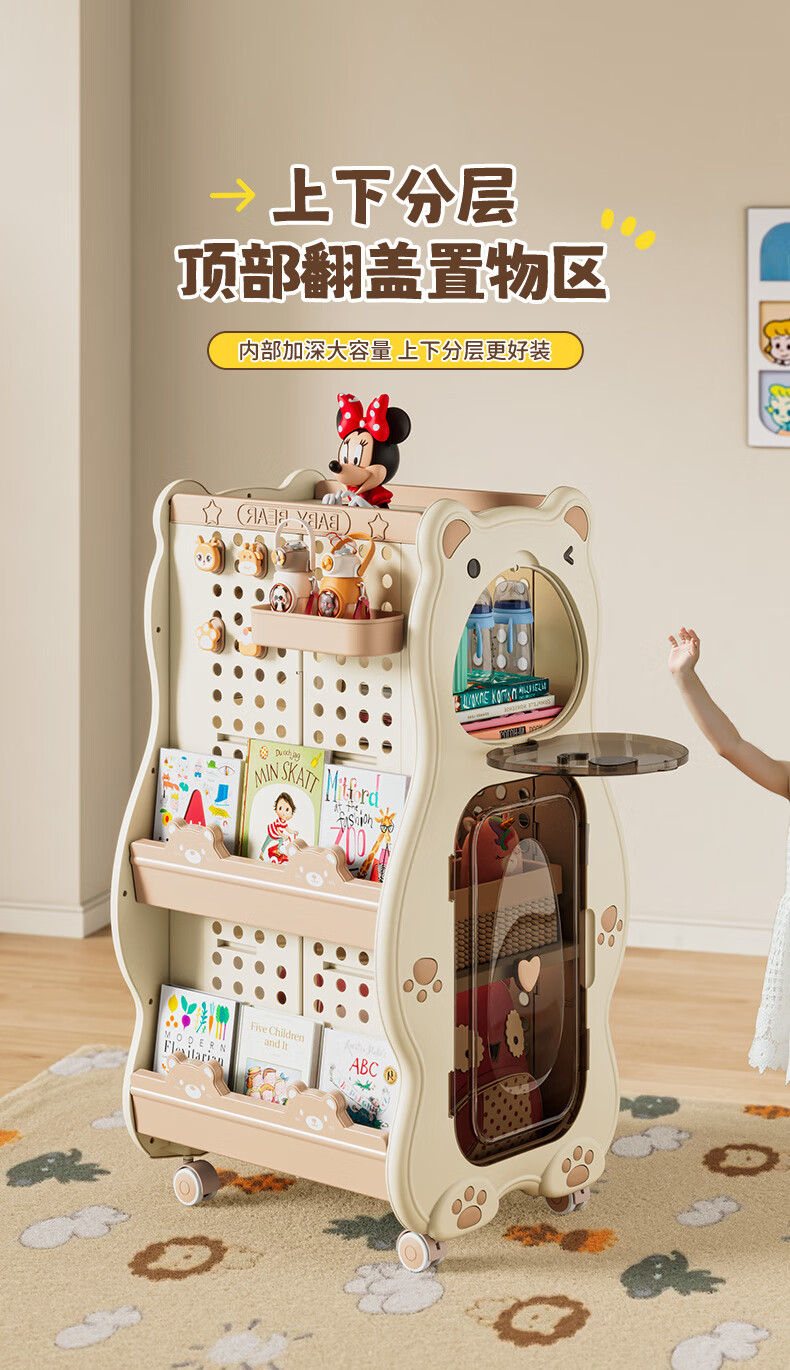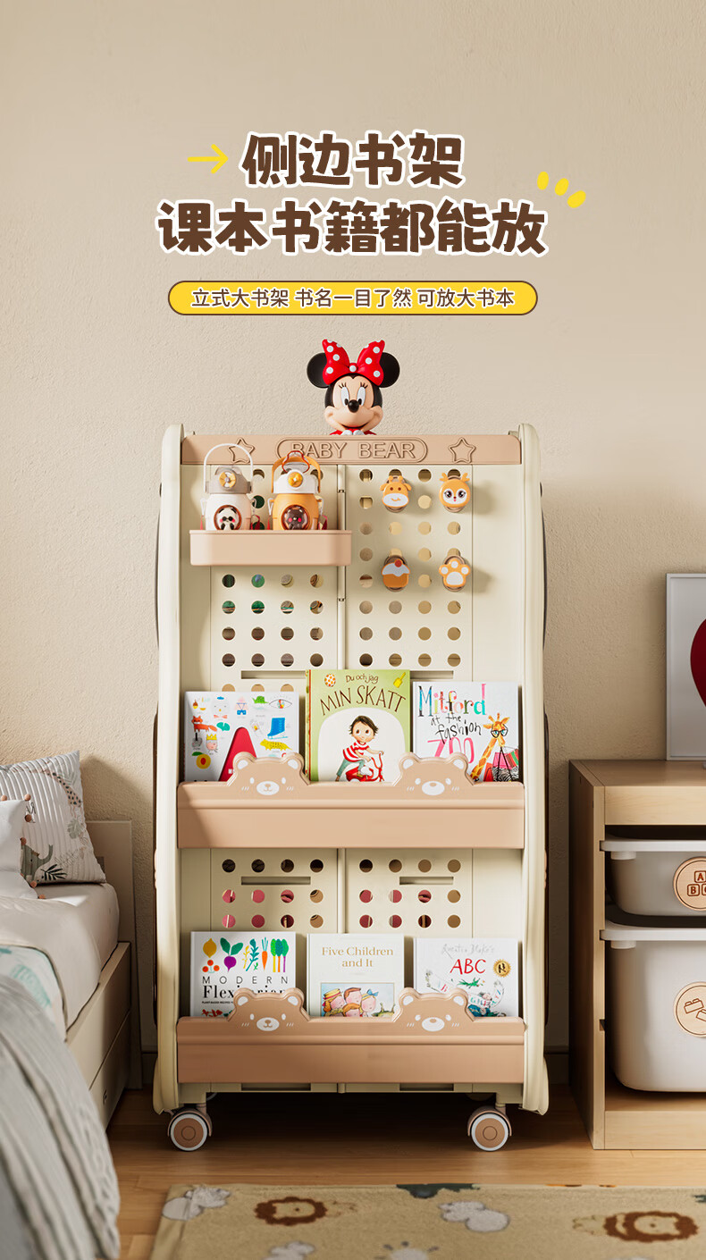 BABY VIEW儿童玩具收纳架零食置物柜多层绘本书架家用可移动整理架 暖白色