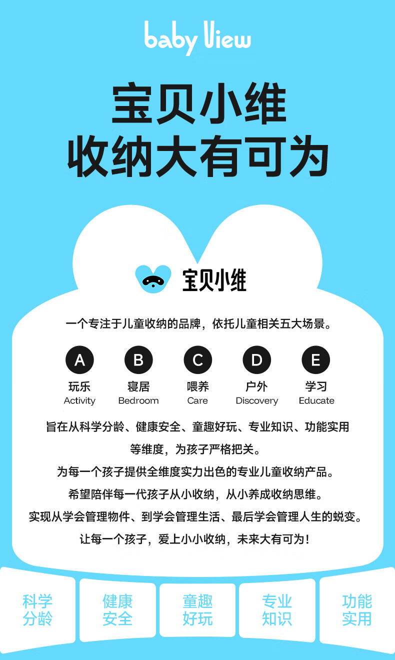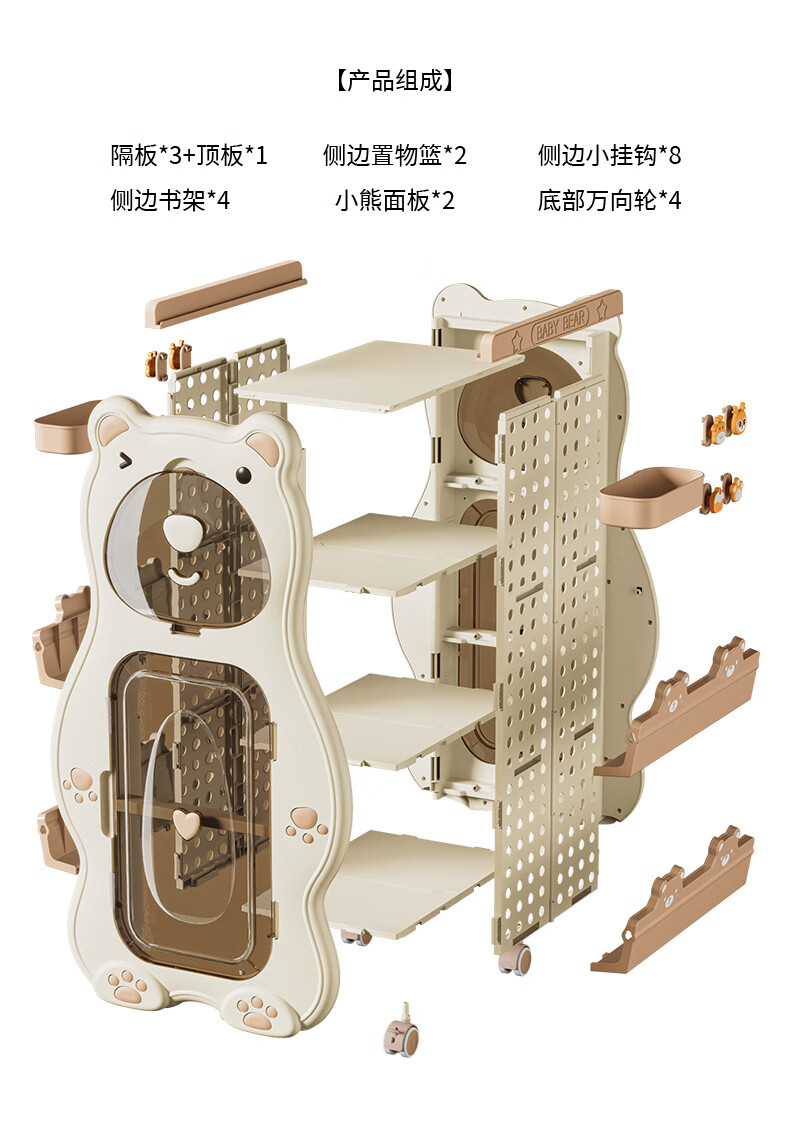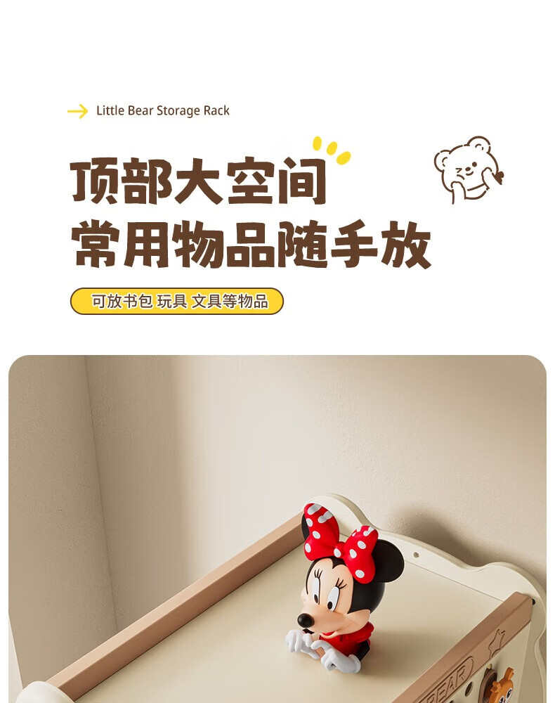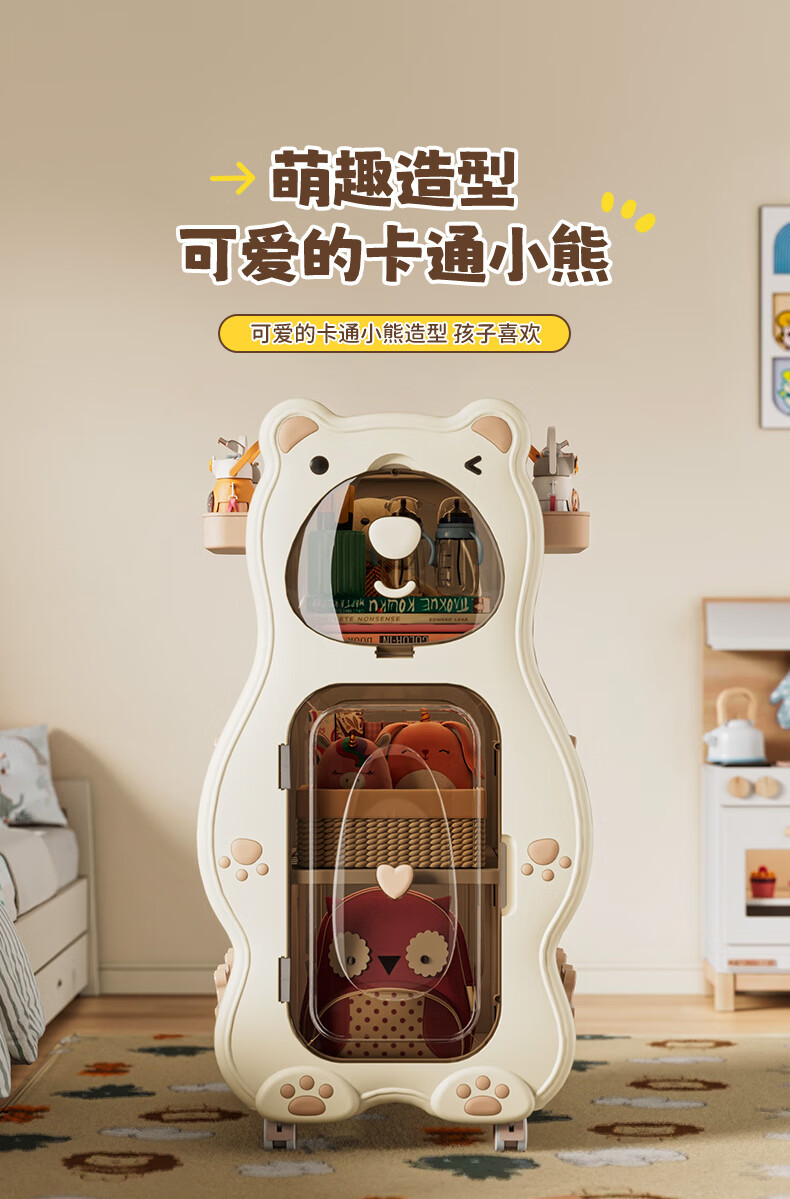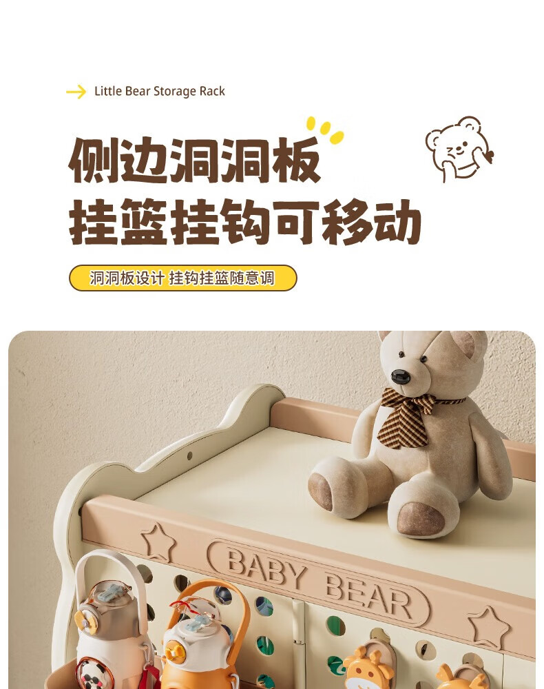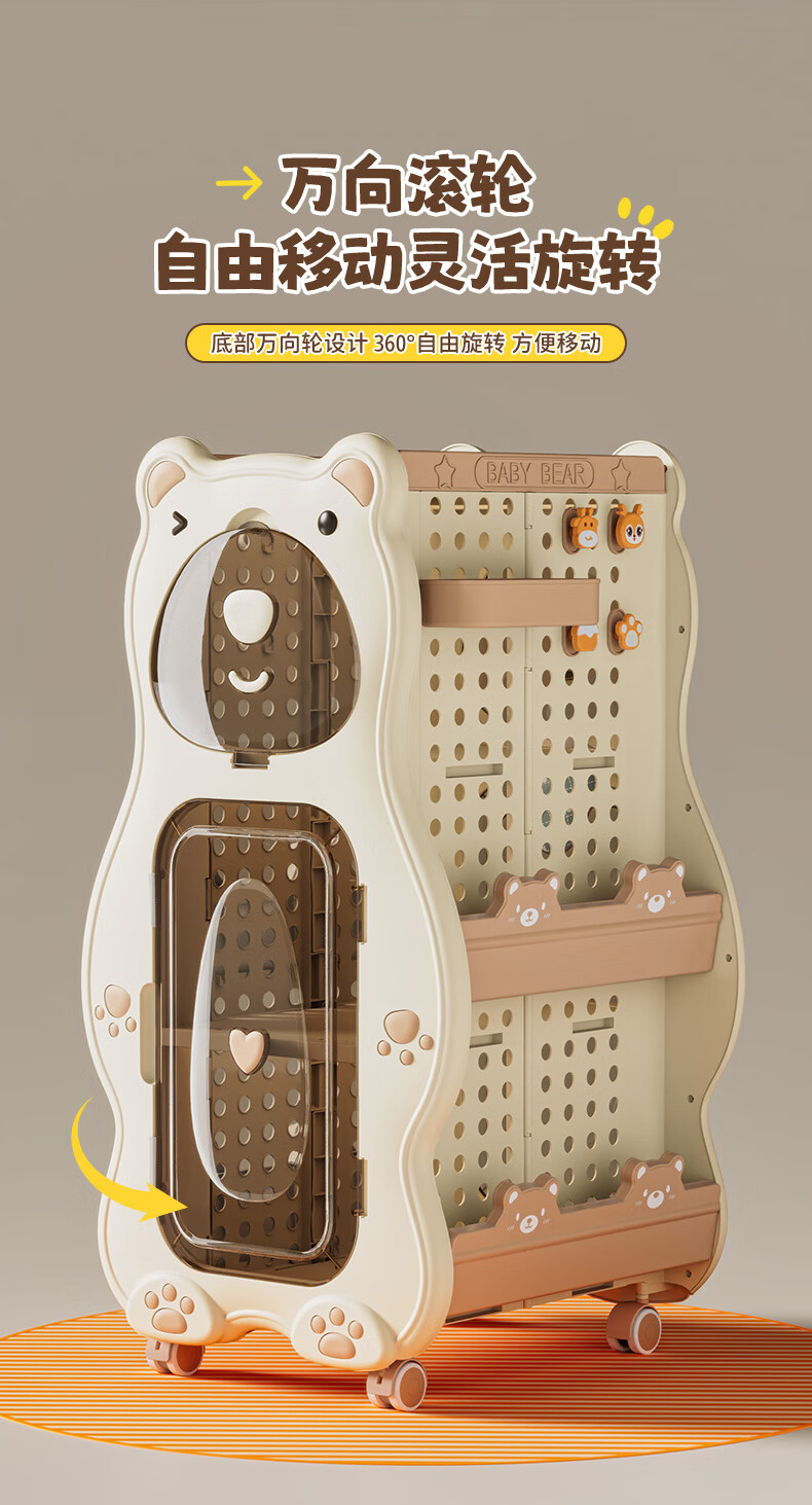 BABY VIEW儿童玩具收纳架零食置物柜多层绘本书架家用可移动整理架 暖白色