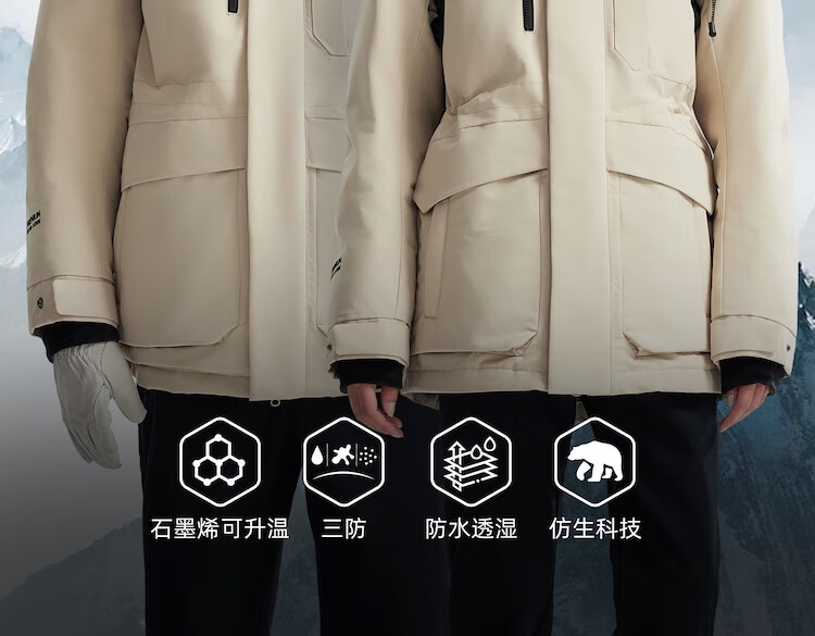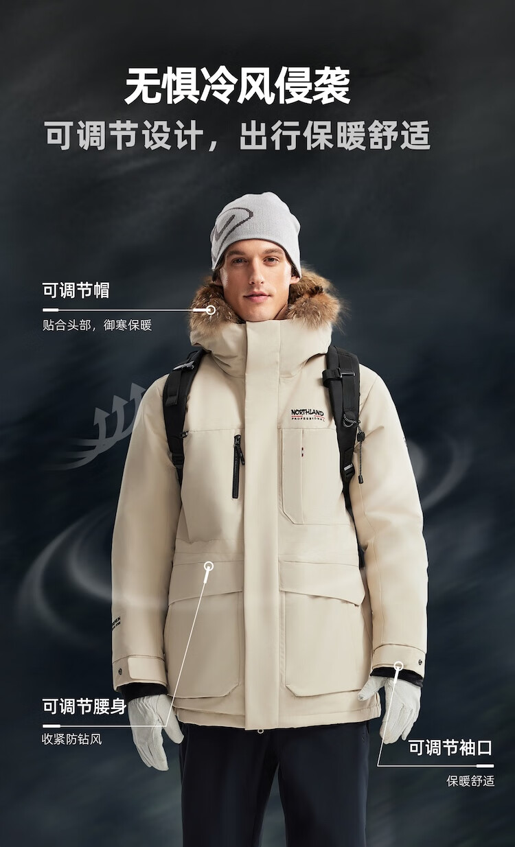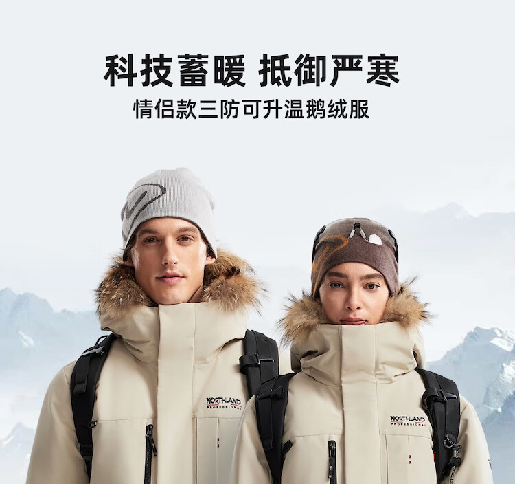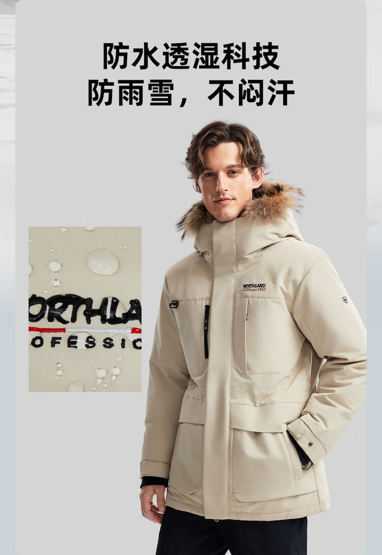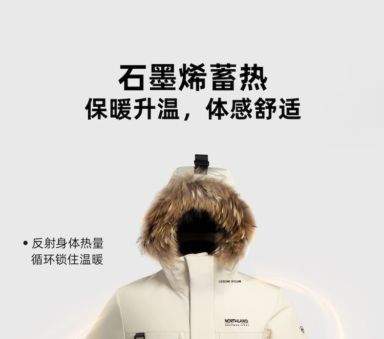 诺诗兰(NORTHLAND)派克羽绒服25秋冬新款户外男女石墨烯可升温防水透湿大毛领羽绒服