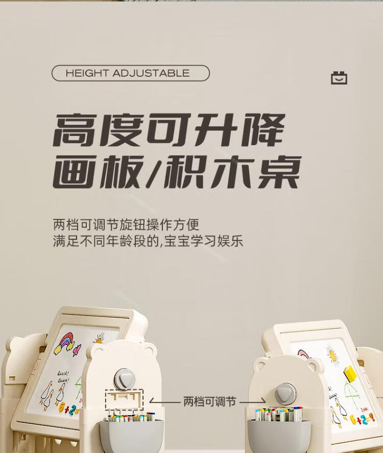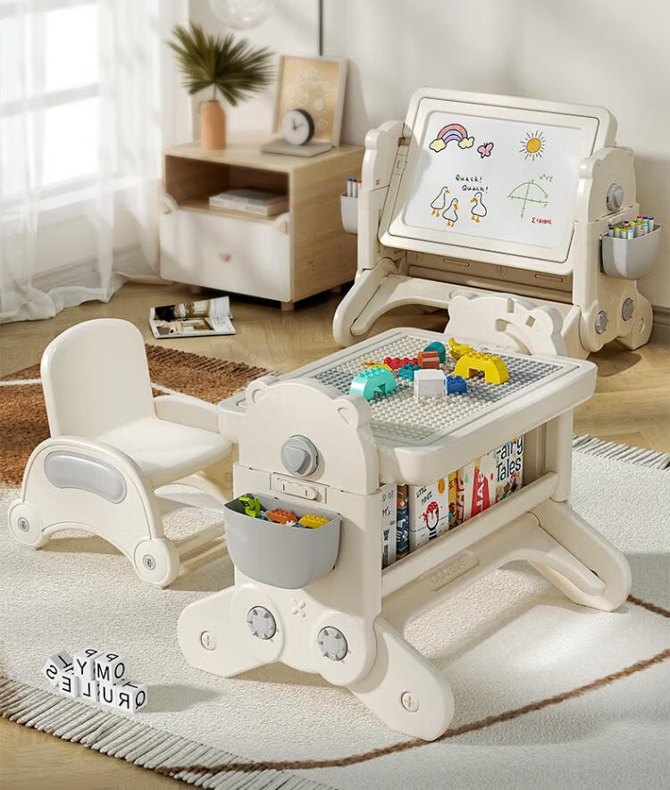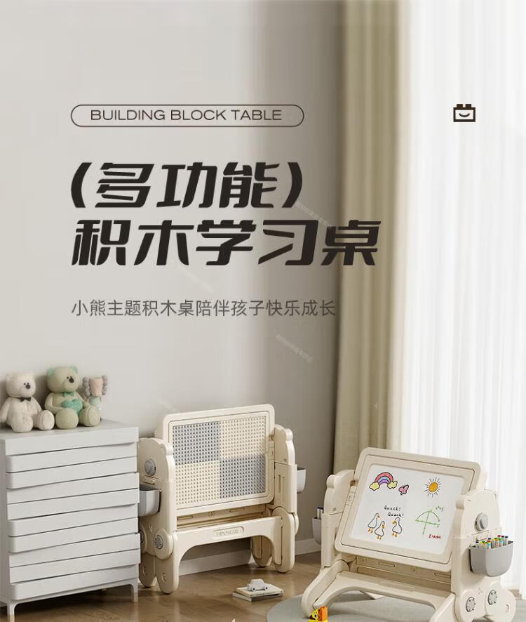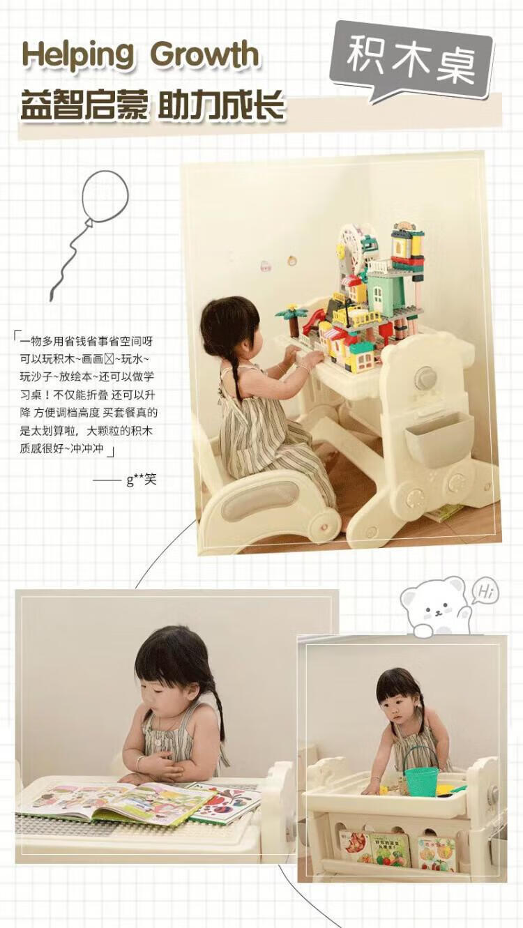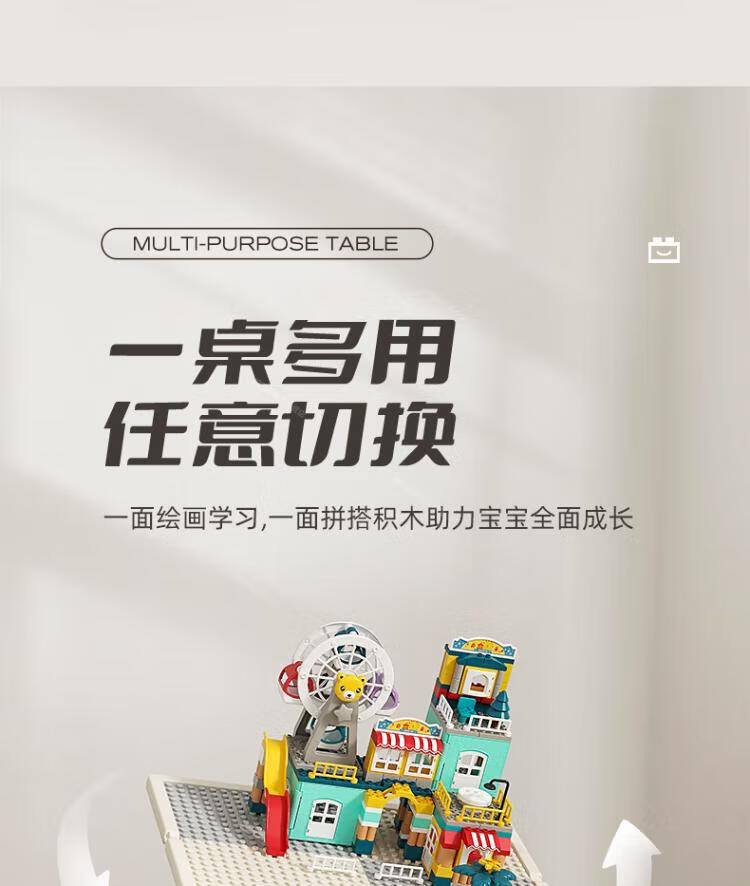 星涯优品儿童玩具积木桌大颗粒多功能男女孩可增高学习餐桌3-6岁生日礼物