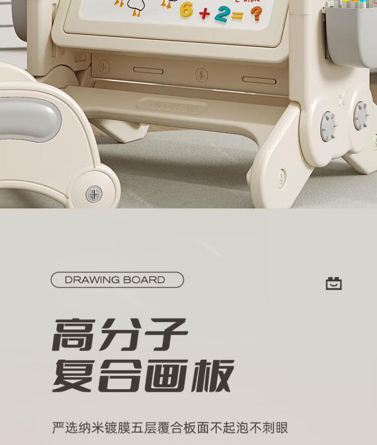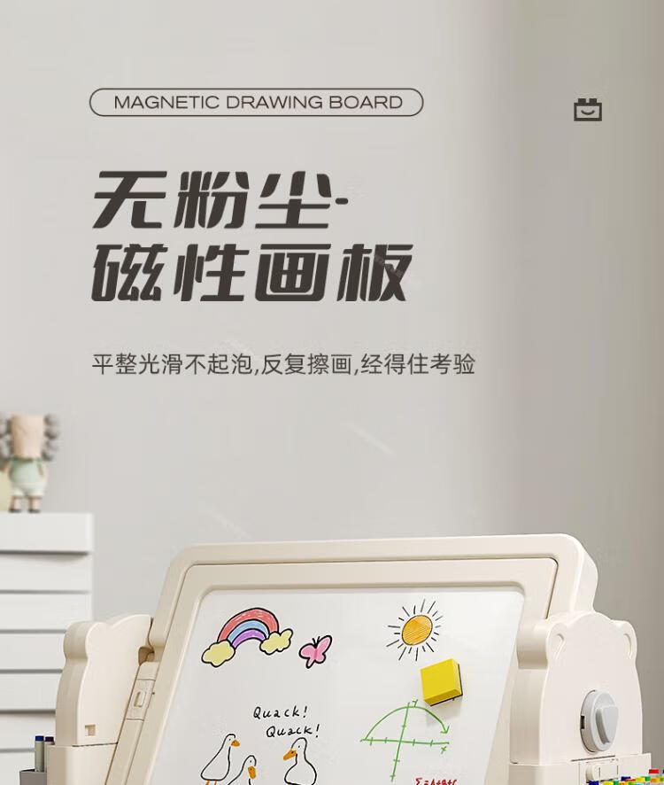 翎喏英国品牌儿童积木桌子多功能大颗粒男女孩婴儿宝宝画板益智拼装游 米咖色积木桌椅+108颗粒动物园