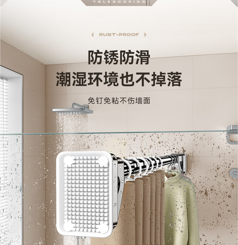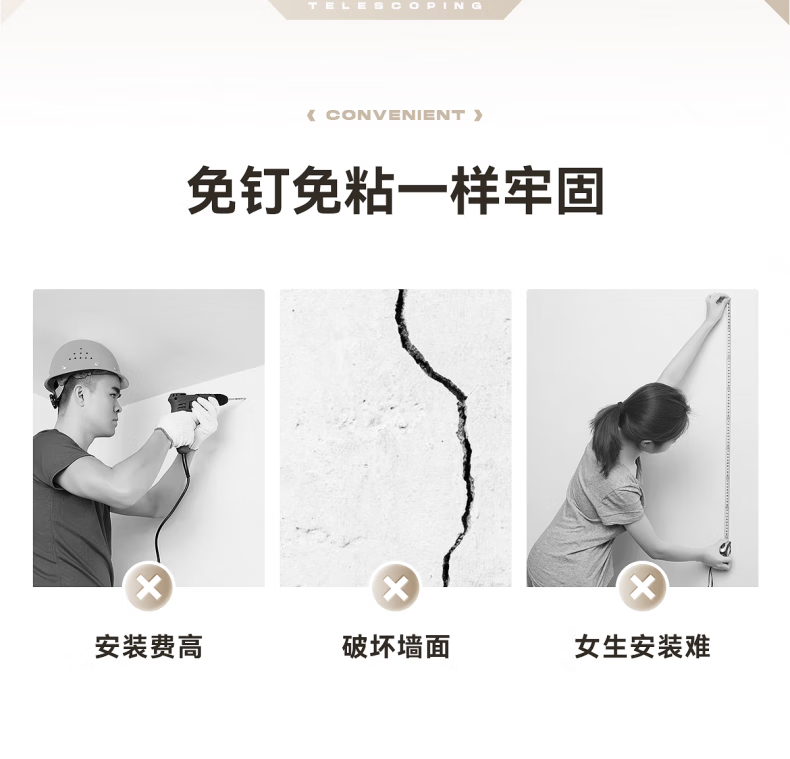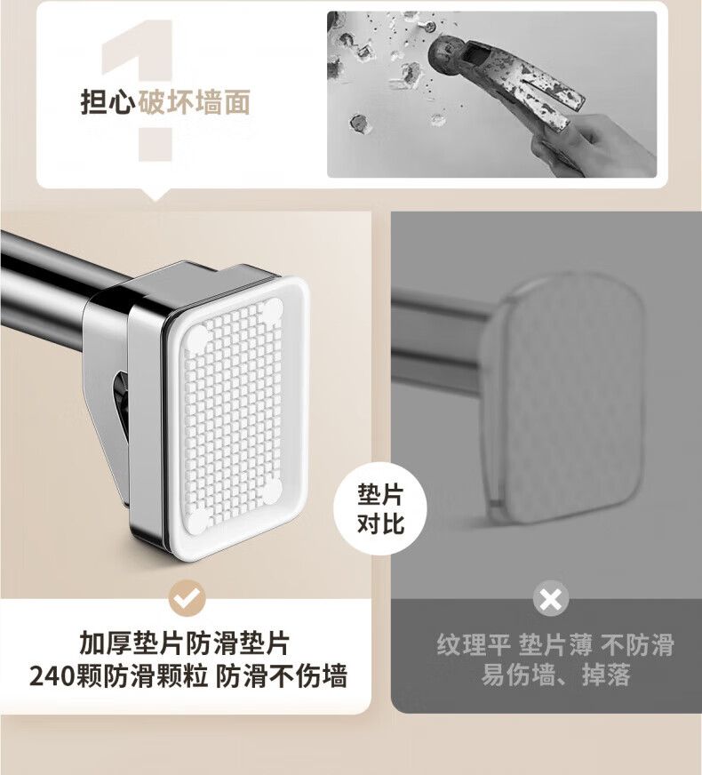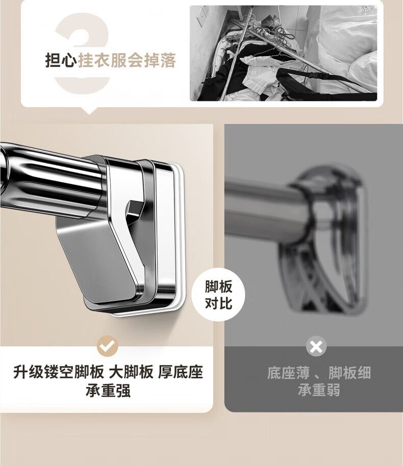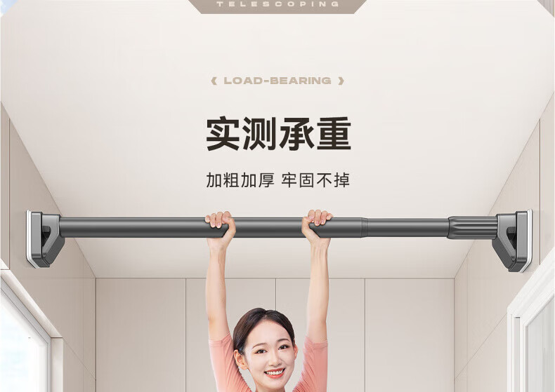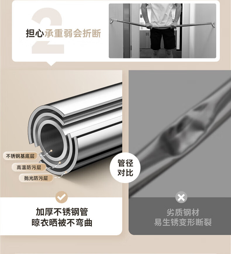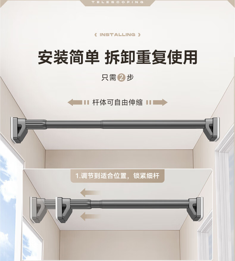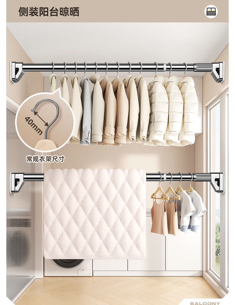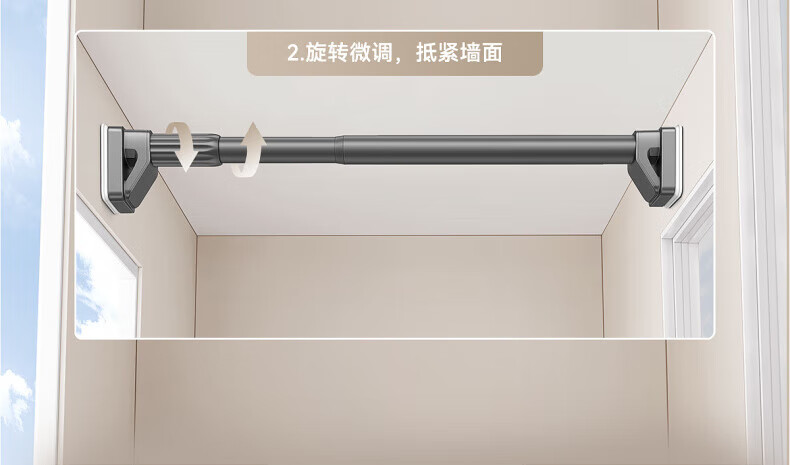 WCZ德国免打孔伸缩晾衣架晾衣杆墙上固定式阳台家用顶装一根挂晒衣杆 【百搭白】加粗管径晒被款 升级加厚 可伸缩:1.9 2.6米约承重290斤