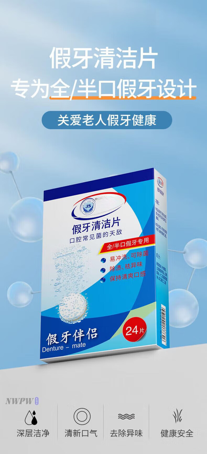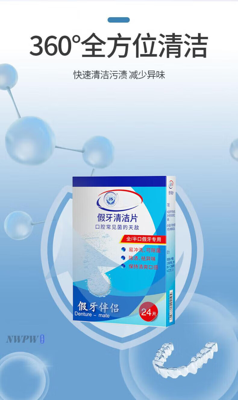 DEATKN德国正畸假牙清洁片隐形牙套清洁液牙齿泡腾片清洗器泡腾片清洗片 3x3x72片