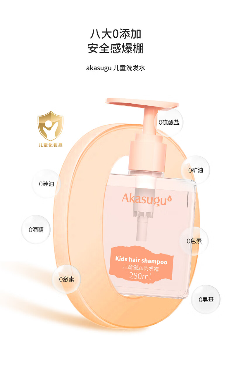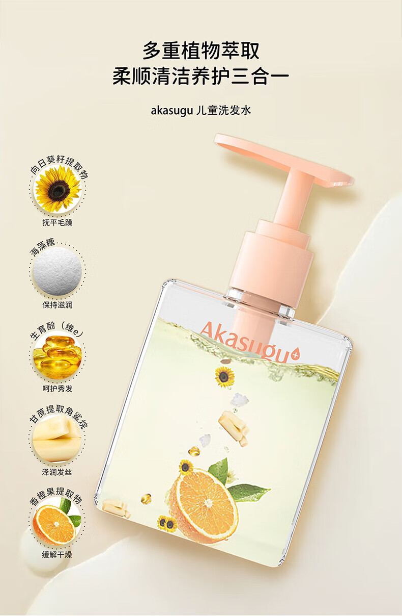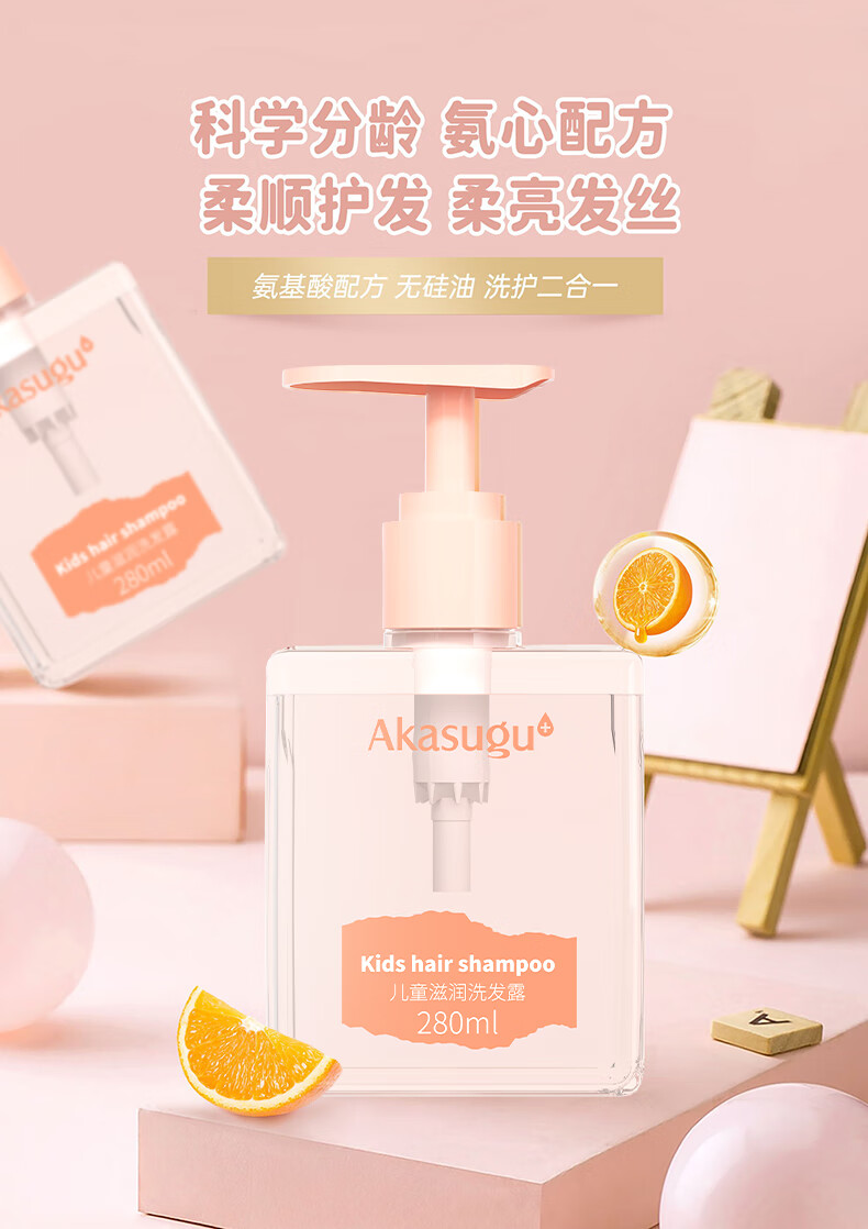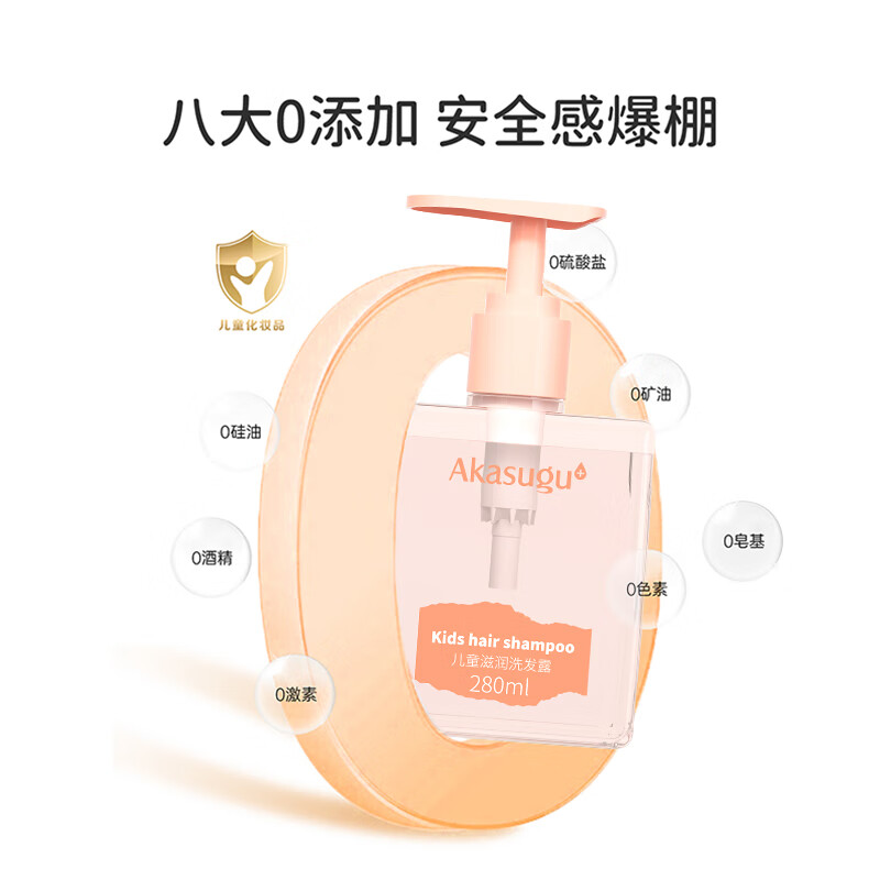 Akasugu爱舒屋儿童滋润洗发水280ml 柔顺去屑3-6-16岁氨基酸无硅油
