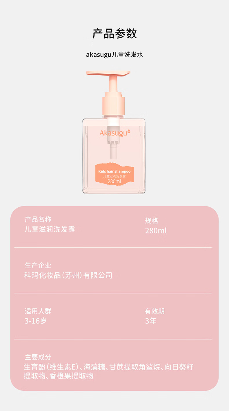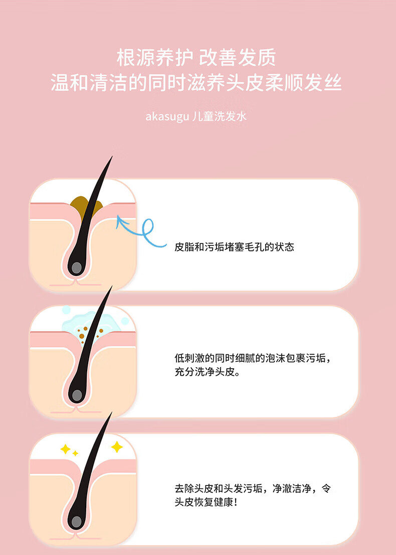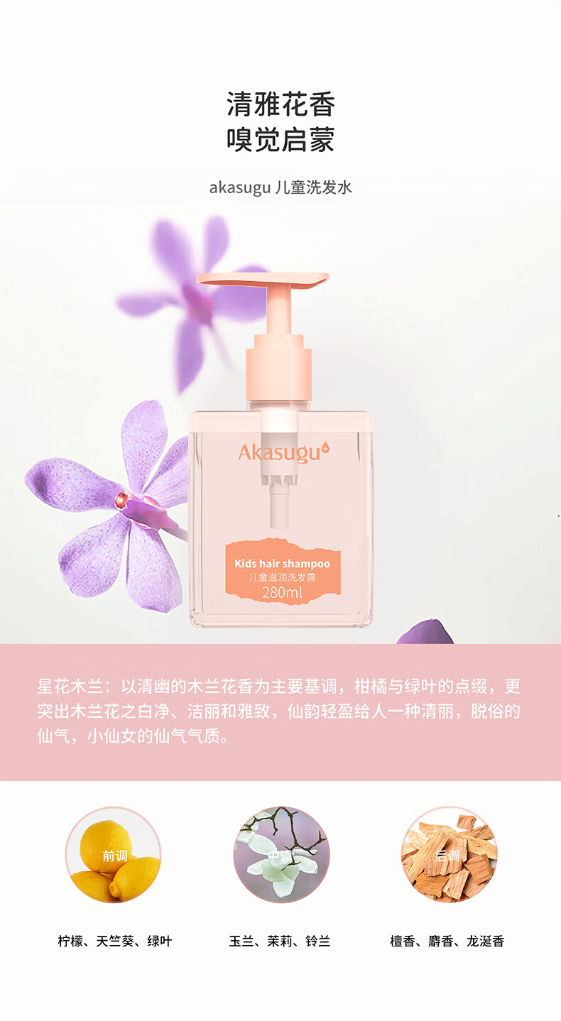 Akasugu爱舒屋儿童滋润洗发水280ml 柔顺去屑3-6-16岁氨基酸无硅油