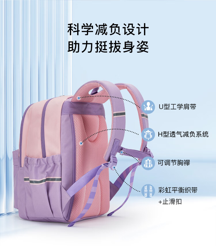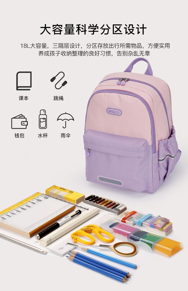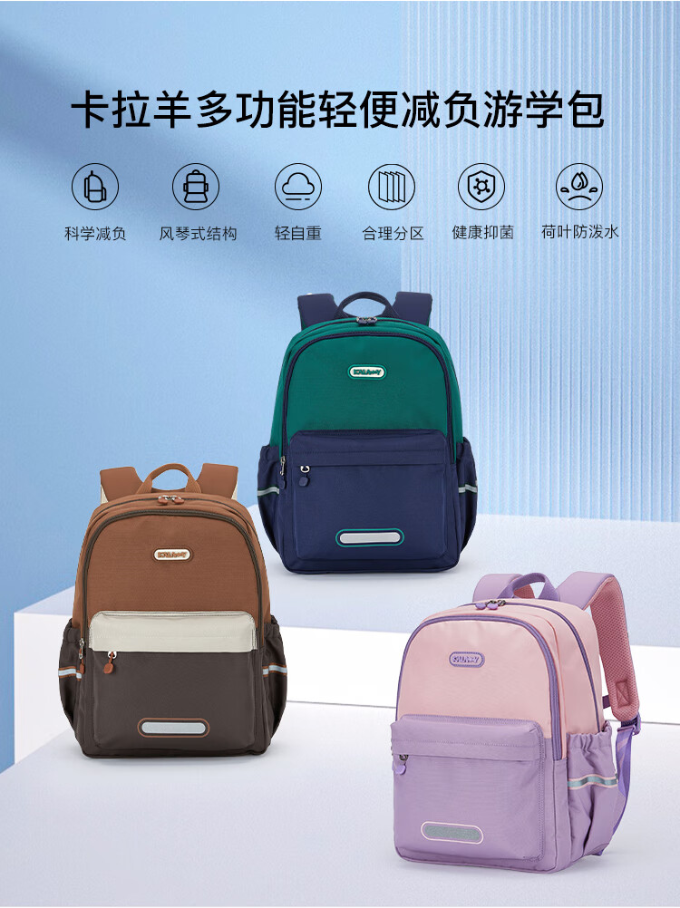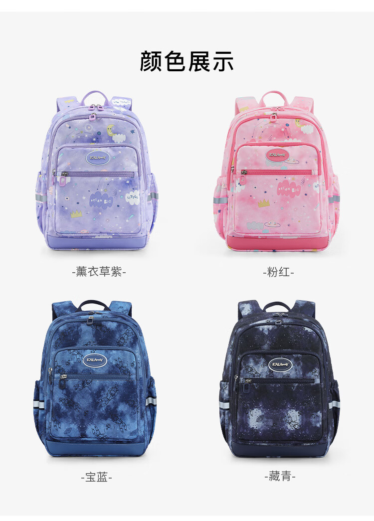 卡拉羊(KALA·Y)小学生书包轻便游学包防泼水多隔层双肩包男女印花儿童书包漫游 薰衣草爱丽丝【三维减负】
