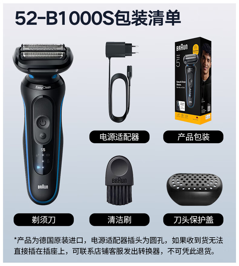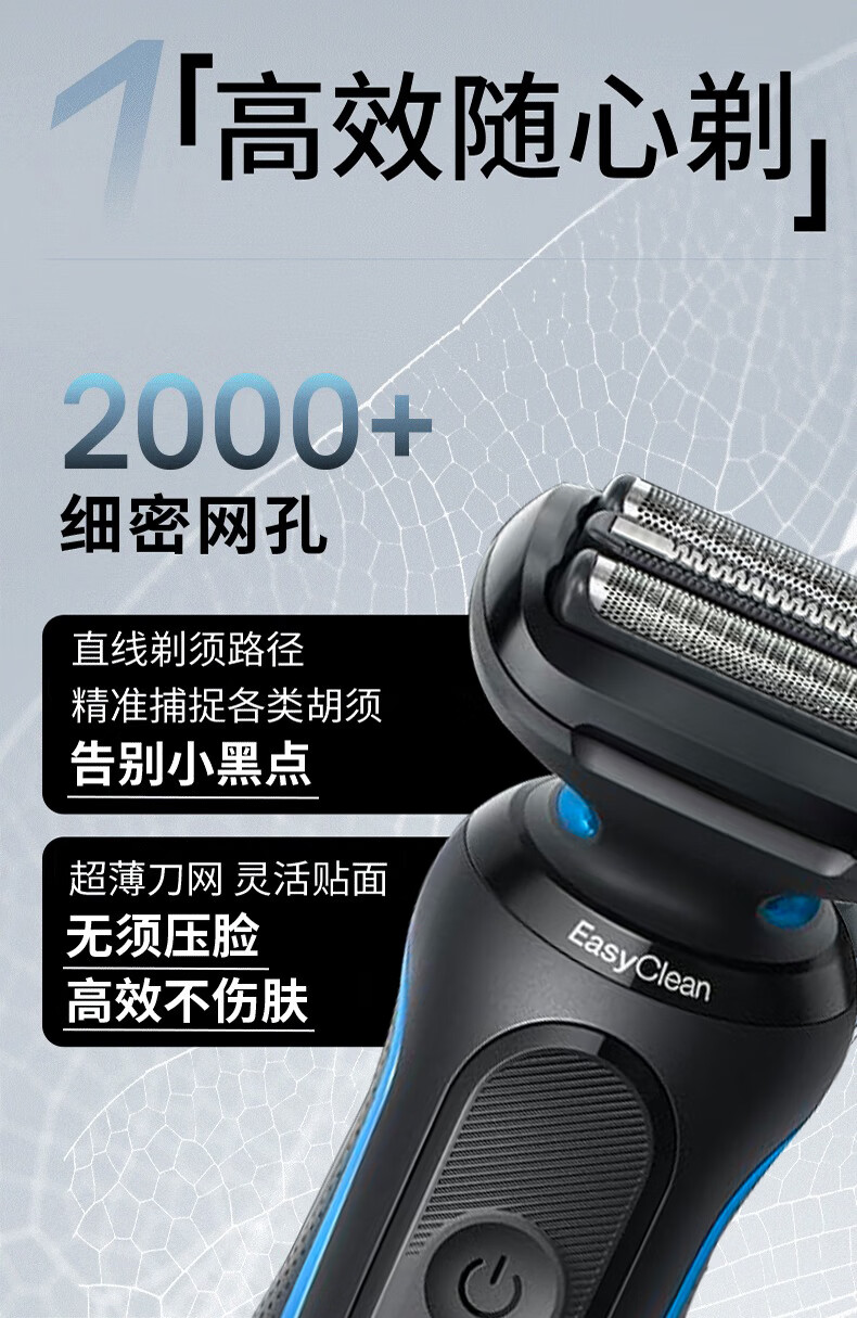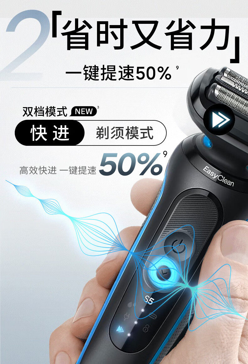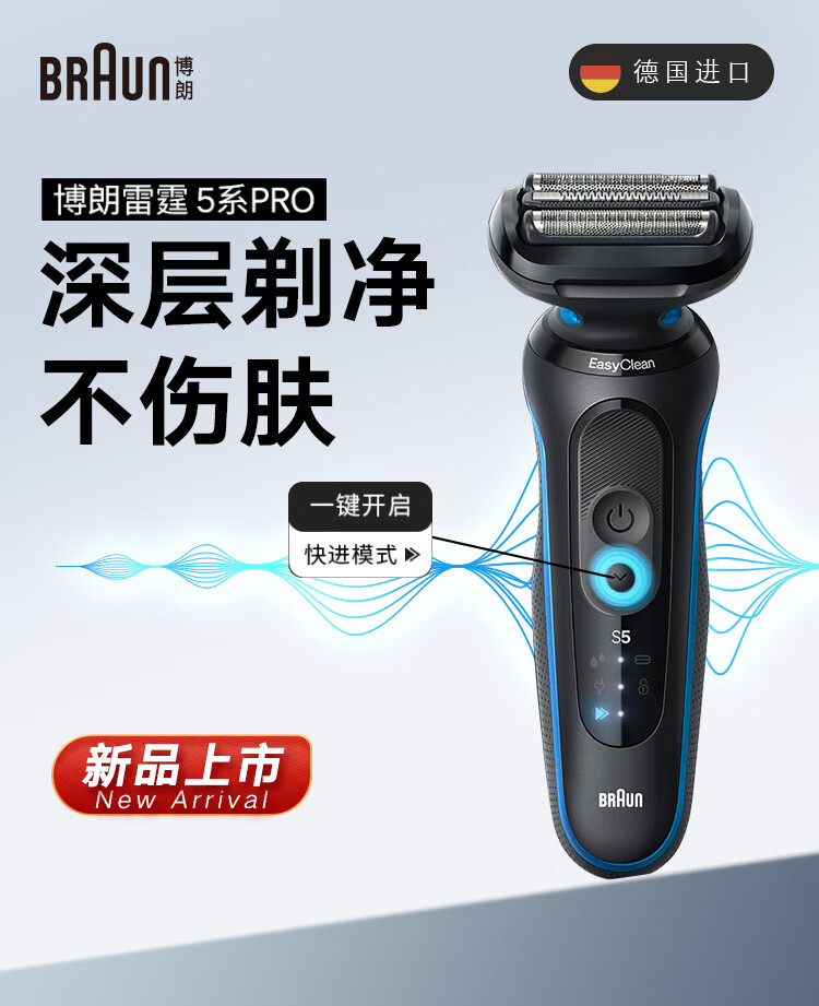 博朗(BRAUN)电动剃须刀5系Pro往复式刮胡刀德国原装进口水洗干湿两用生日礼物送男朋友爸爸52-B1000s单刀款 蓝色