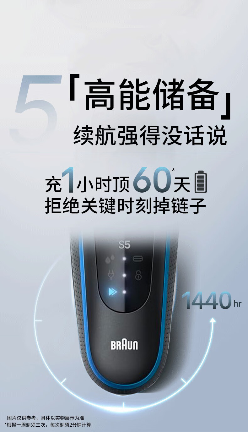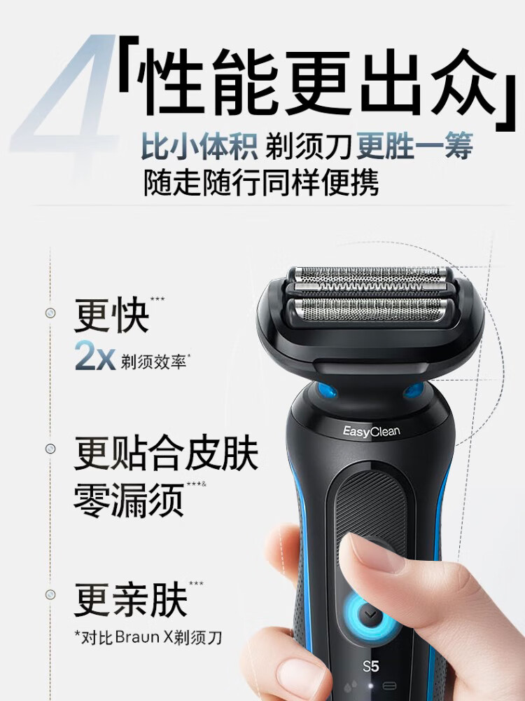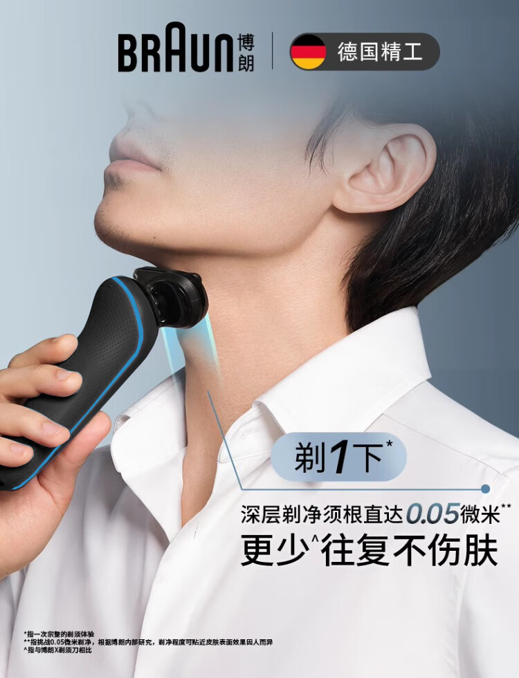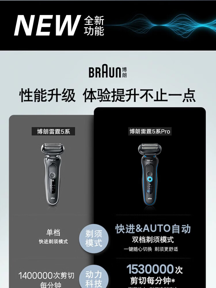 博朗(BRAUN)电动剃须刀5系Pro往复式刮胡刀德国原装进口水洗干湿两用生日礼物送男朋友爸爸52-B1000s单刀款 蓝色