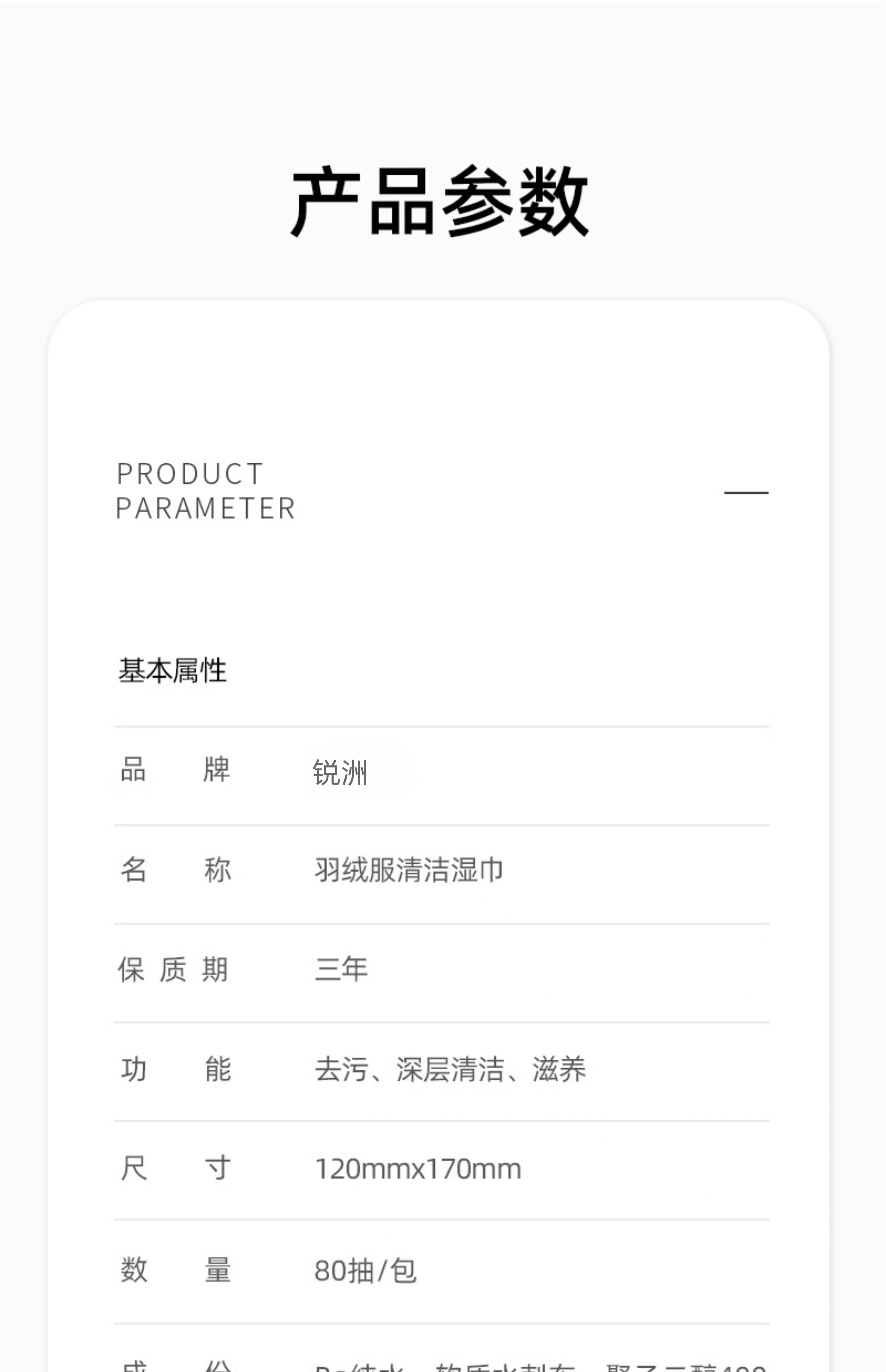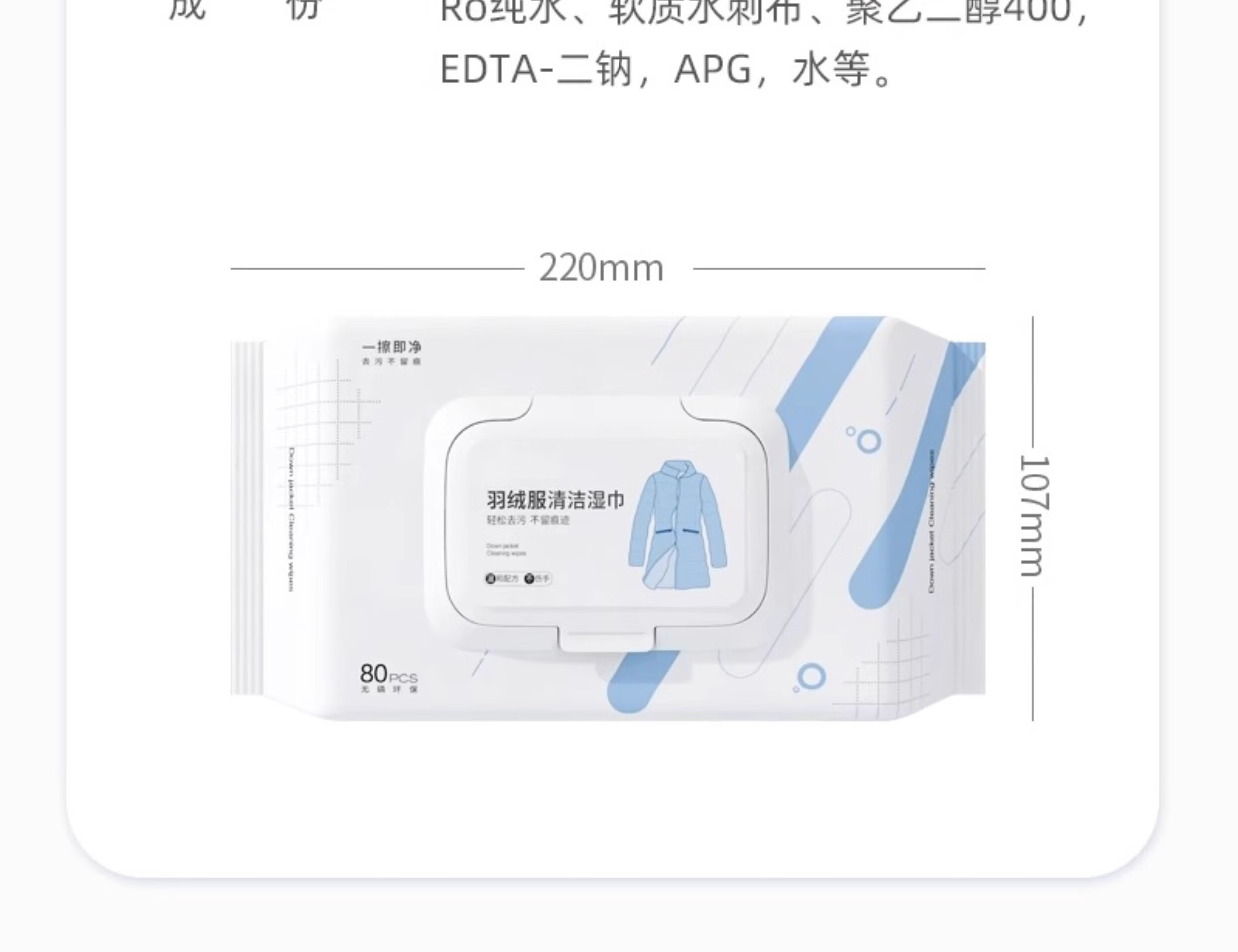 锐洲德国羽绒服清洁湿巾免水洗强力去污不留痕清洗剂擦衣物去渍神器 1包【80抽】